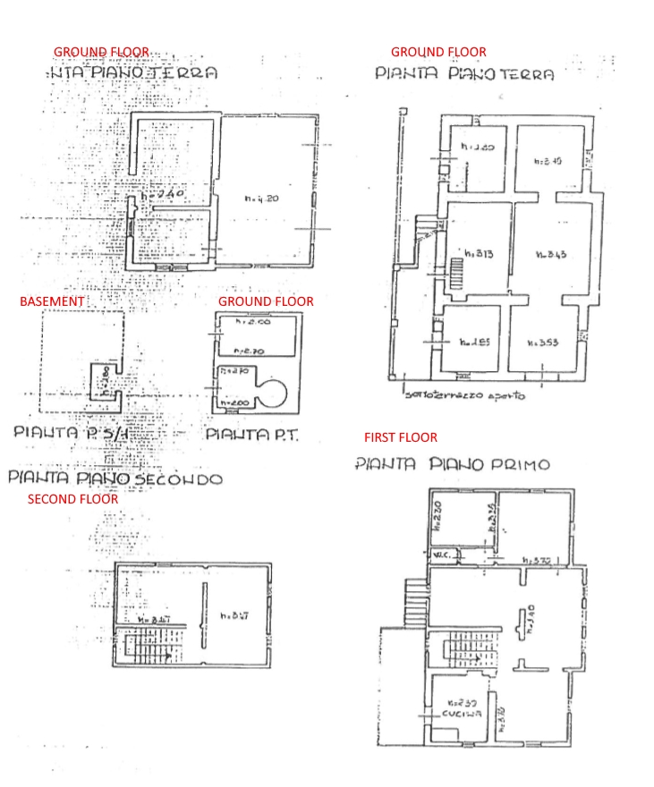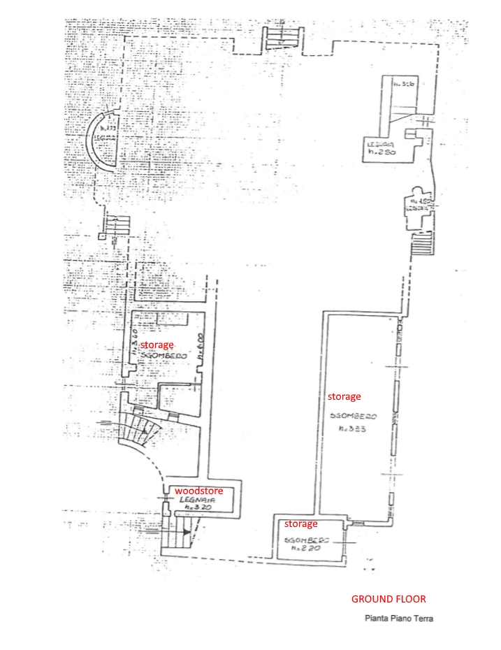 Ground floor: Large reception rooms and storage spaces;