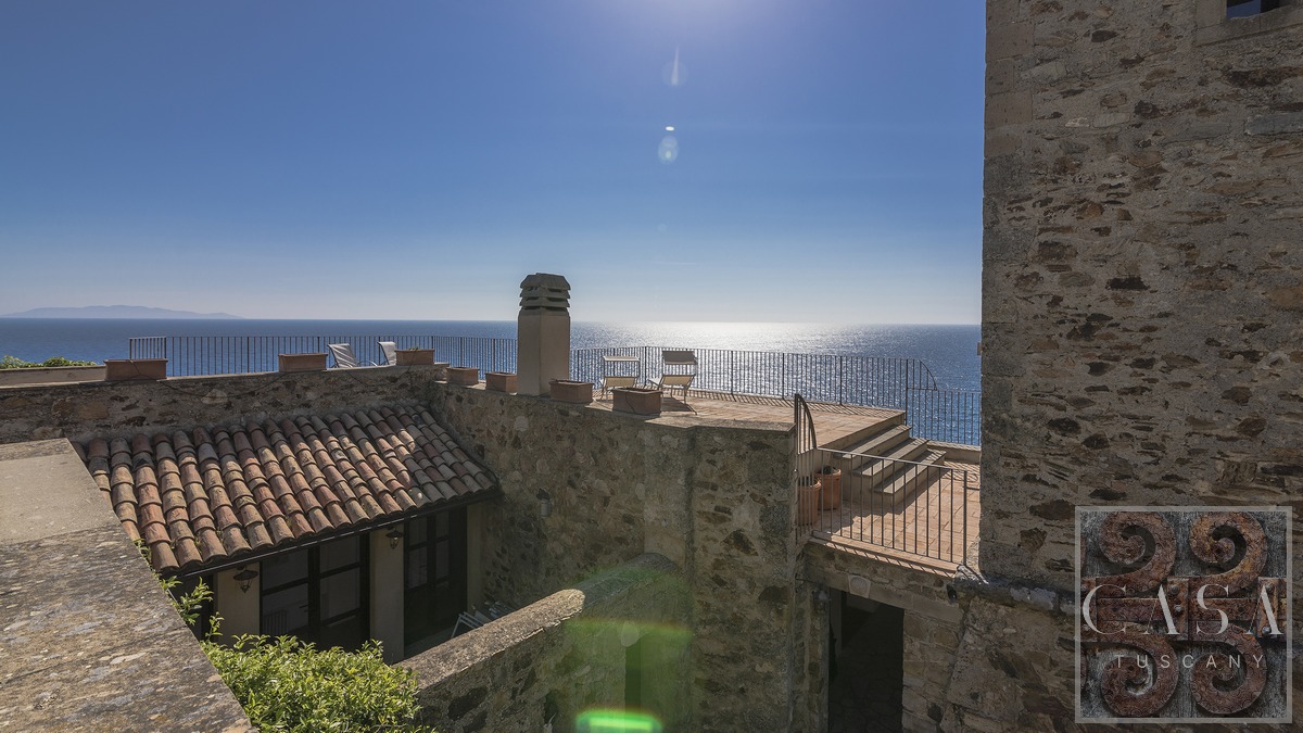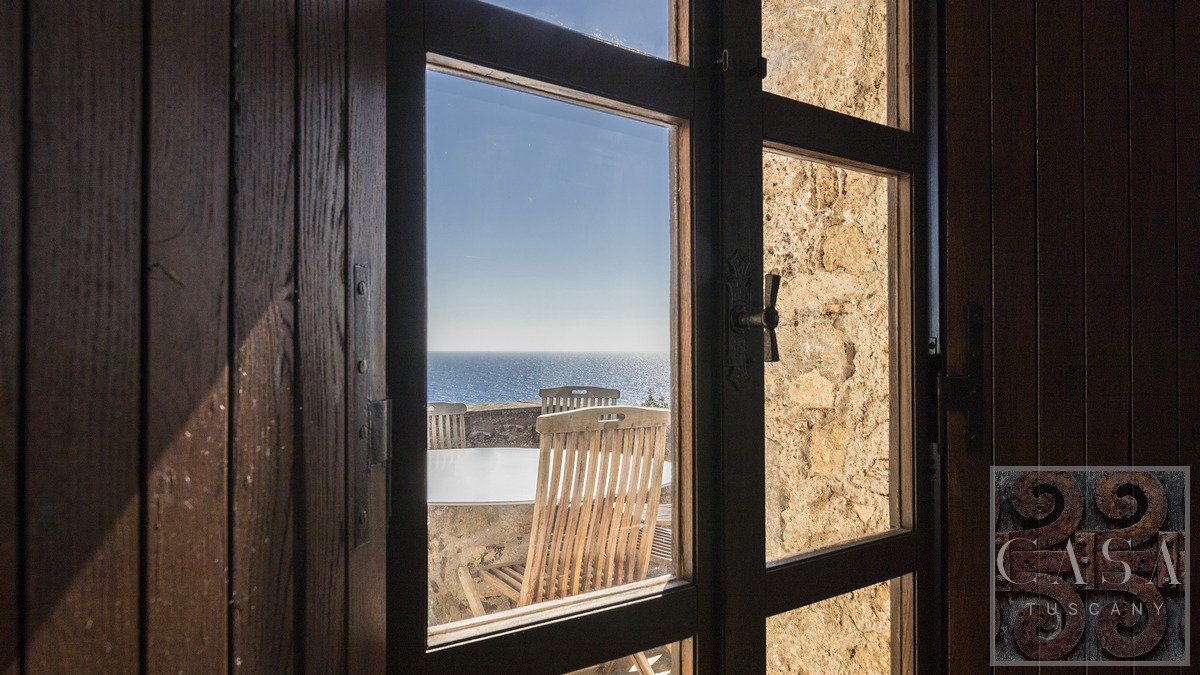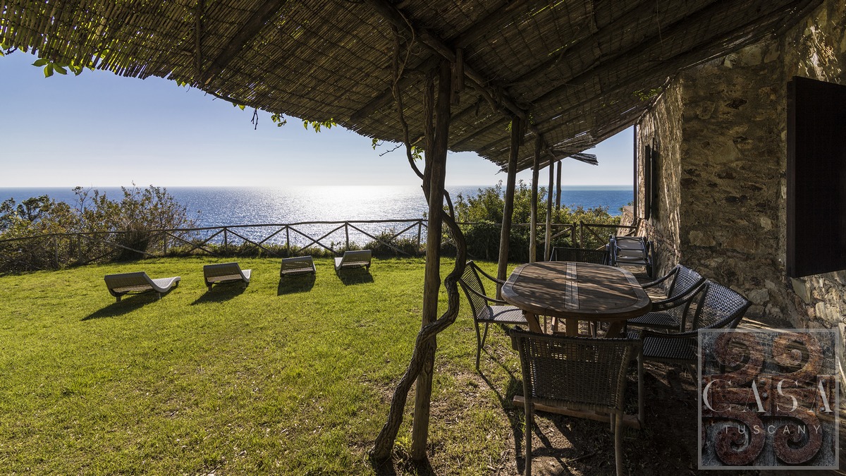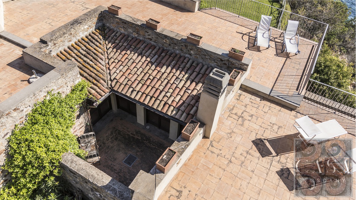 The house, consisting of approximately 300 square metres of internal floor area includes 5 bedrooms and 4 bathrooms. The bedrooms on the ground floor open out onto the sea facing lawn whilst at the top of the tower there is another bedroom with panoramic views along the Tuscan coastline.