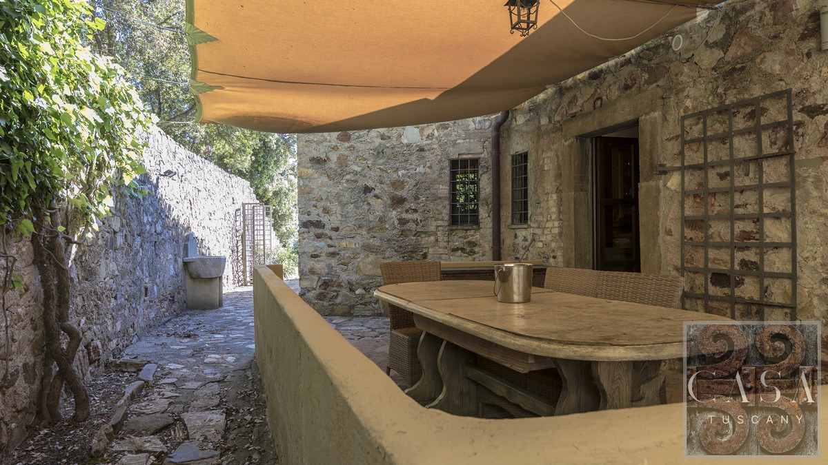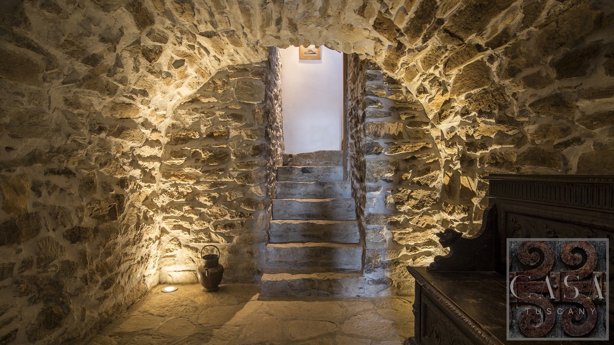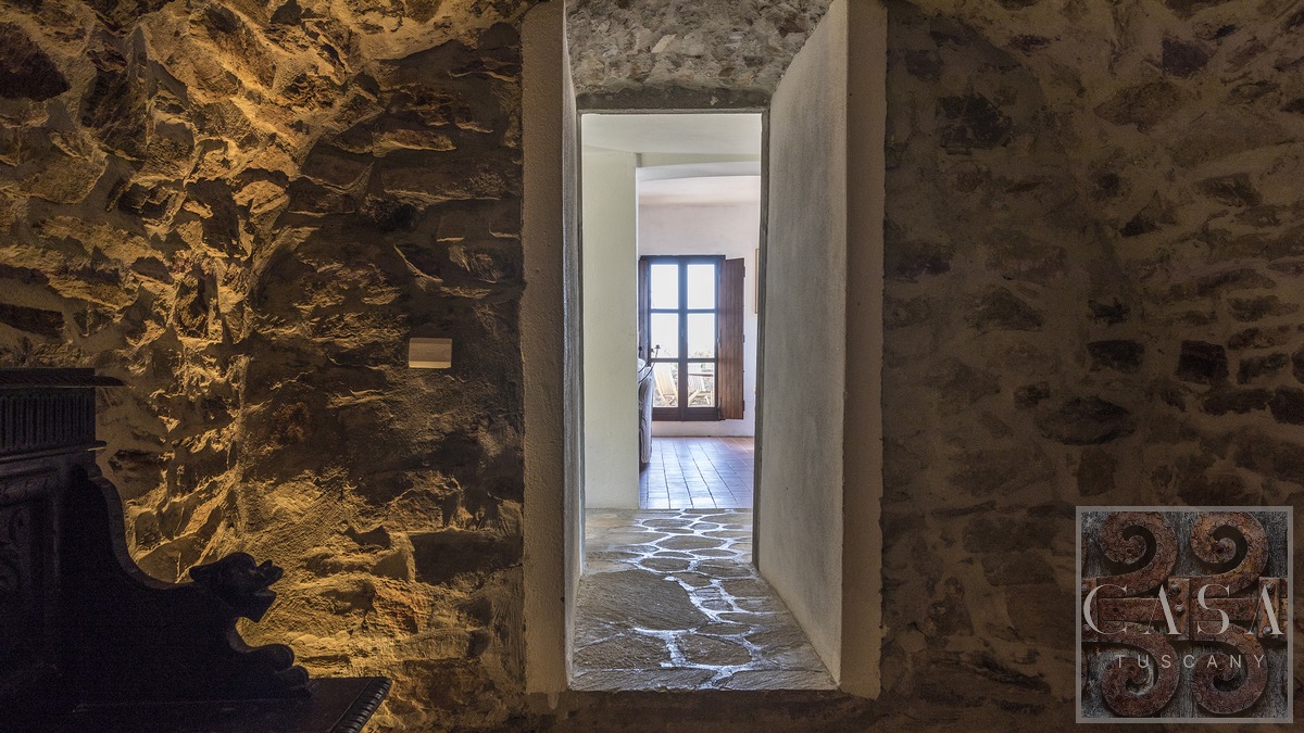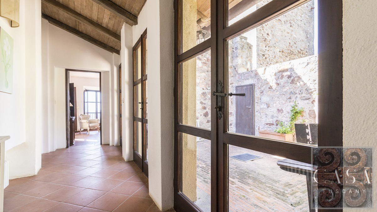 The house, consisting of approximately 300 square metres of internal floor area includes 5 bedrooms and 4 bathrooms. The bedrooms on the ground floor open out onto the sea facing lawn whilst at the top of the tower there is another bedroom with panoramic views along the Tuscan coastline.
