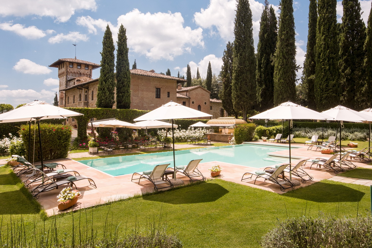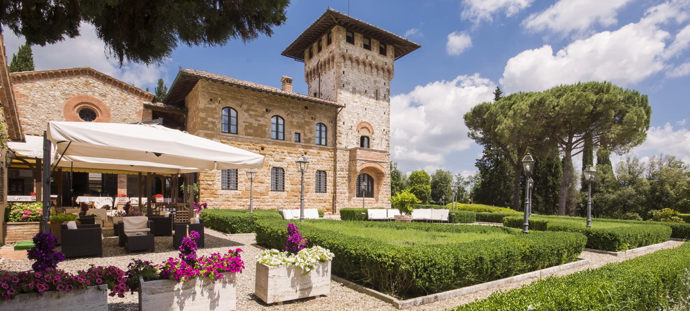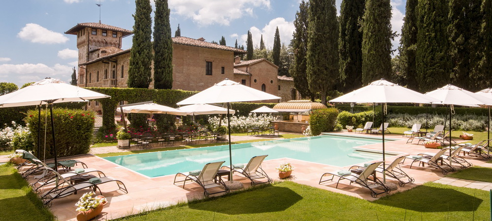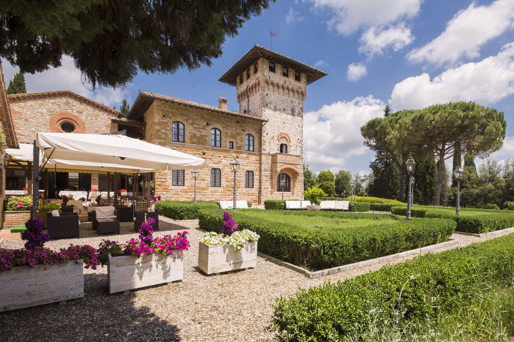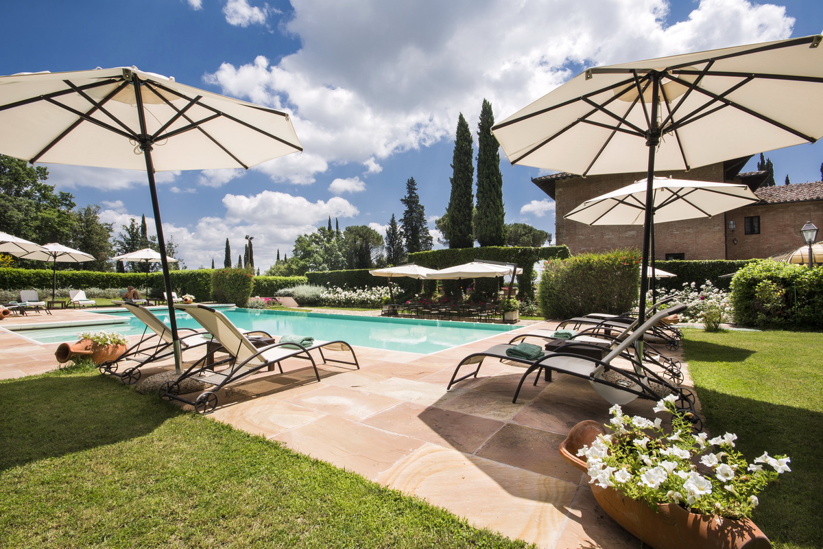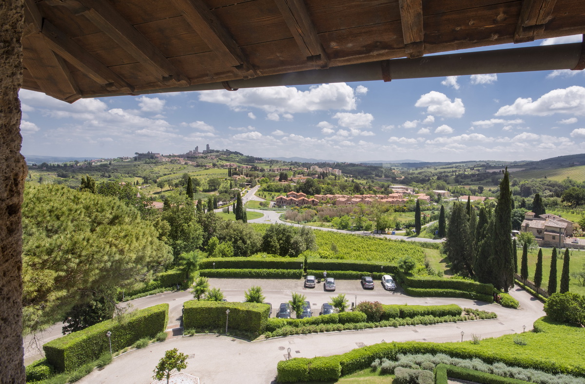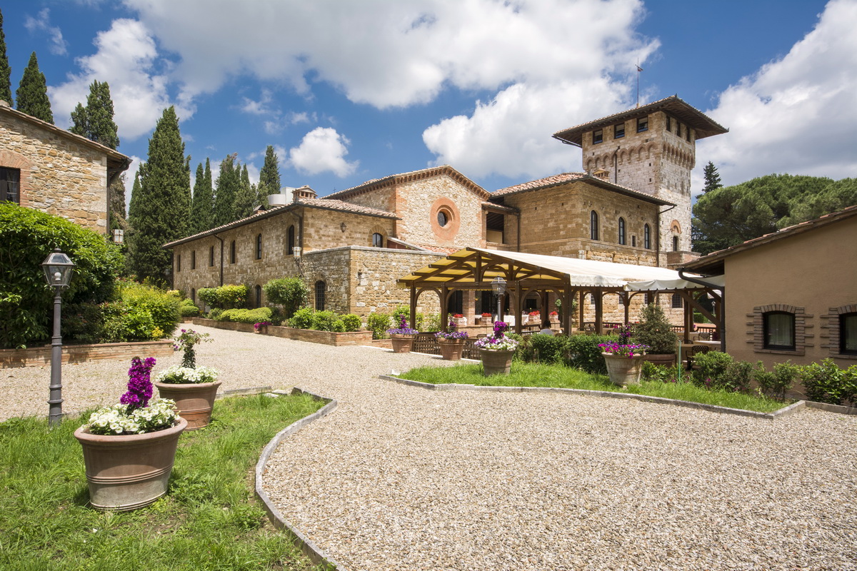 Luxury Hotel. This upmarket hotel is in a hilly location with a panoramic view of the rolling Tuscan hills and the famous city of San Gimignano, just 2km away. San Gimignano is one of Tuscany’s best-known and most picturesque villages, a Unesco World Heritage site due to its architecture and its 14 medieval towers which give it its unique skyline.The property is easy to get to in 45 minutes by car from Siena and Florence, each around 50 km away. The nearest airport is Florence, 64km away.