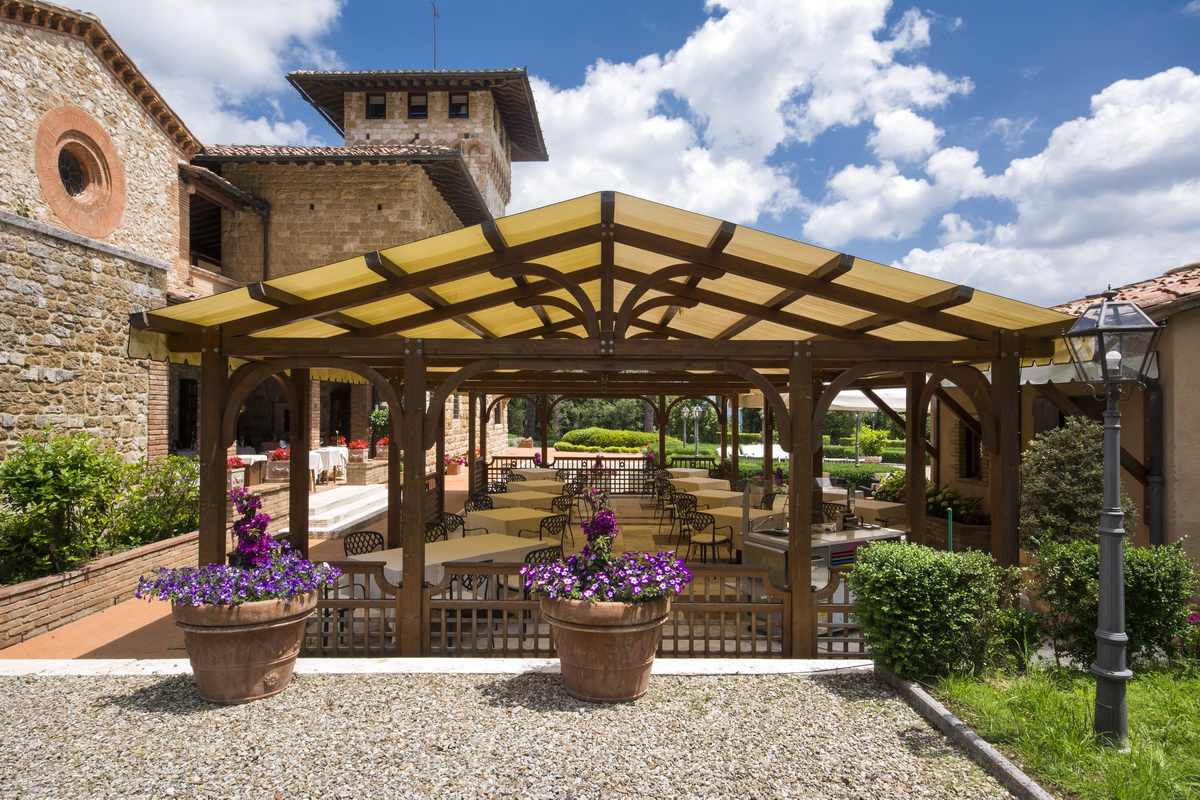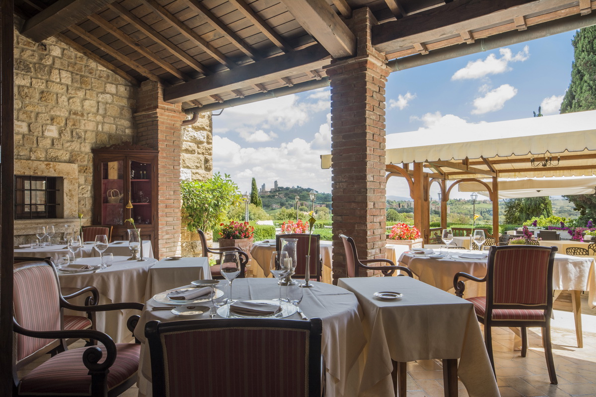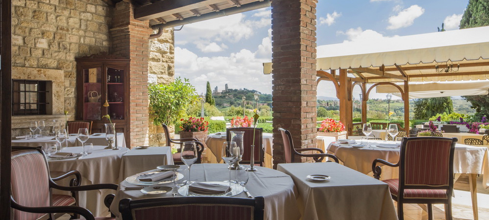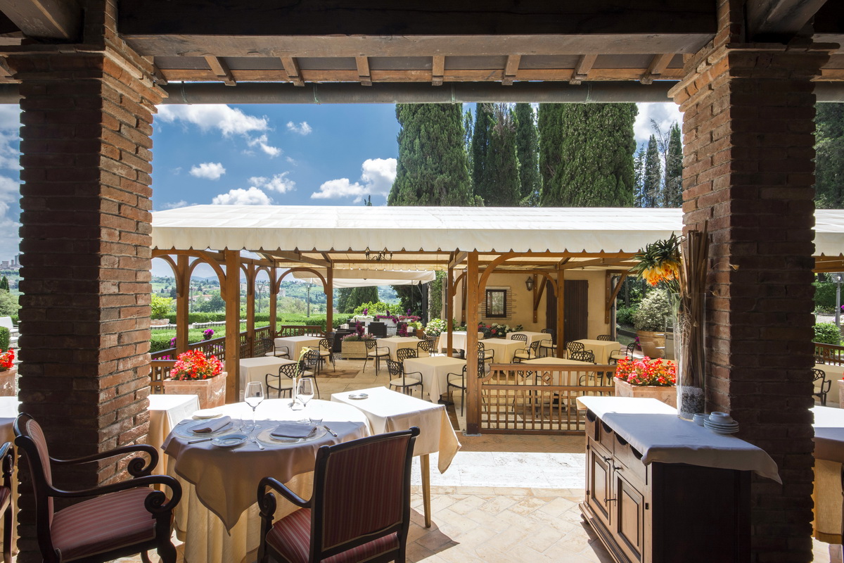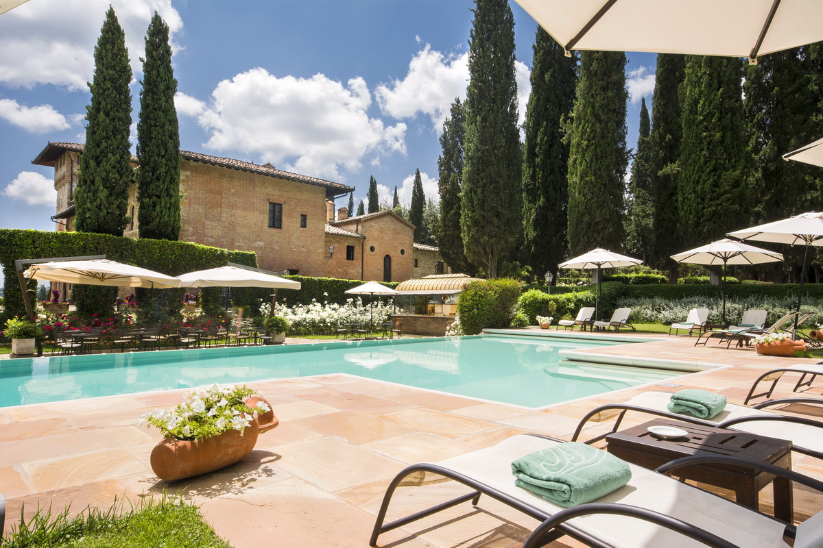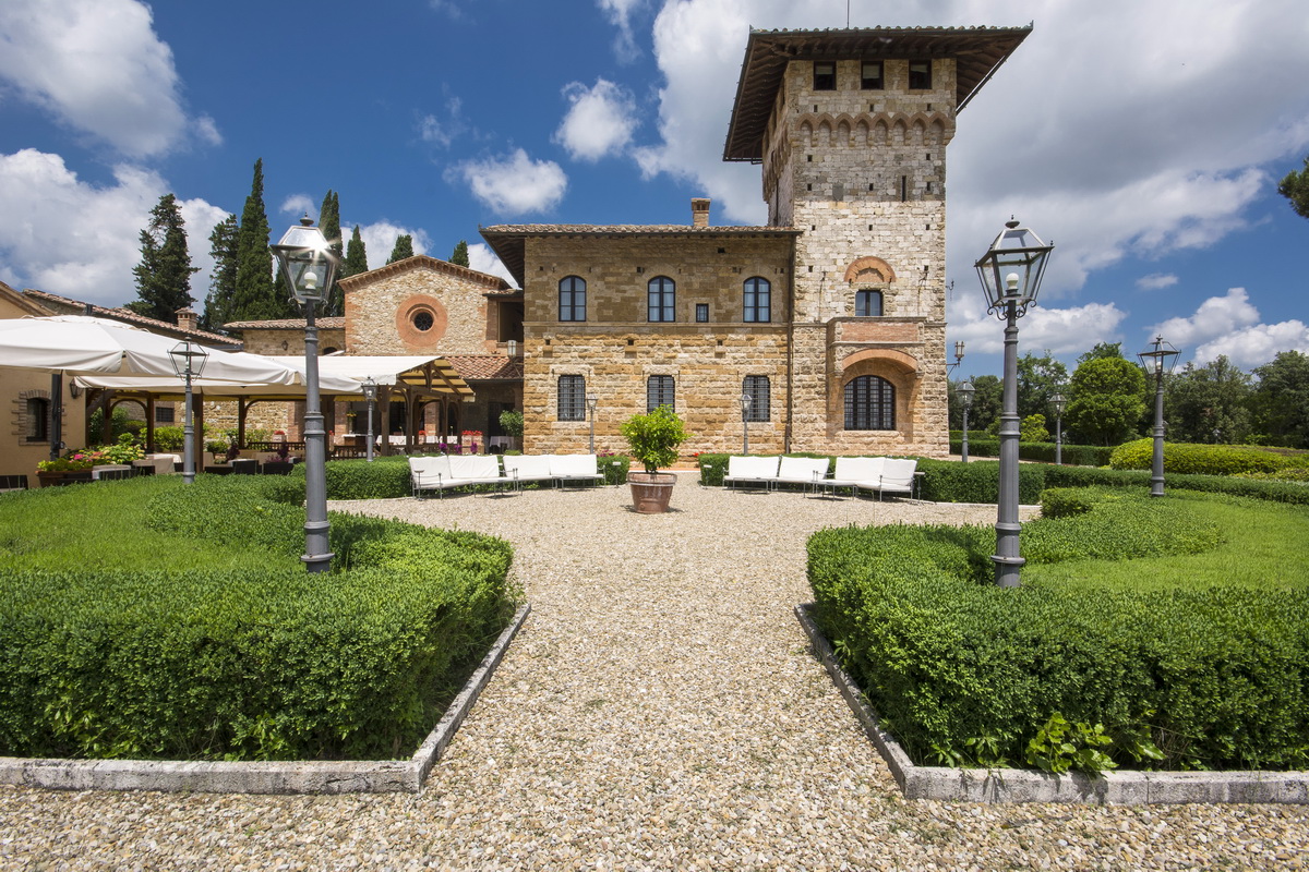 Luxury Hotel. This upmarket hotel is in a hilly location with a panoramic view of the rolling Tuscan hills and the famous city of San Gimignano, just 2km away. San Gimignano is one of Tuscany’s best-known and most picturesque villages, a Unesco World Heritage site due to its architecture and its 14 medieval towers which give it its unique skyline.The property is easy to get to in 45 minutes by car from Siena and Florence, each around 50 km away. The nearest airport is Florence, 64km away.