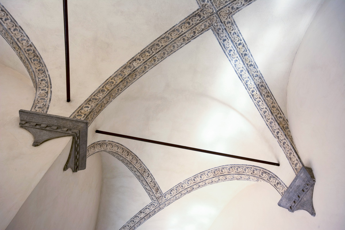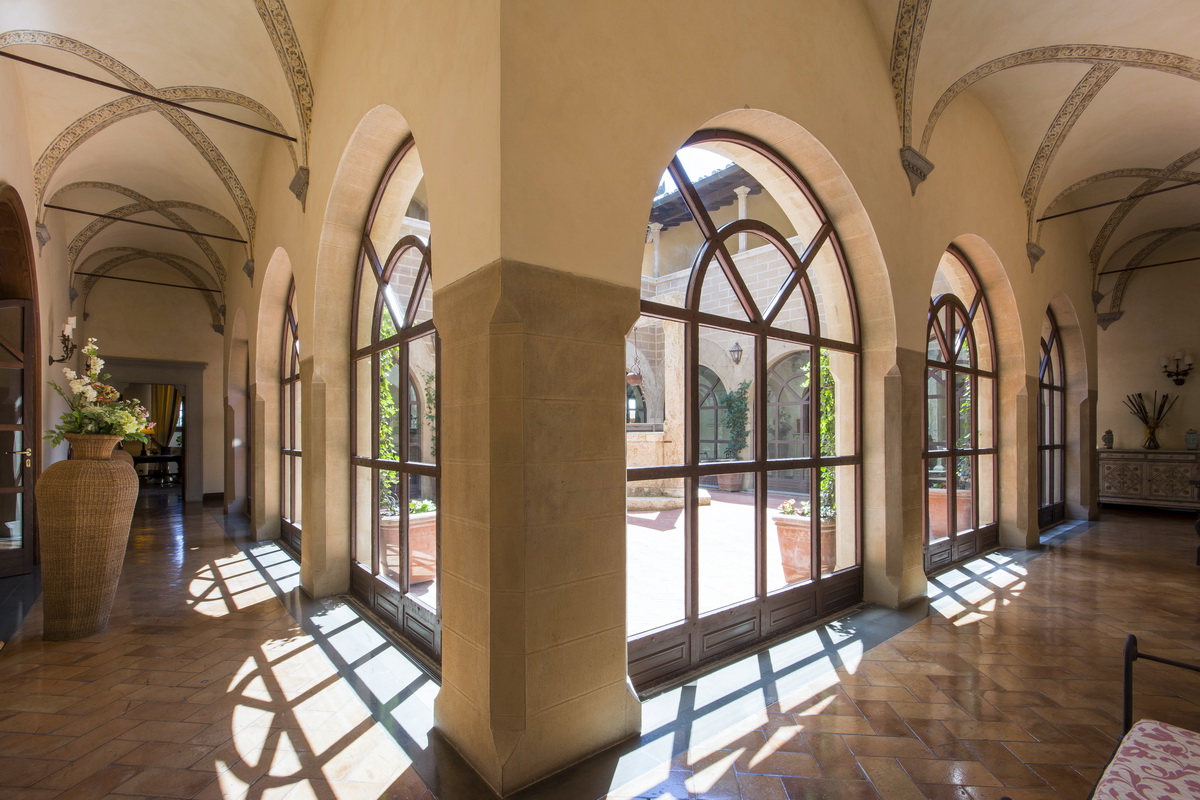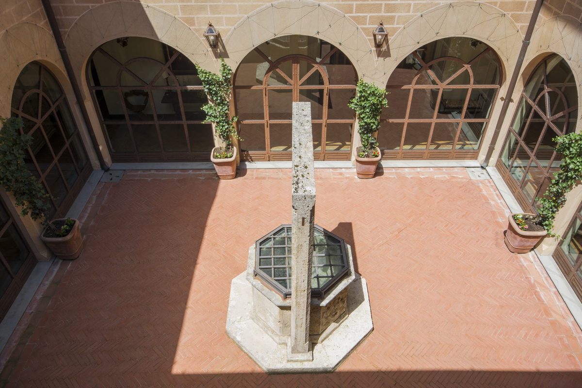 In the centre of the building there is a cloistered quadrangle with a portico which runs the length of the perimeter. Under the cloister, a room once containing an old well has been converted into a unique wine cellar.