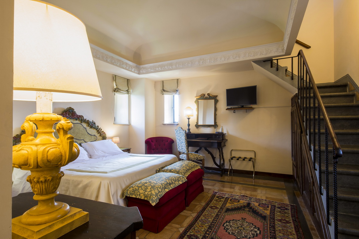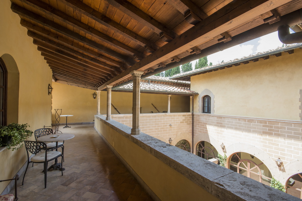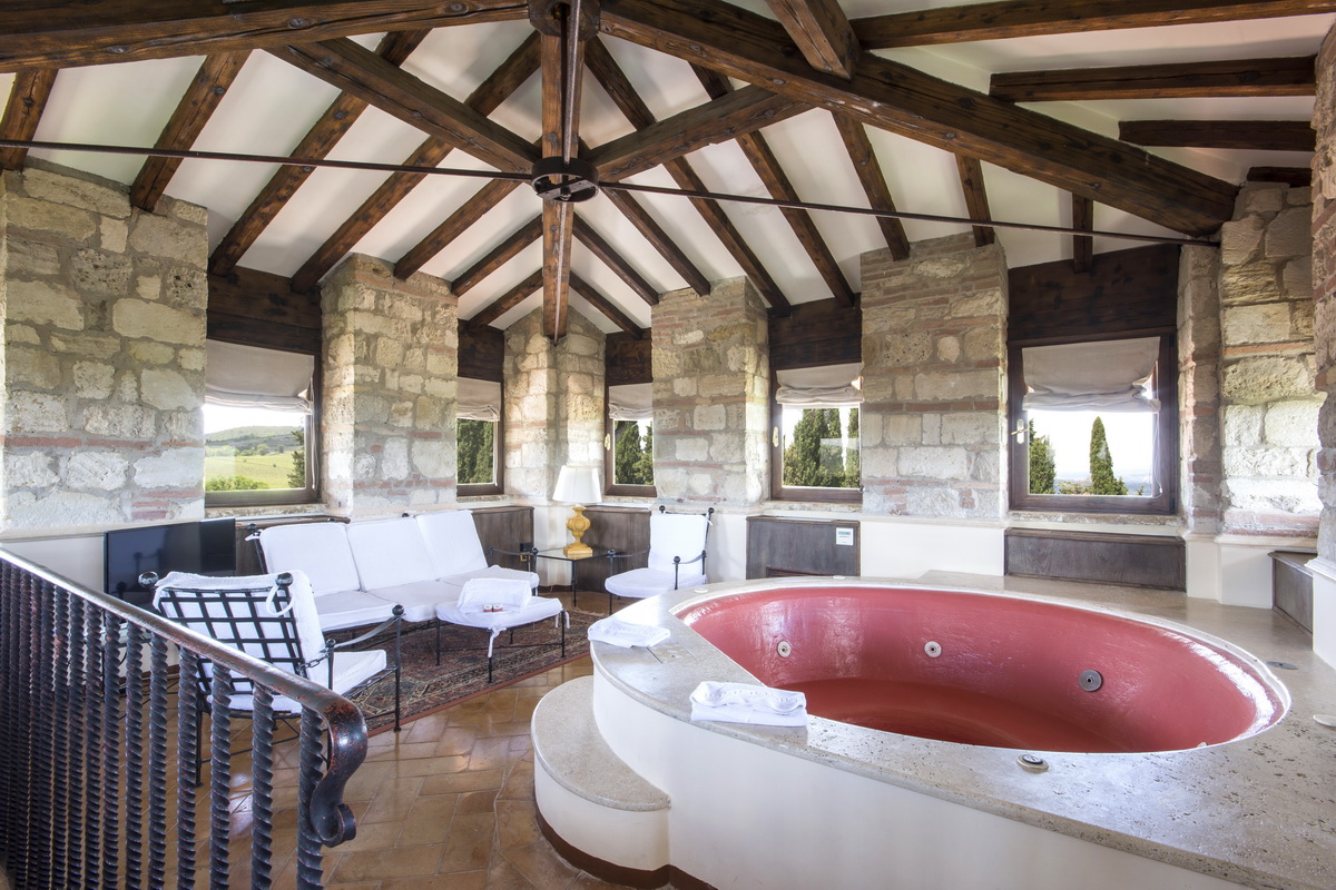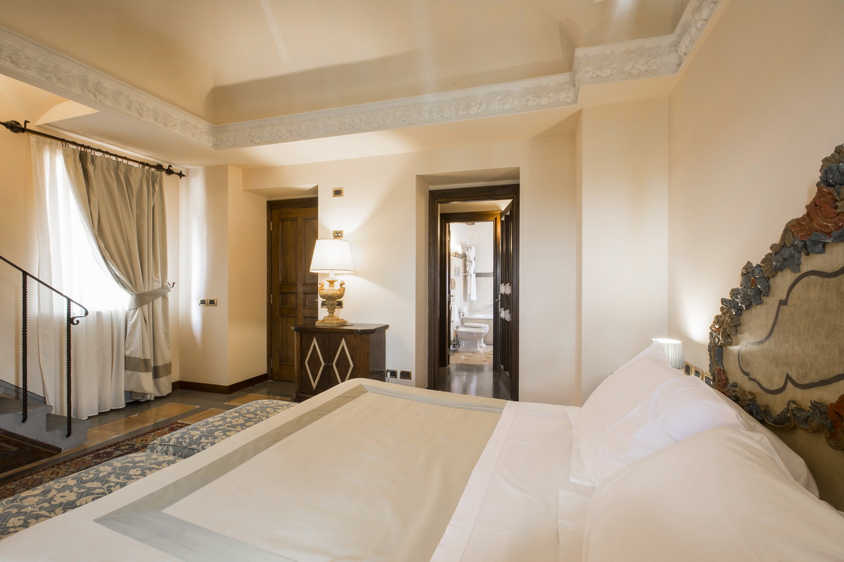 The house was built at the end of the 1500s as a Capuchin monastery, before becoming the summer residence of a Florentine nobleman and today an elegant luxury hotel. The whole building is extremely opulent and is in excellent condition. Original and refurbished materials were used for the majority of the restoration and important architectural features such as window frames, door jambs, columns, shelves and string courses have been preserved. The former chapel and the sacristy have been converted into restaurant rooms, maintaining their original features. Other typical elements include the tower, currently used as a suite on the two top floors, comprising a bedroom and bathroom on one level and a relaxation area on the top floor, with hydro massage pool and 360° view of the towers of San Gimignano and the surrounding countryside and villages.