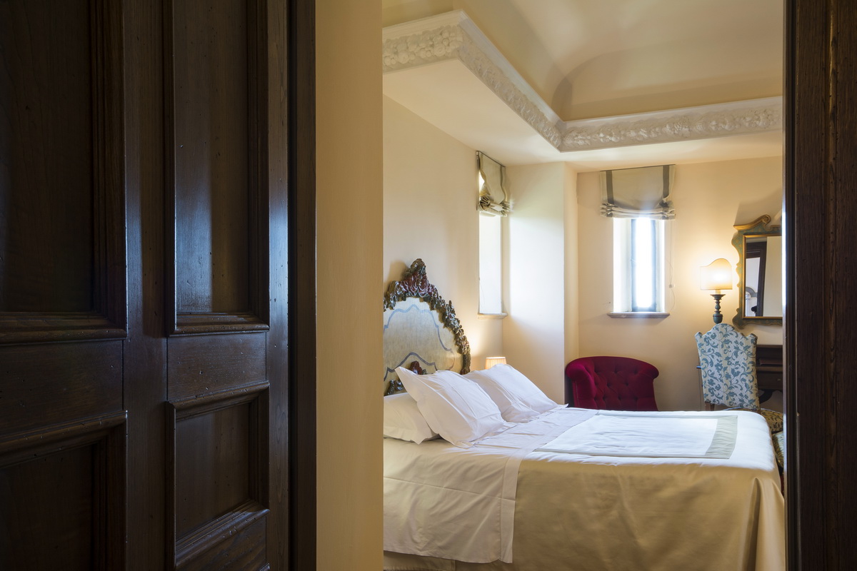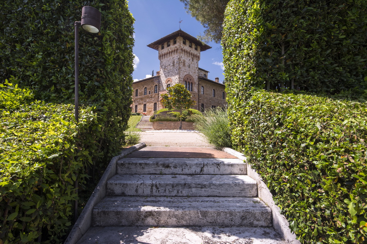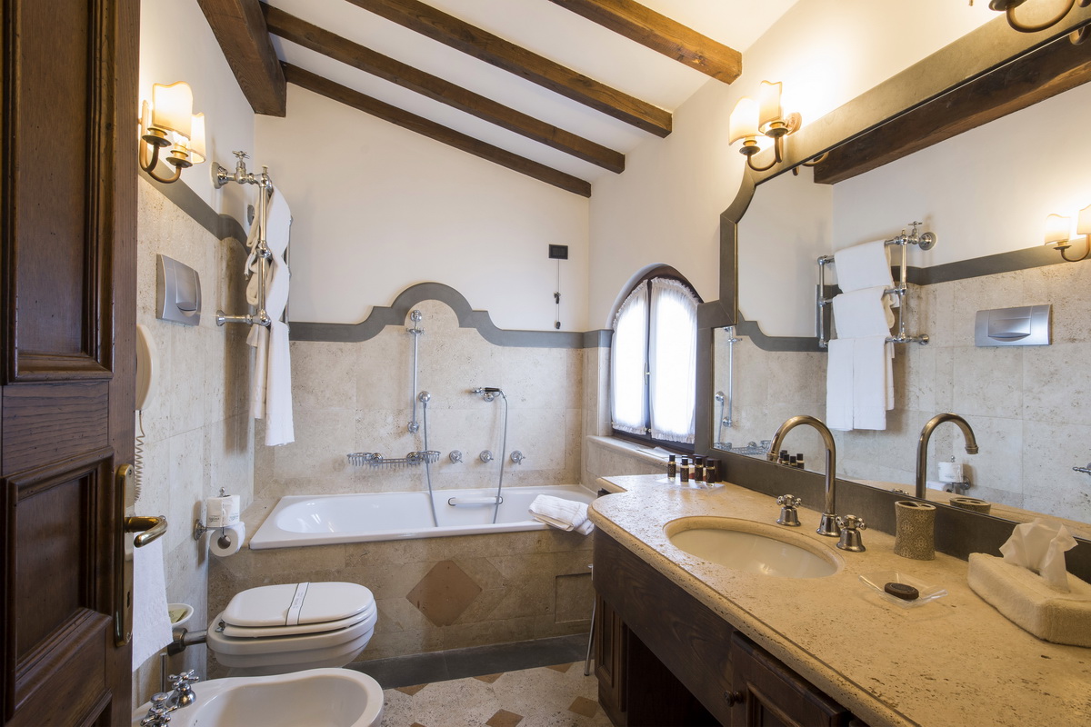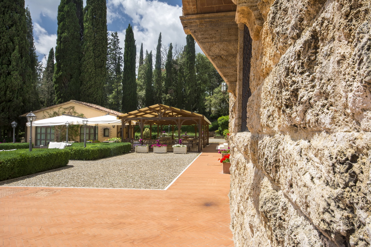 The house was built at the end of the 1500s as a Capuchin monastery, before becoming the summer residence of a Florentine nobleman and today an elegant luxury hotel. The whole building is extremely opulent and is in excellent condition. Original and refurbished materials were used for the majority of the restoration and important architectural features such as window frames, door jambs, columns, shelves and string courses have been preserved. The former chapel and the sacristy have been converted into restaurant rooms, maintaining their original features. Other typical elements include the tower, currently used as a suite on the two top floors, comprising a bedroom and bathroom on one level and a relaxation area on the top floor, with hydro massage pool and 360° view of the towers of San Gimignano and the surrounding countryside and villages.