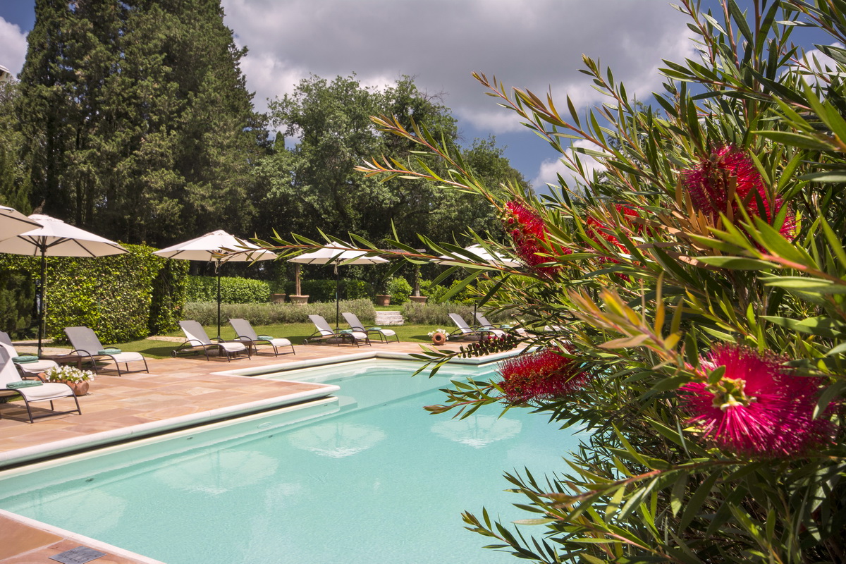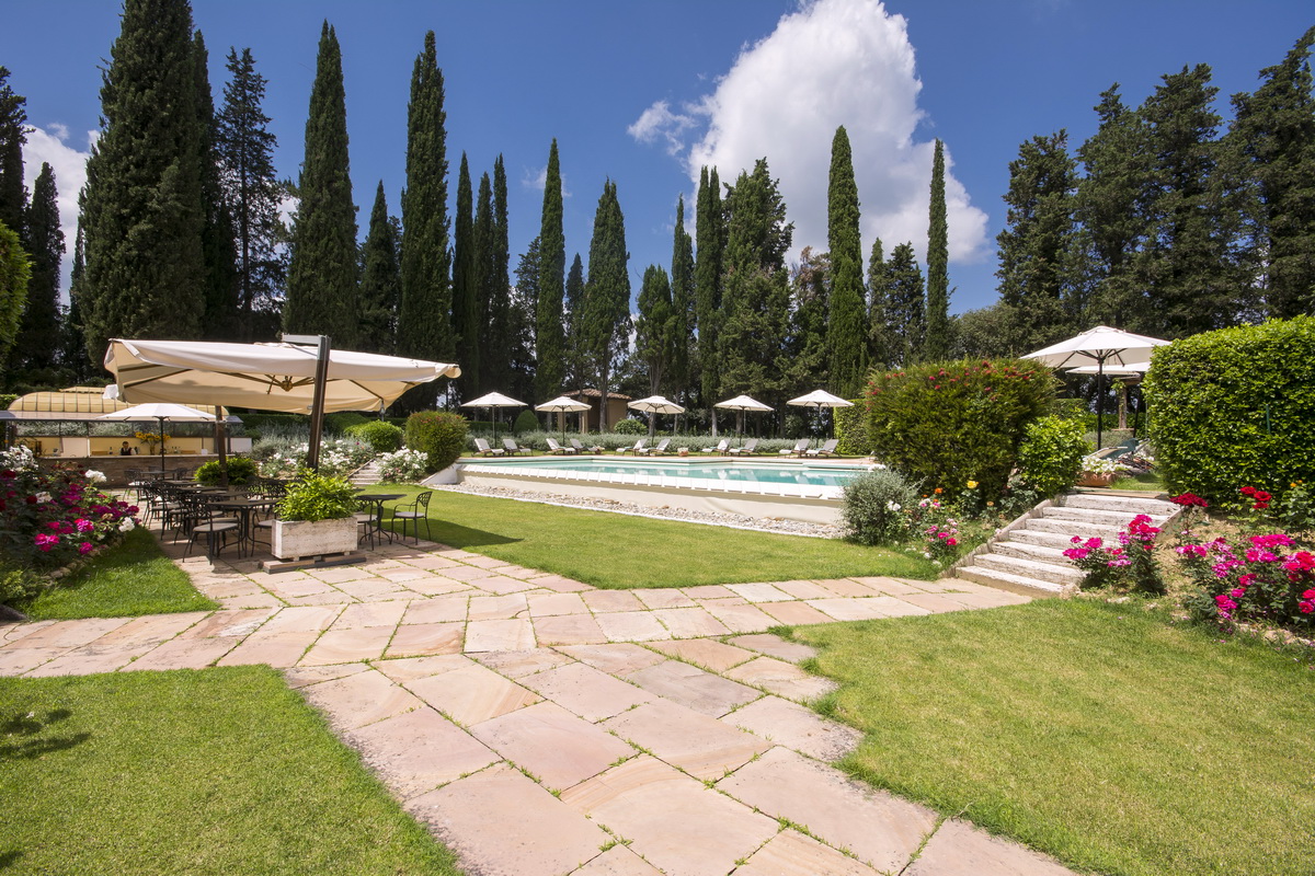 The hotel is surrounded by beautiful grounds measuring around 2.5 hectares, bounded by an old perimeter wall. The garden was designed by an acclaimed landscaper who was a student of Porcinai, one of Italy’s premier landscapers during the 1900s.