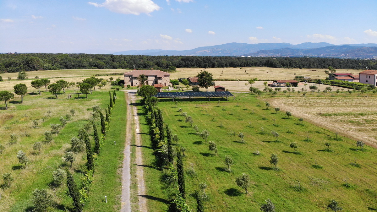 The estate comes with over 70 hectares of land (40 hectares of which are irrigated arable land), with olive grove, vineyard, fruit trees, woodland and a private lake.