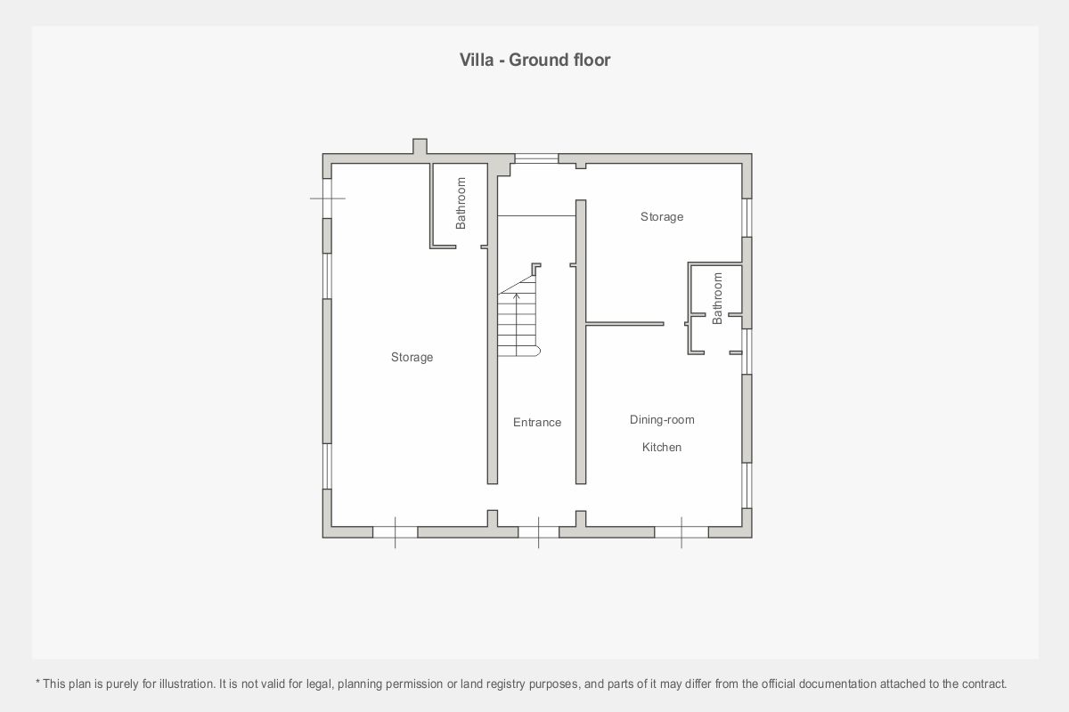 Ground floor: Entrance, kitchen/dining room, cellar, spacious storage area/pantry and 2 bathrooms.