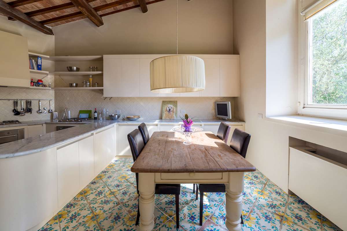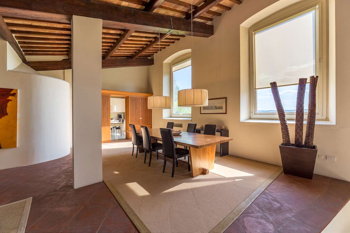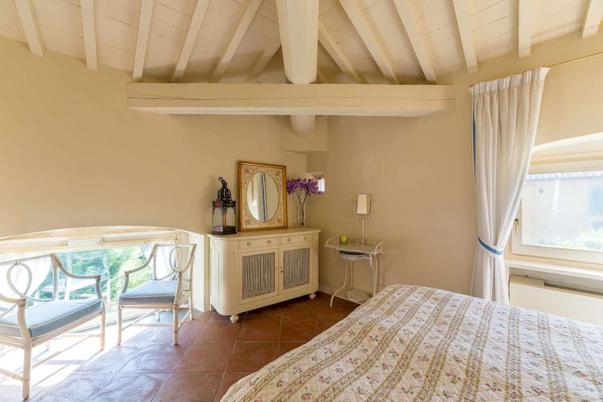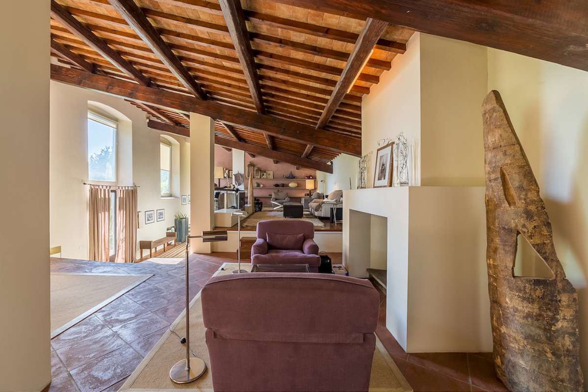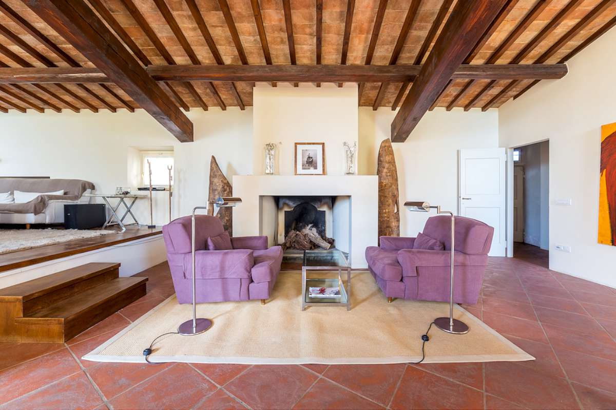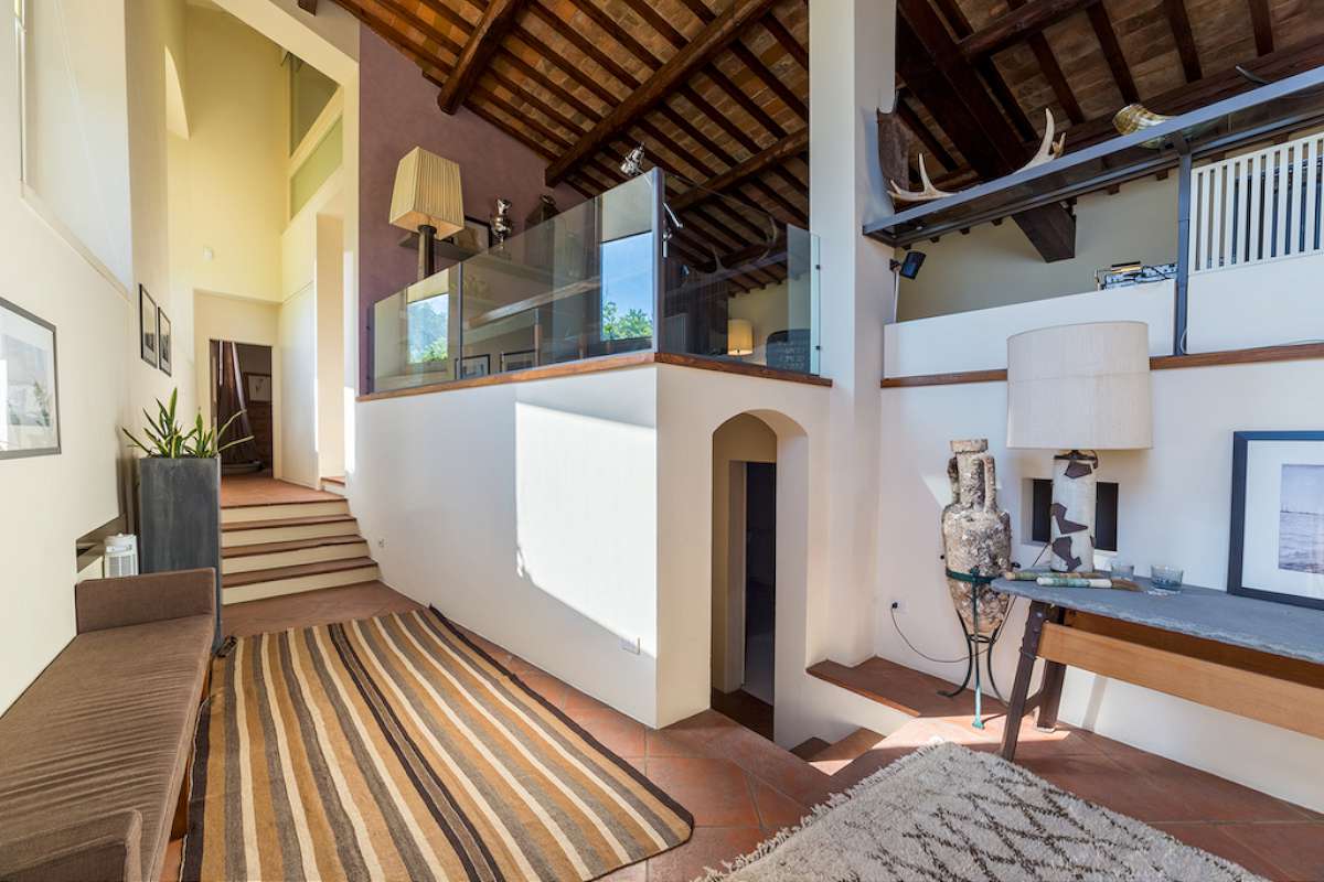 Restored and furnished by a renowned international interior designer, the property boasts wonderful interiors and a skilful fusion of modern building techniques and traditional Tuscan materials. In the main house, downstairs, large windows flood the property with light. Upstairs, the bedrooms have high ceilings and exposed beams. In the restored chapel, contemporary design blends with original stucco wall decorations and mosaic floors.