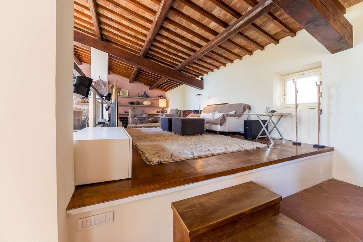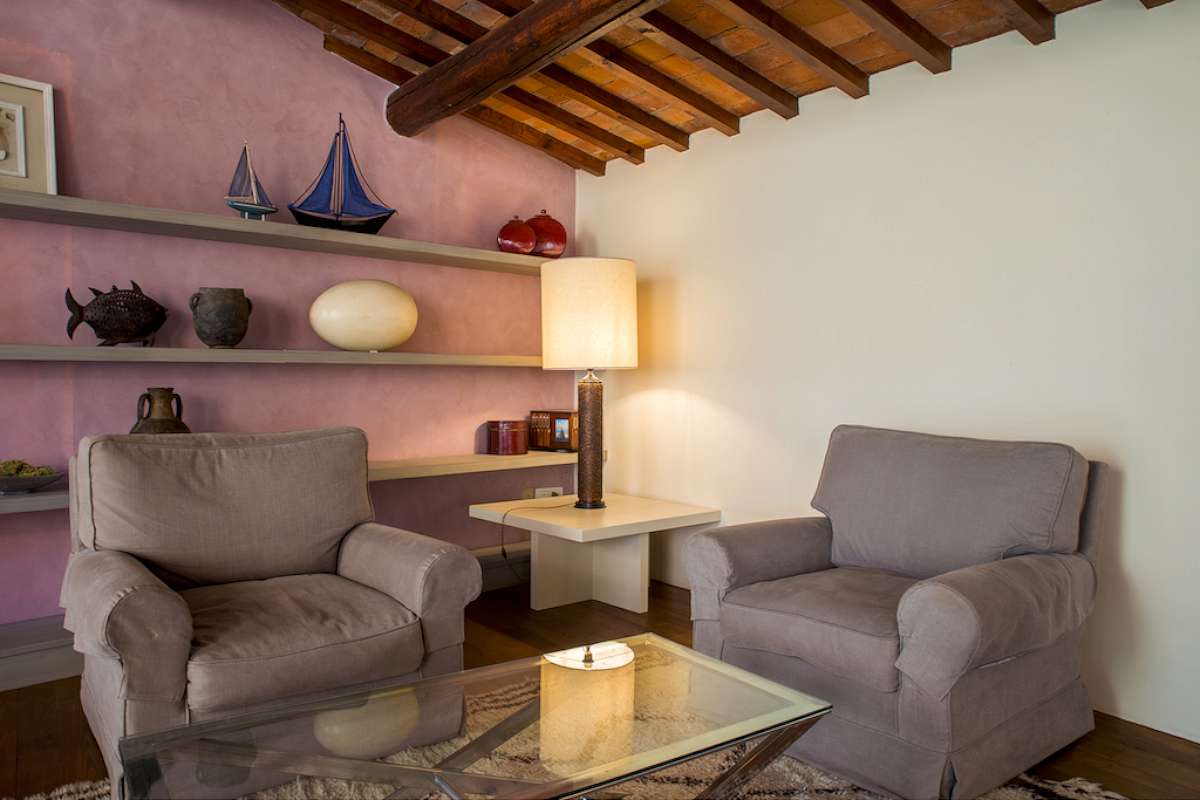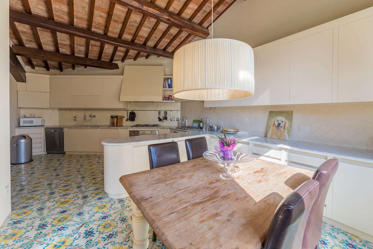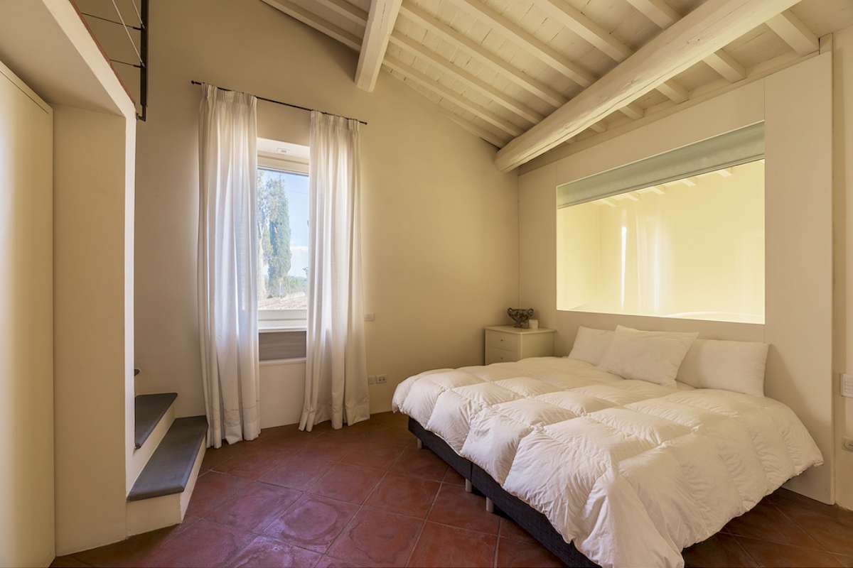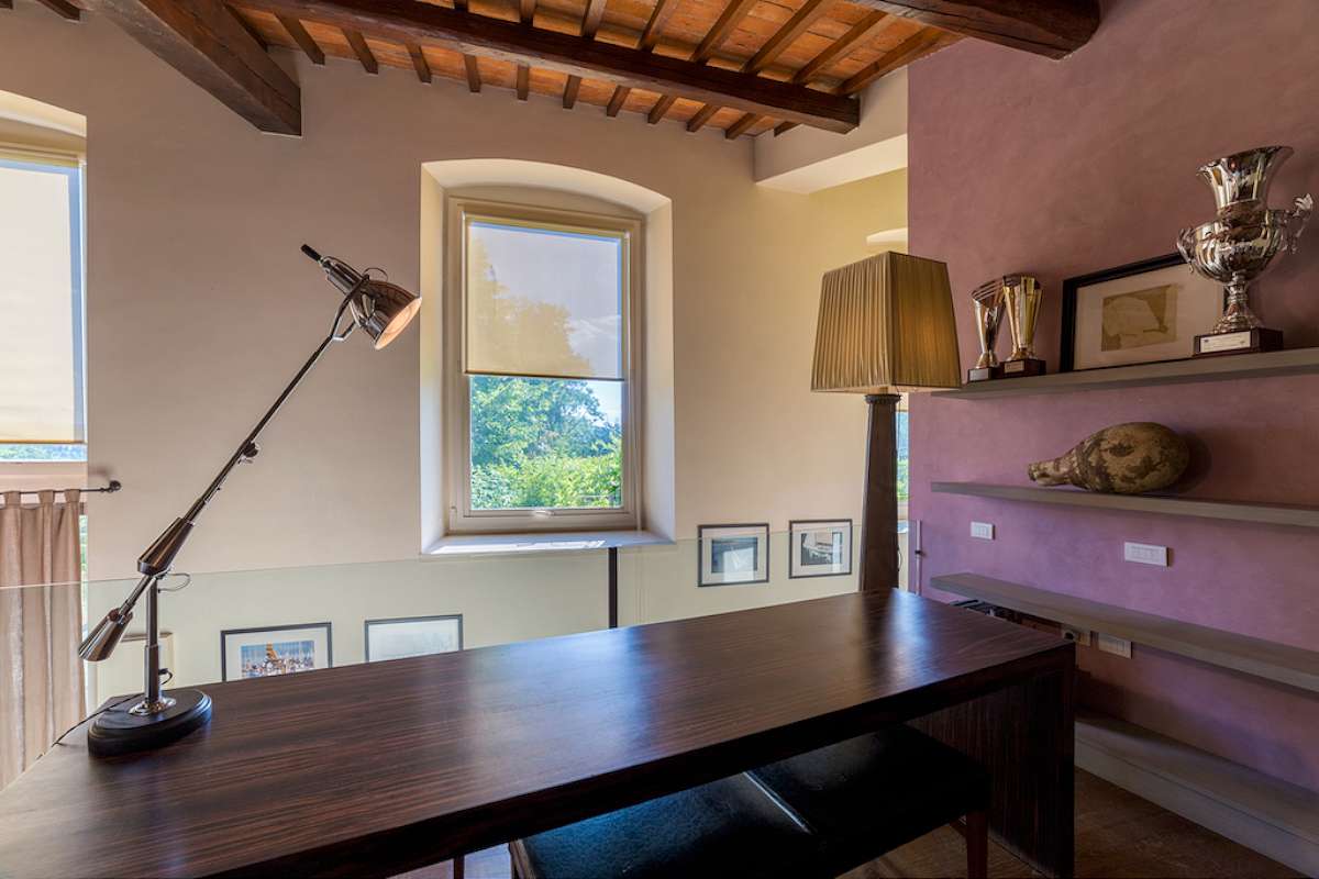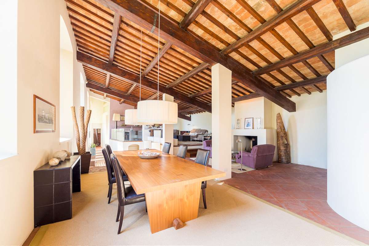 Restored and furnished by a renowned international interior designer, the property boasts wonderful interiors and a skilful fusion of modern building techniques and traditional Tuscan materials. In the main house, downstairs, large windows flood the property with light. Upstairs, the bedrooms have high ceilings and exposed beams. In the restored chapel, contemporary design blends with original stucco wall decorations and mosaic floors.