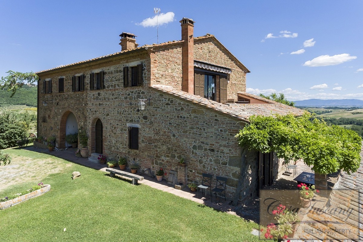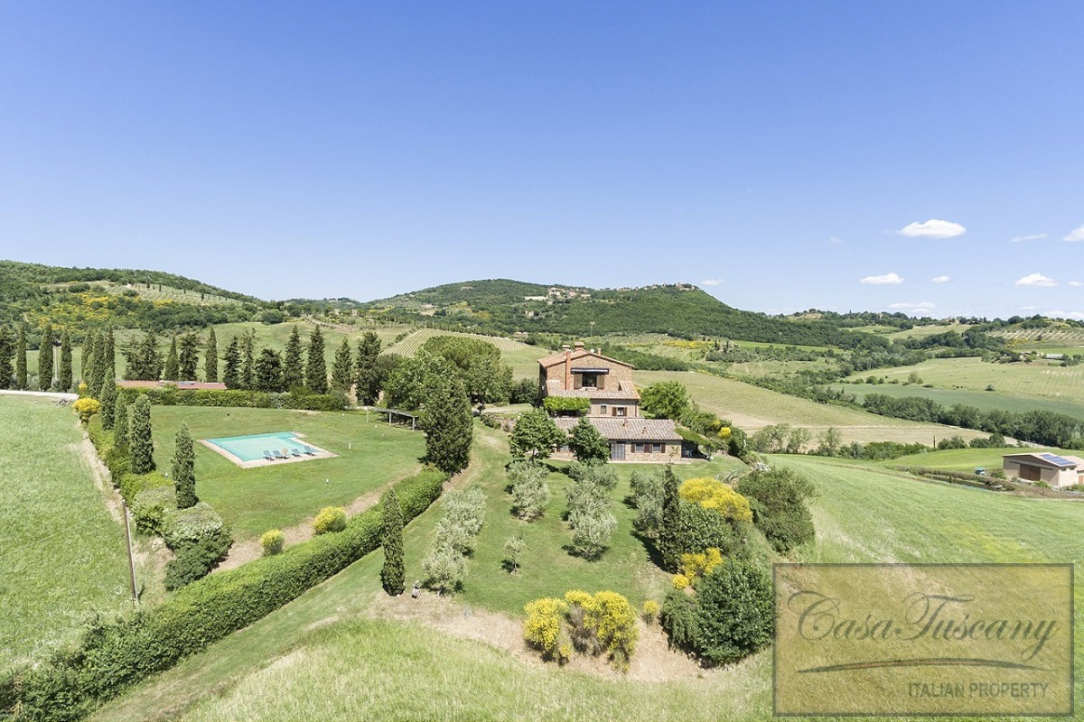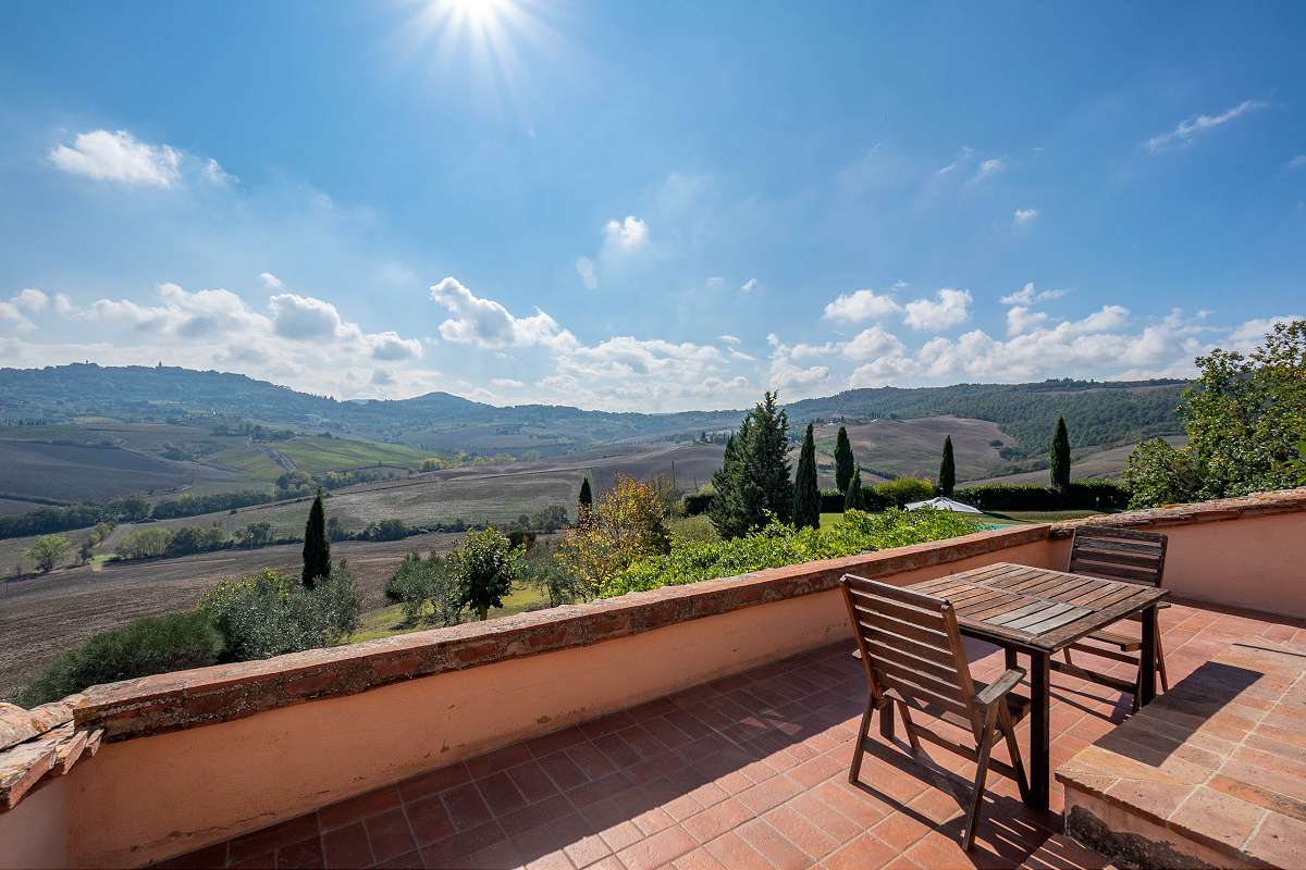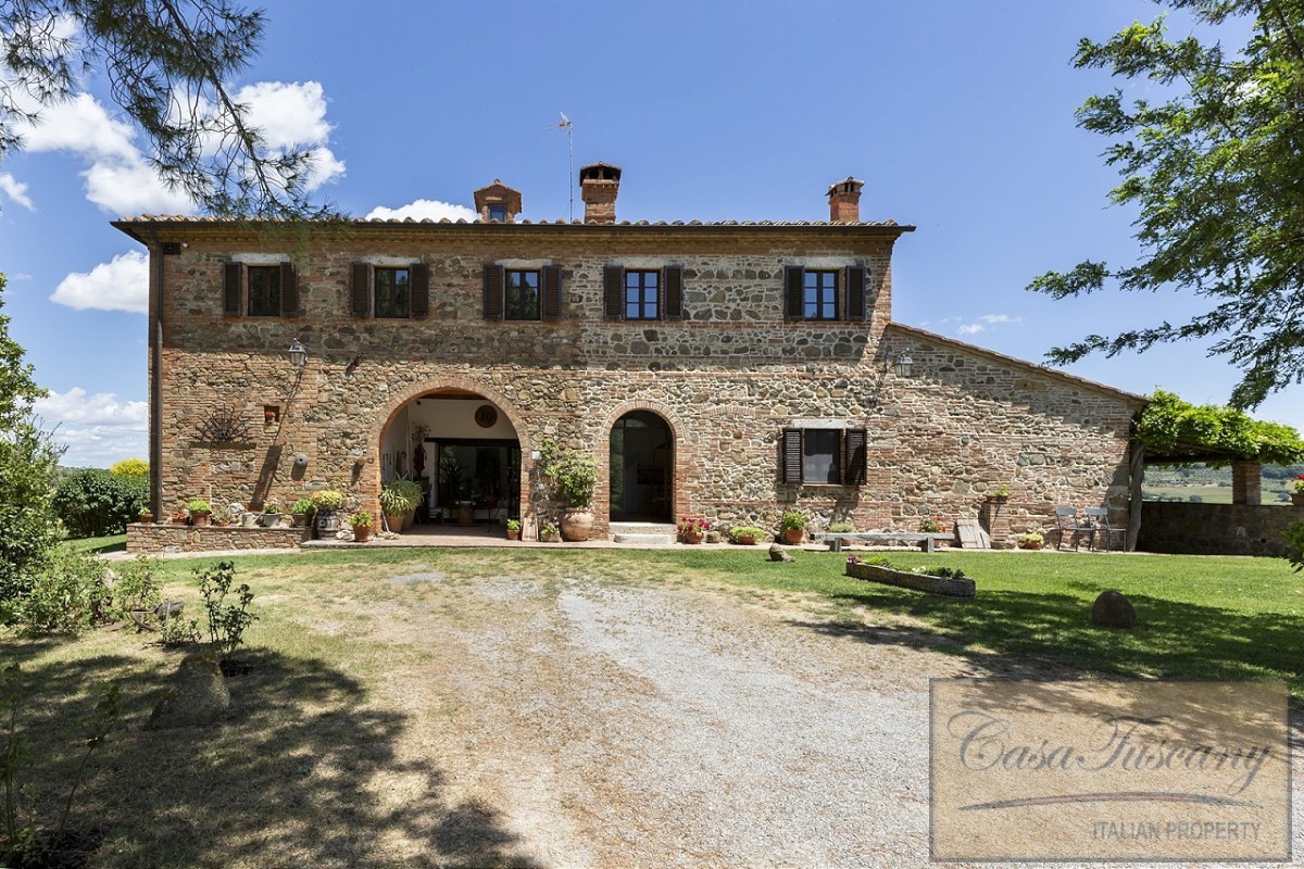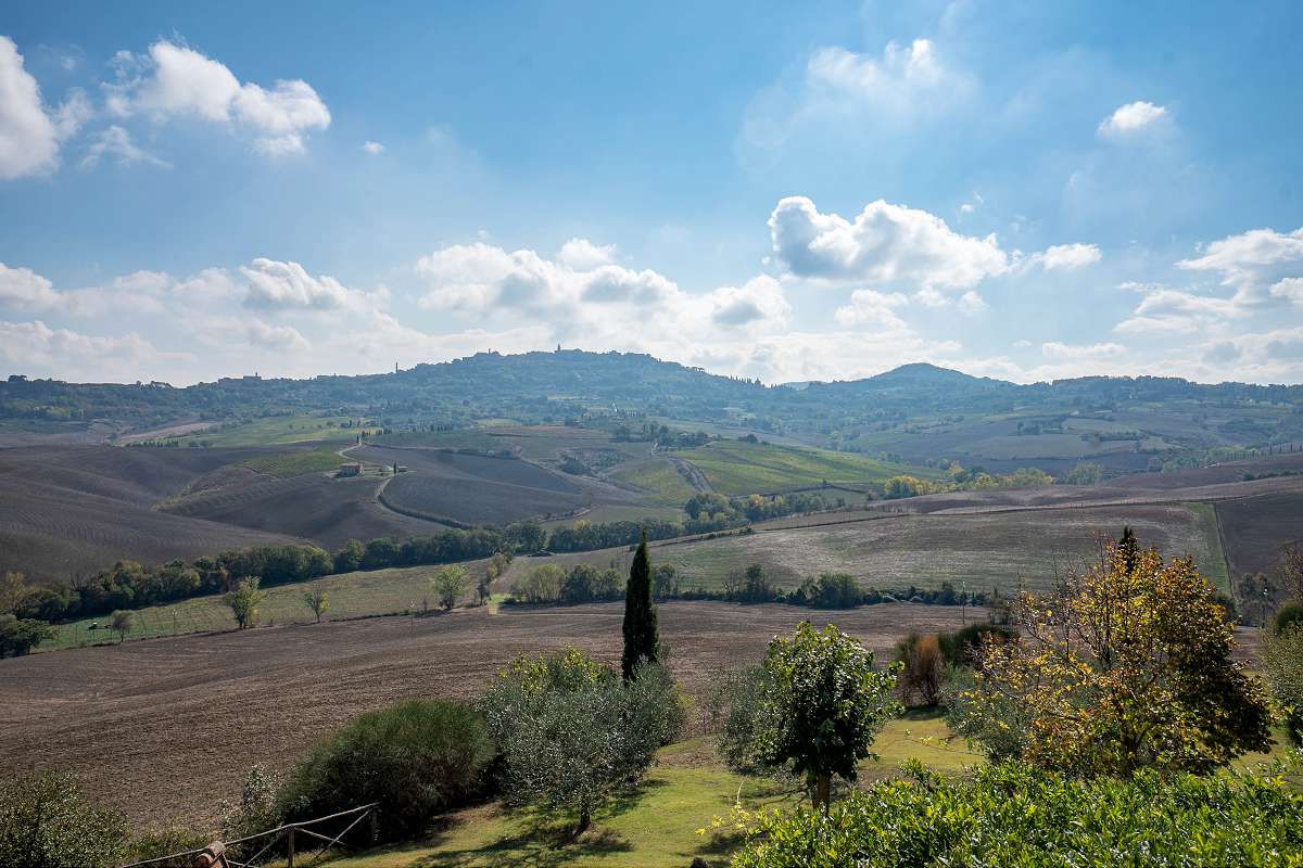 Montepulciano Farmhouse. This beautiful property is located in a panoramic position on a hill near sought after Montepulciano. It boasts 360 ° views of the surrounding Val d’Orcia countryside and the most renowned towns in the area such as Montepulciano, Montefollonico and Pienza.