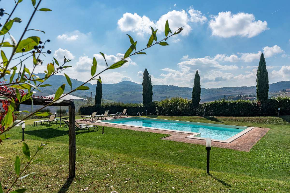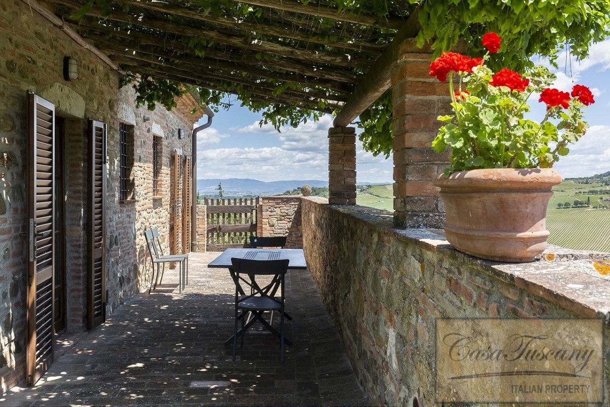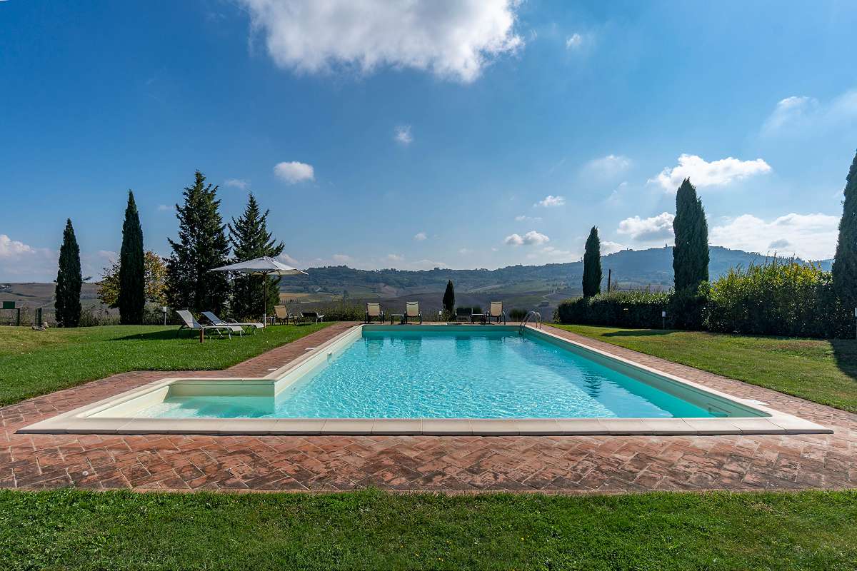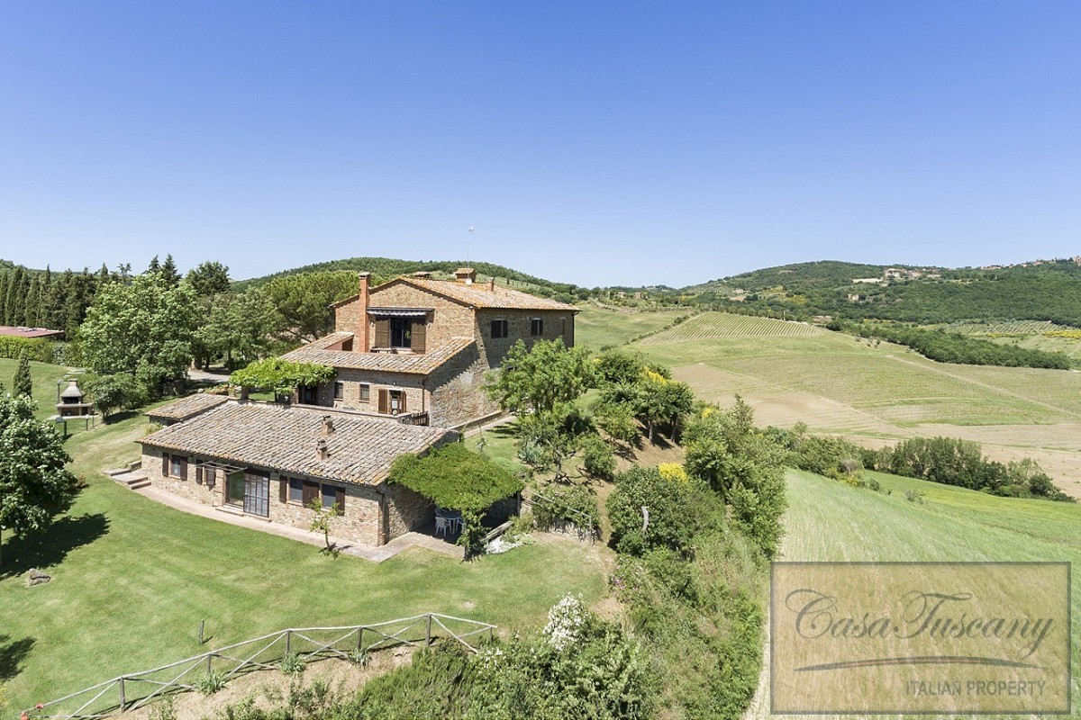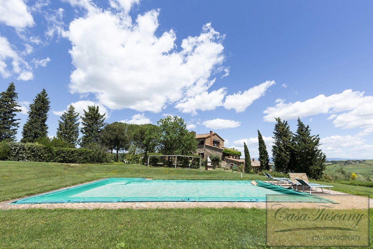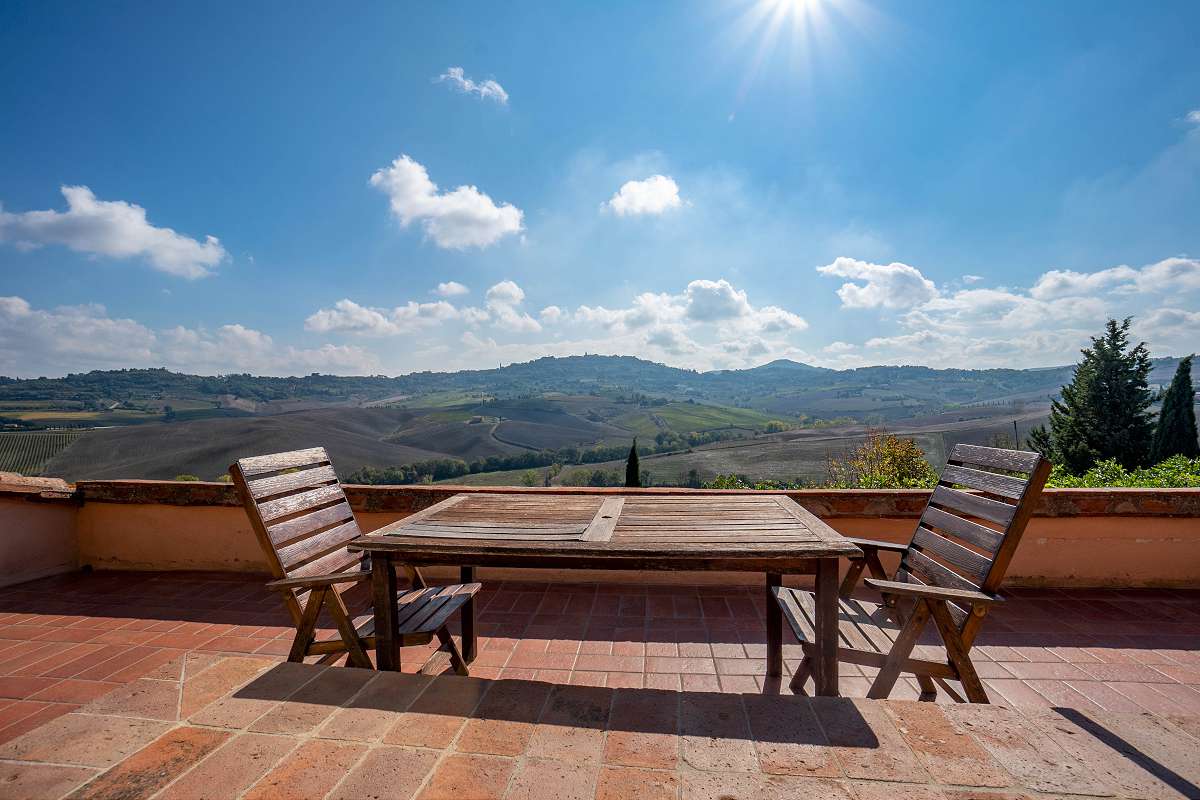 Montepulciano Farmhouse. This beautiful property is located in a panoramic position on a hill near sought after Montepulciano. It boasts 360 ° views of the surrounding Val d’Orcia countryside and the most renowned towns in the area such as Montepulciano, Montefollonico and Pienza.