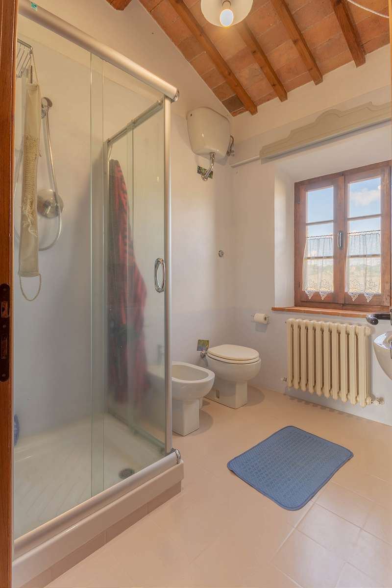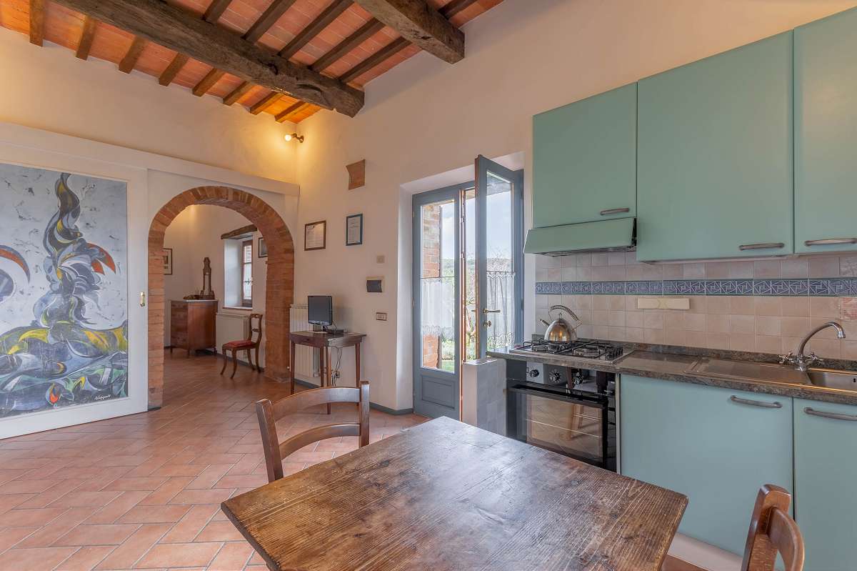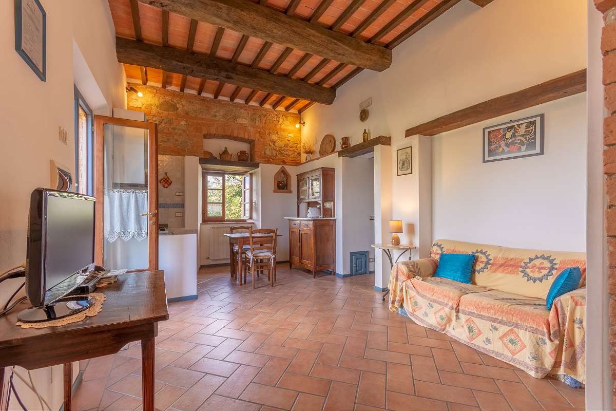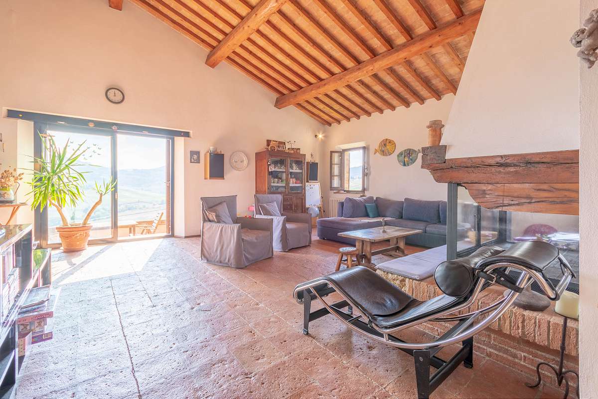 Apartment of about 150 sqm with large living room of about 60 sqm with fireplace and kitchenette and access to terrace of about 20 sqm with panoramic view of Montepulciano, 3 bedrooms, 2 bathrooms.