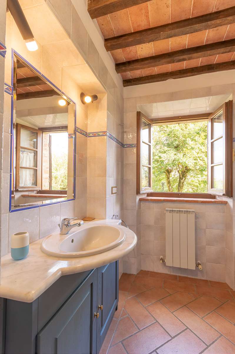 The property, which dates back to the end of the 1700s, has been carefully restored between 1988 and 2000, keeping intact the charm and original features such as exposed wooden beams and terracotta floors.