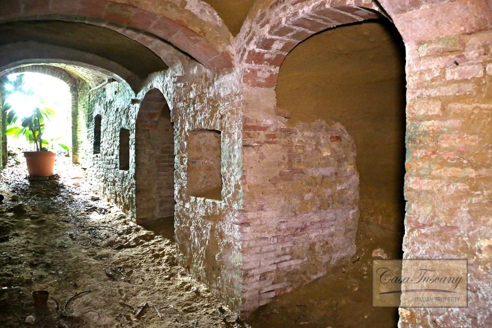Ground floor: 350 sqm and completely restored, 2 entrances, kitchen with typical Italian wood oven, 50 sqm living room with vaulted ceiling, dining room with frescoes, bathroom, cellar with original stone walls and recesses for wine storage, various storage rooms.