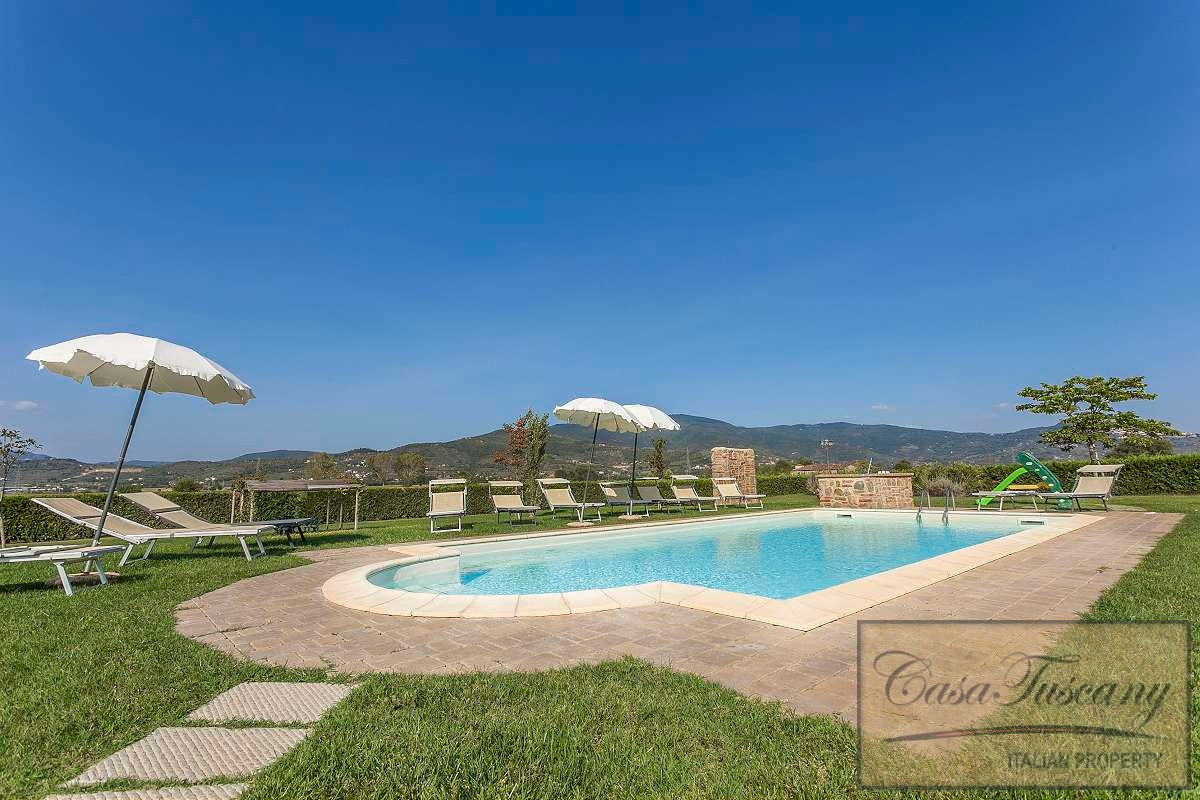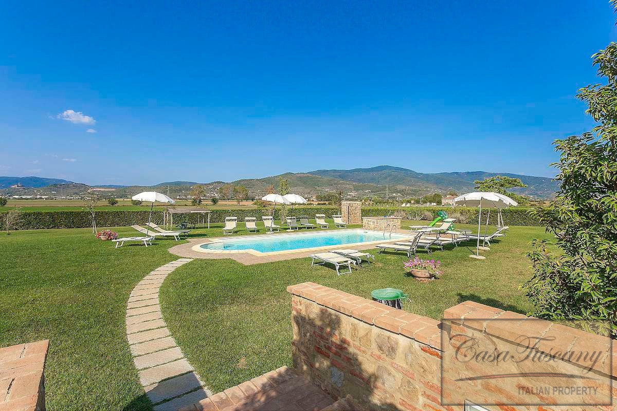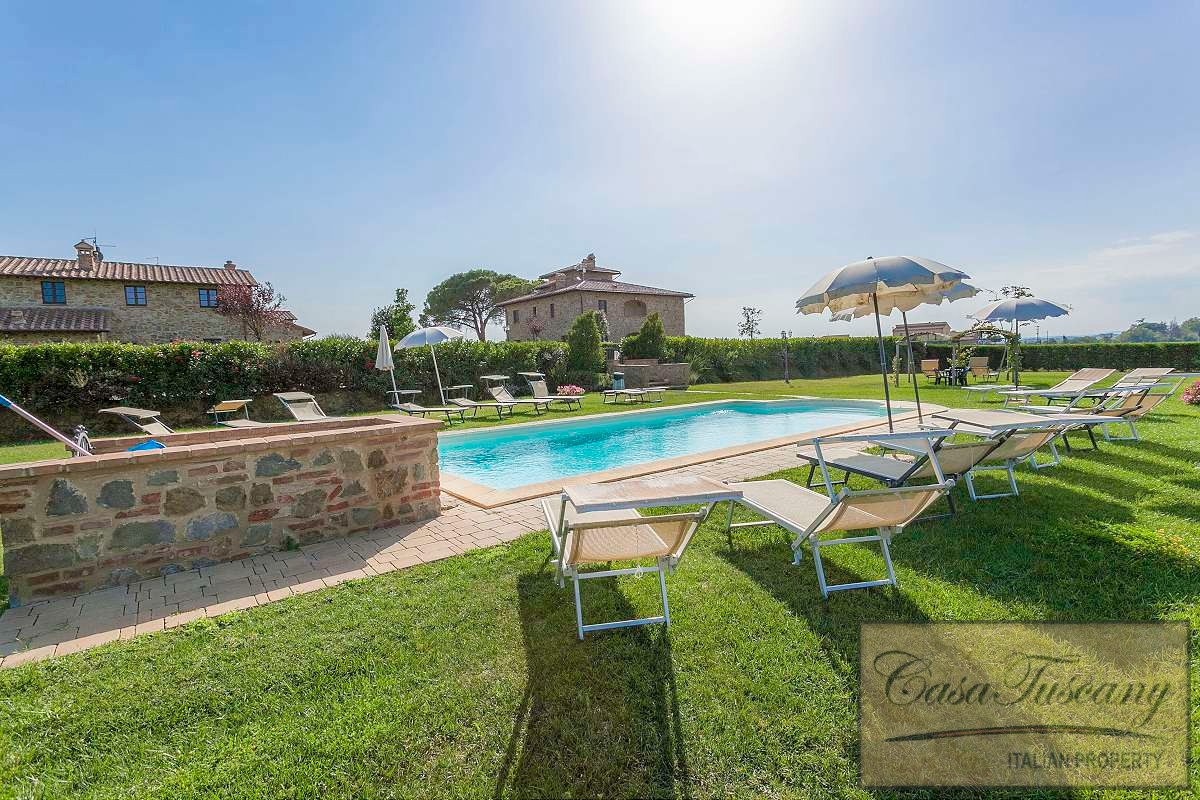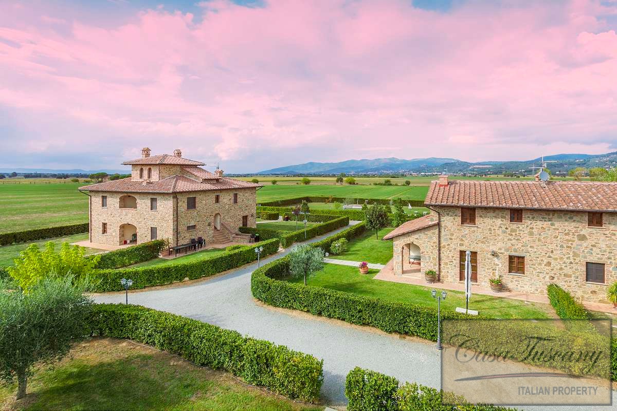 Farmhouse near Cortona. Immersed in the Tuscan countryside, this stunning farmhouse sits at the foot of the Etruscan hilltop town of Cortona, renowned the world over for its beauty, culture, art and gastronomy. Surrounded by the plain of the Chiana Valley with its wheat and sunflower fields, the ancient walls of Cortona create a wonderful backdrop for this beautiful property. The other main attractions of the area such as Florence, Montepulciano, Siena, Assisi, Pienza, Perugia and Gubbio are all easily accessible.