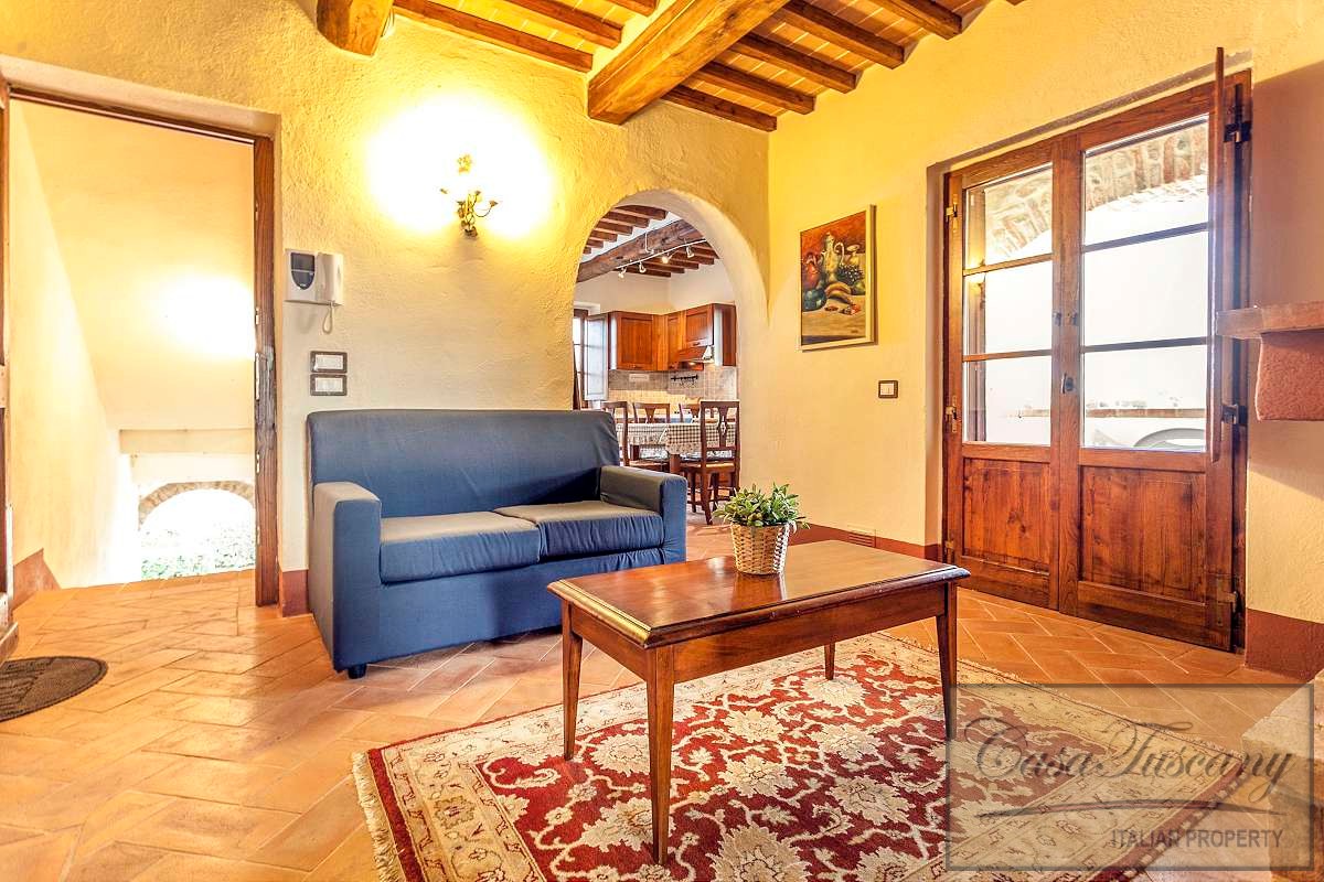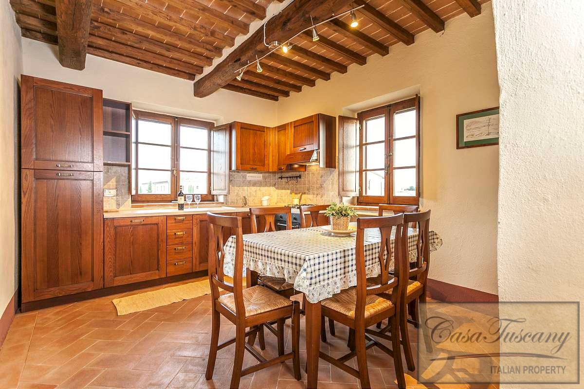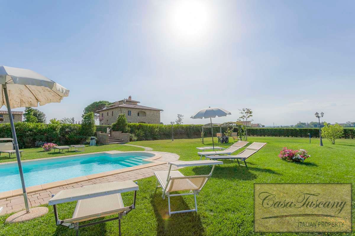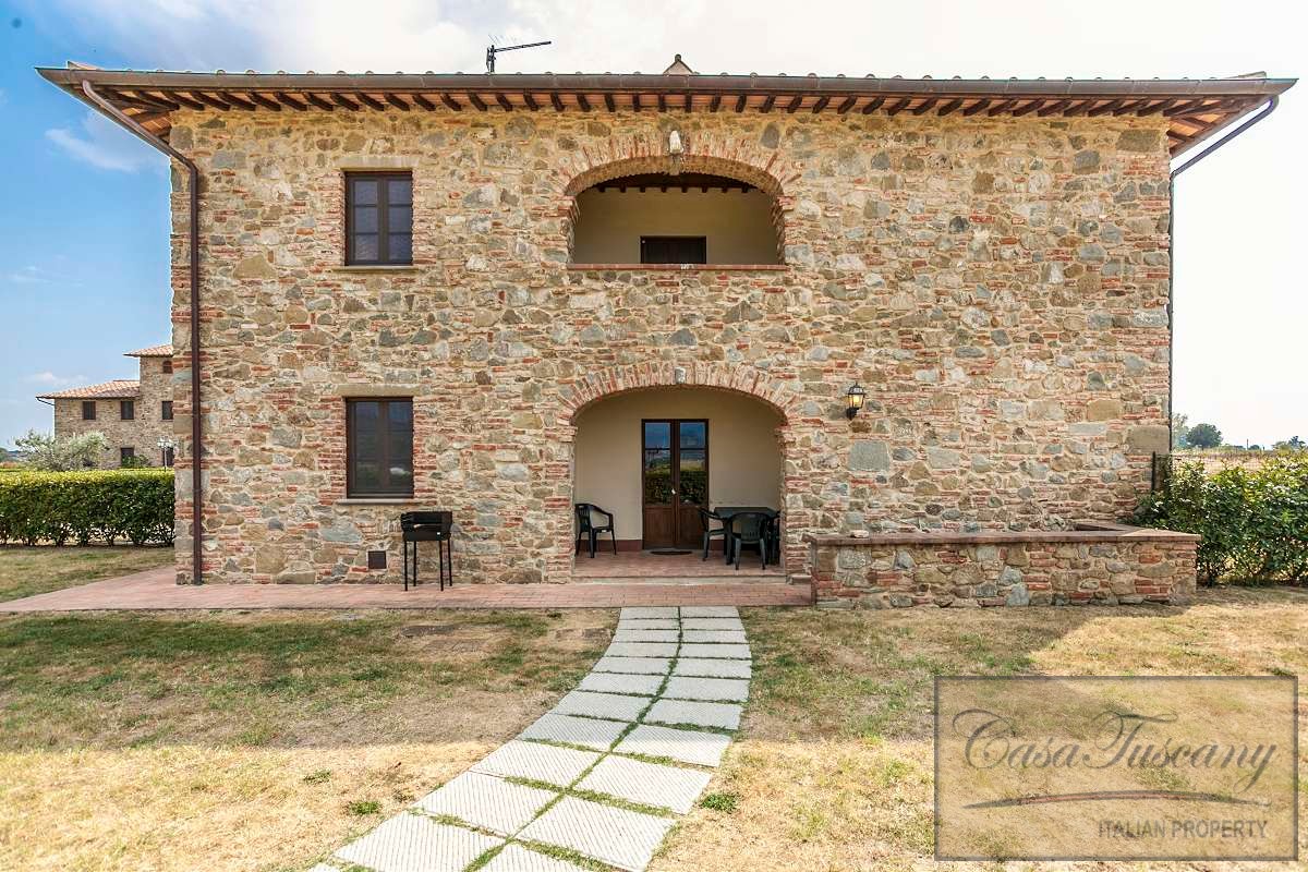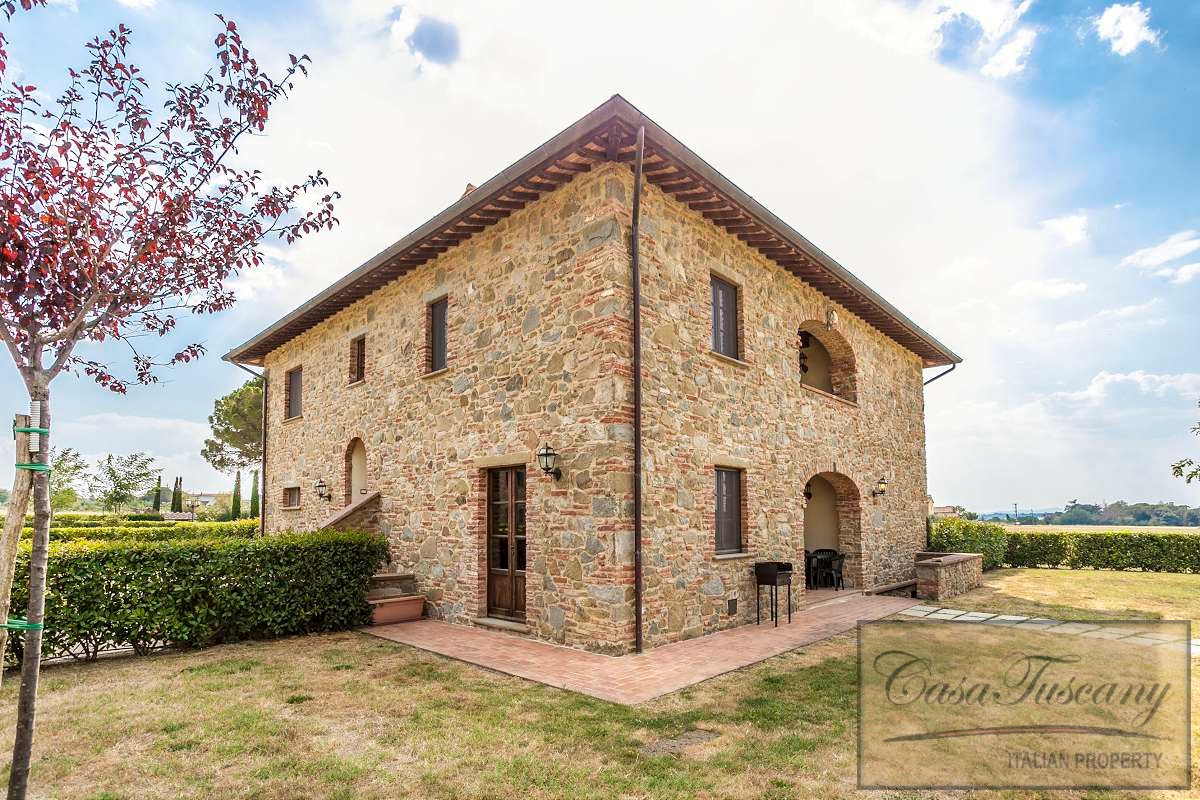 Farmhouse near Cortona. Immersed in the Tuscan countryside, this stunning farmhouse sits at the foot of the Etruscan hilltop town of Cortona, renowned the world over for its beauty, culture, art and gastronomy. Surrounded by the plain of the Chiana Valley with its wheat and sunflower fields, the ancient walls of Cortona create a wonderful backdrop for this beautiful property. The other main attractions of the area such as Florence, Montepulciano, Siena, Assisi, Pienza, Perugia and Gubbio are all easily accessible.