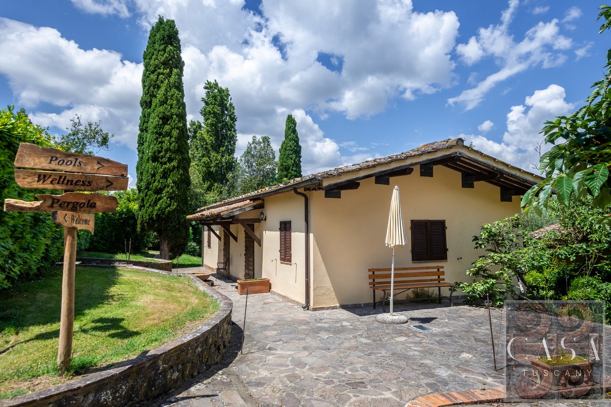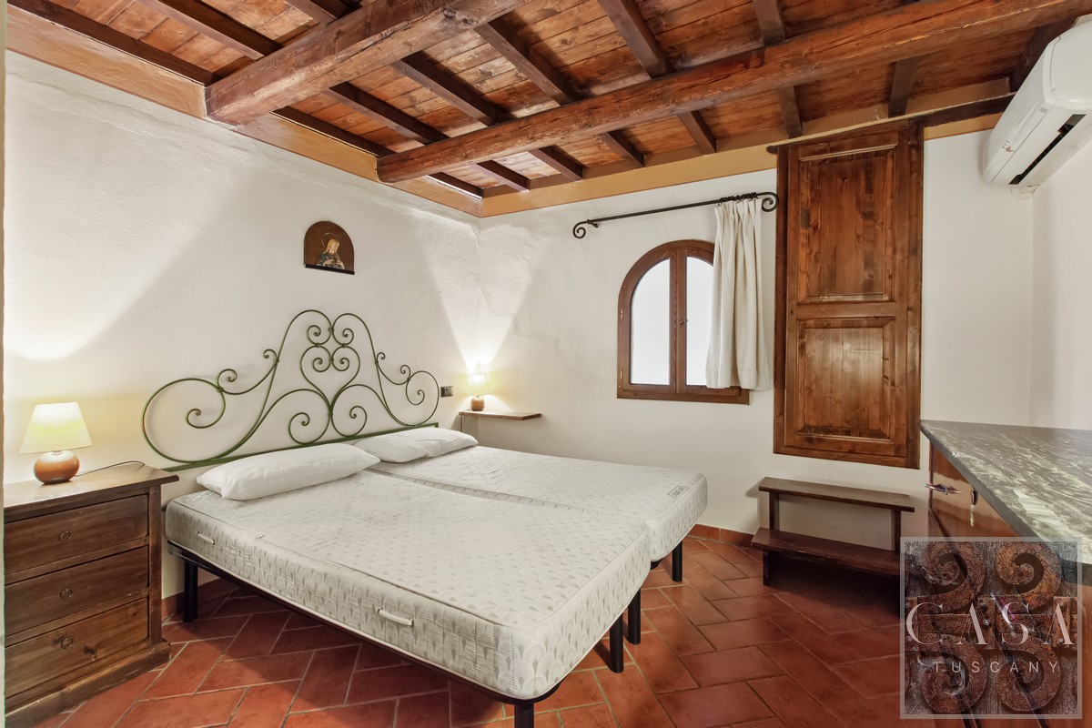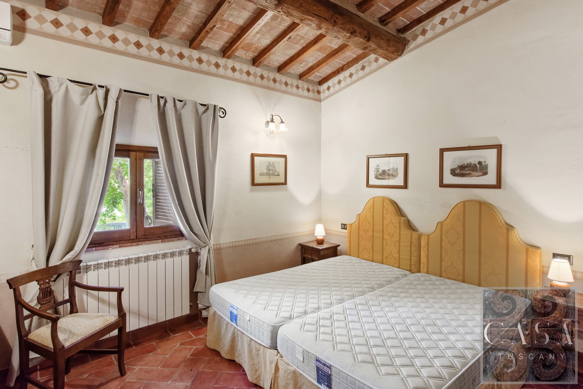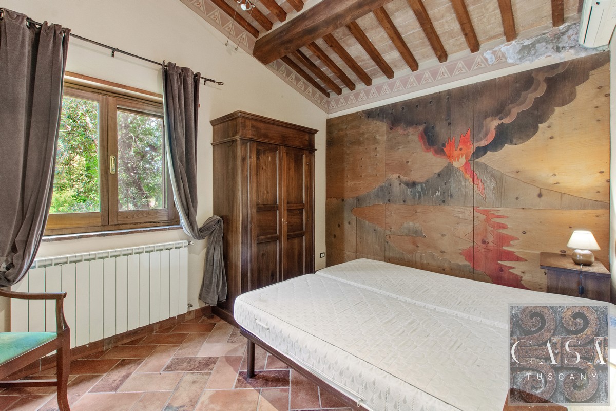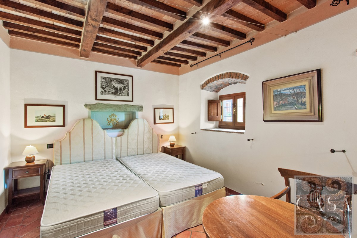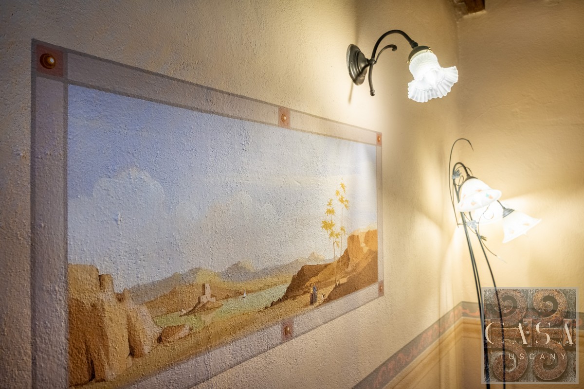 The skilful restoration of the convent between 1995 and 1998 has created elegant accommodation, all with views of the vineyards of the estate and Cortona. Each room is enriched with unique frescoes by the master Eugenio Lucani and his heir, Silena Gallorini. The rooms are decorated in Umbrian / Tuscan style, with warm and welcoming colours, exposed beams and terracotta floors. Furniture is included in the sale price. The property is the ideal location for organising events and functions as well as offering tourist accommodation.