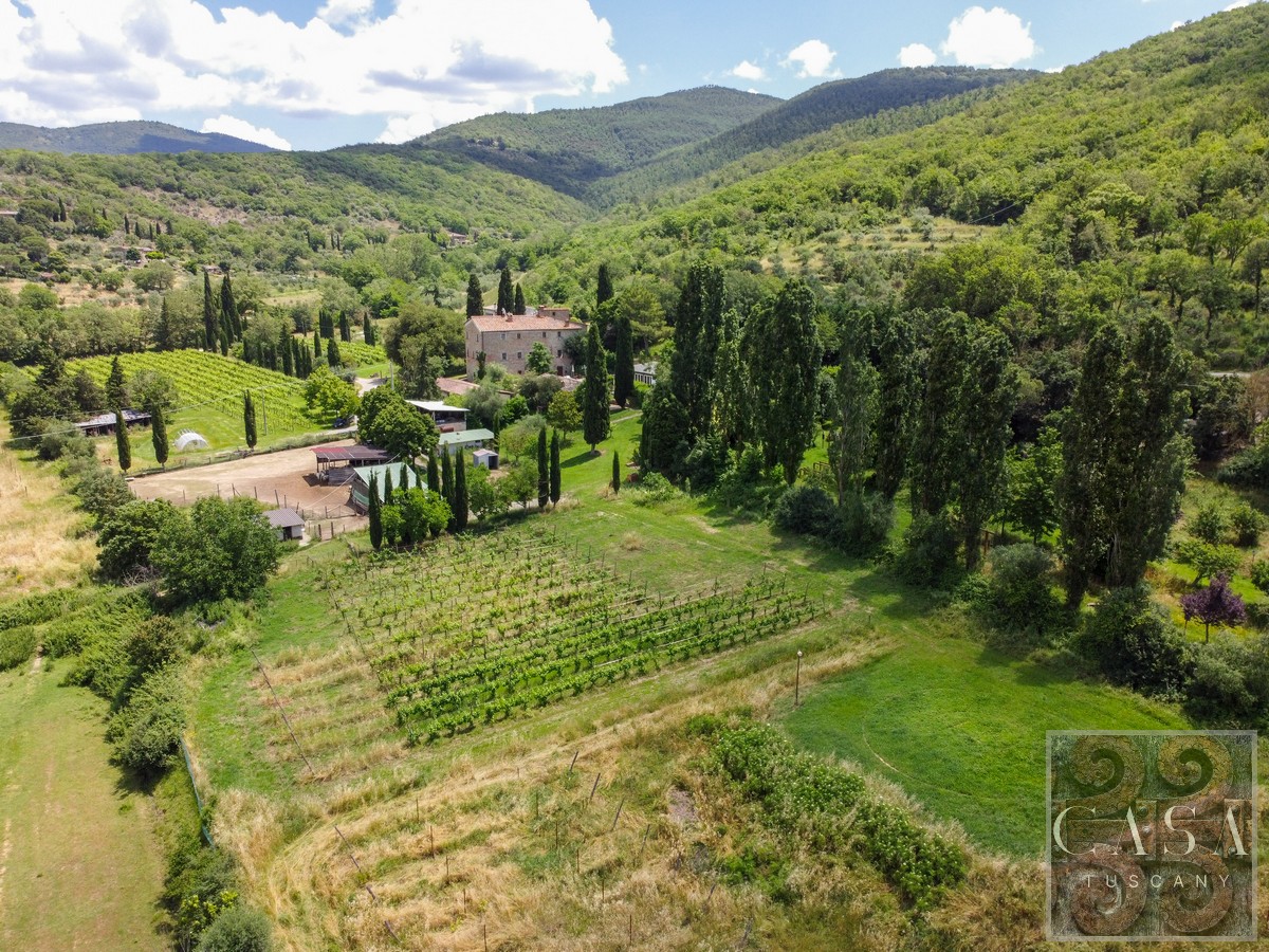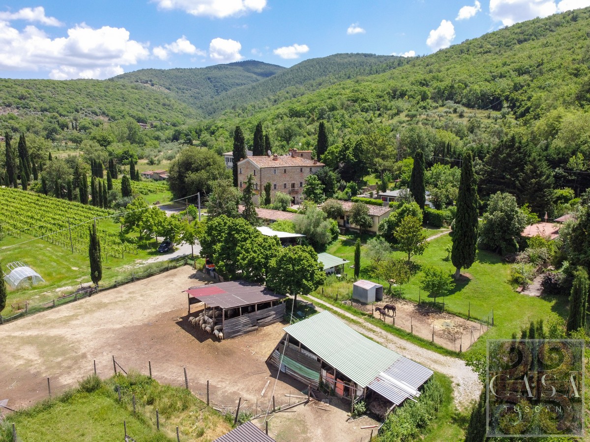11 hectares of land with 1.6 hectares of vineyard (Sangiovese 84%, Merlot 8% and Syrah 8%), 4 hectares of olive groves, a certified sheep farm, a pig farm, poultry and vegetables.