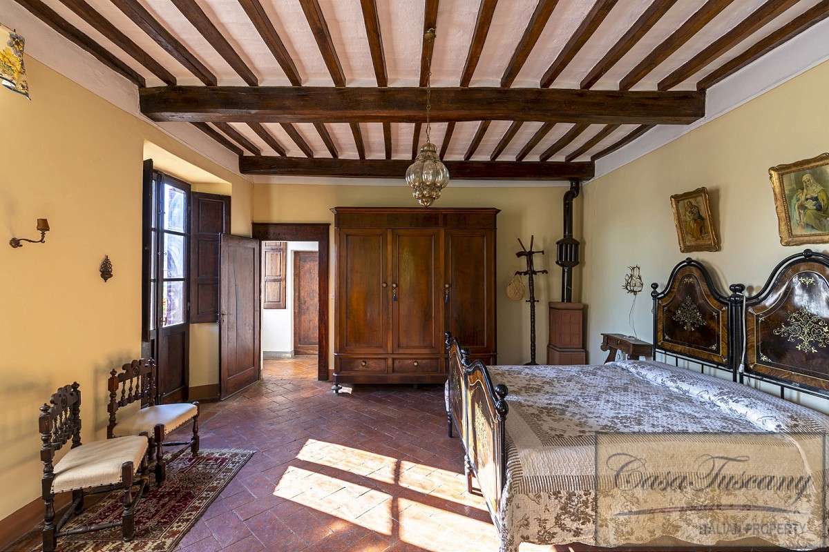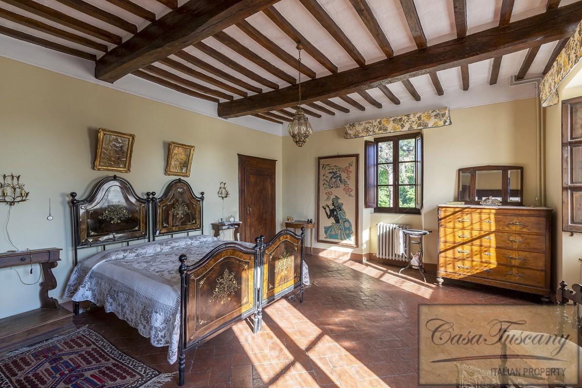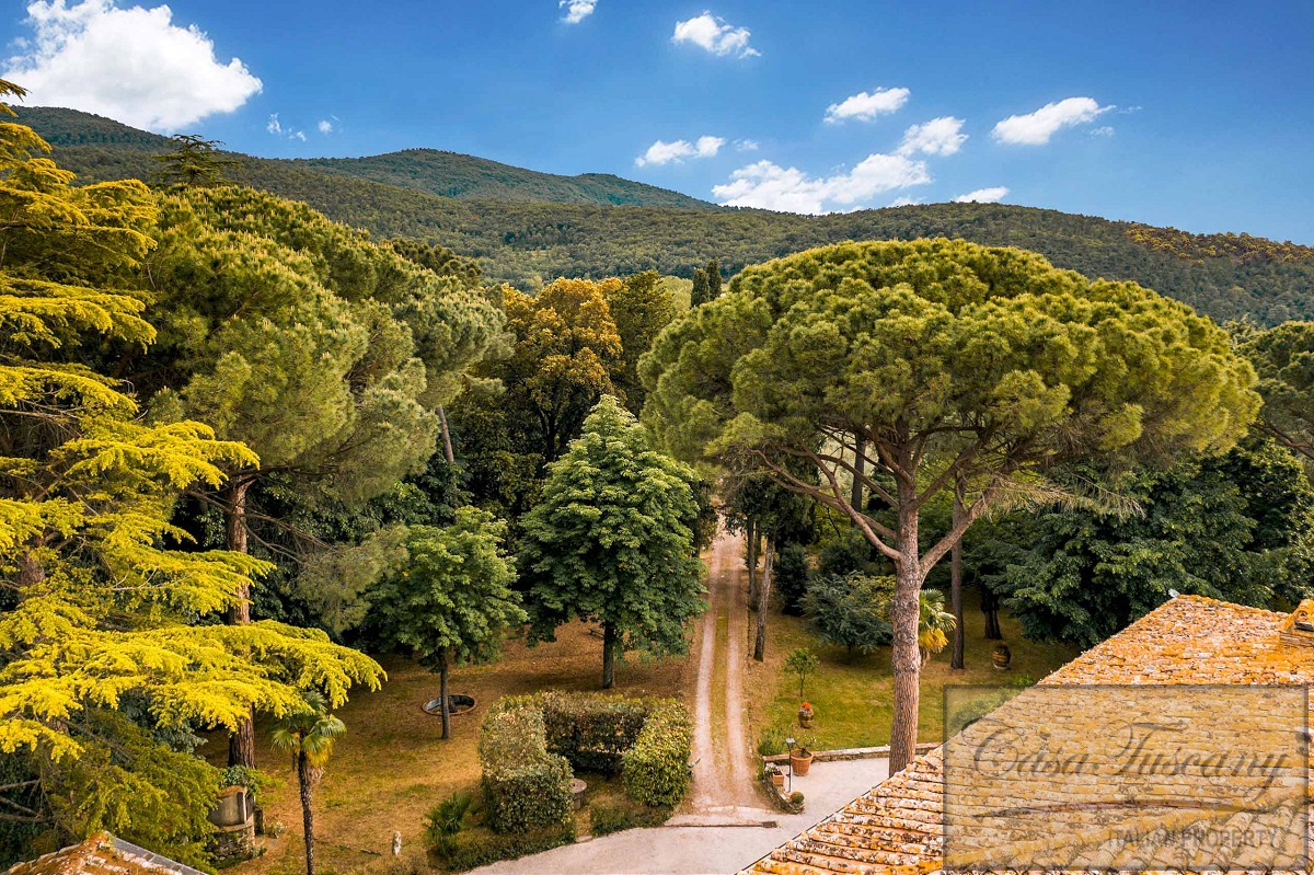 Dating back to the 1700s, this distinguished villa bears testimony to its past with a wealth of original features such as the emblem the Medici family to whom it once belonged. In an elevated position, this stately building offers 950 sqm of space on 3 storeys above ground. Divided into 4 units it has 10 double bedrooms, 2 single bedrooms, 8 bathrooms and 4 kitchens in total. In addition, there is an ancient chapel 35 sqm, now used for agricultural activities. Surrounded by 2 hectares of fenced parkland, the property features and an entrance of ancient cypresses of majestic proportions, an olive grove and a vineyard. It would be possible to add a pool subject to planning permission.