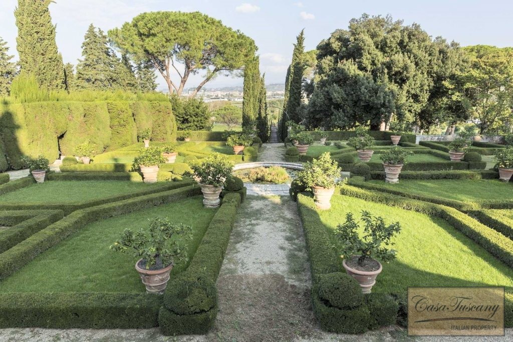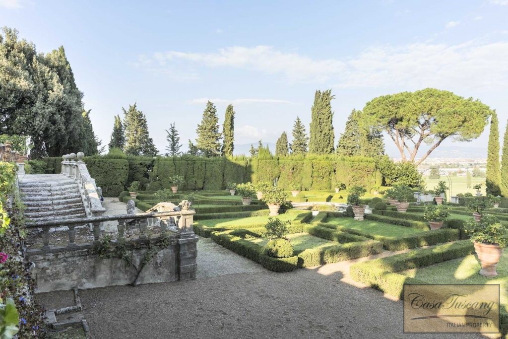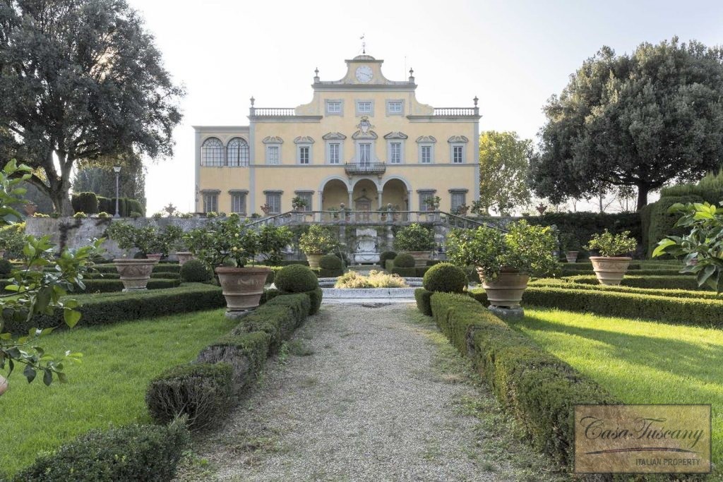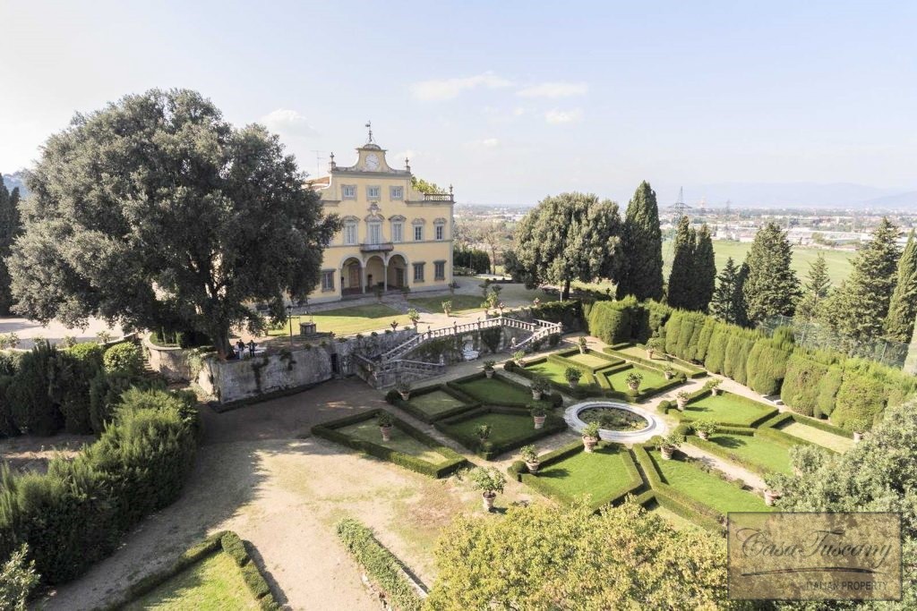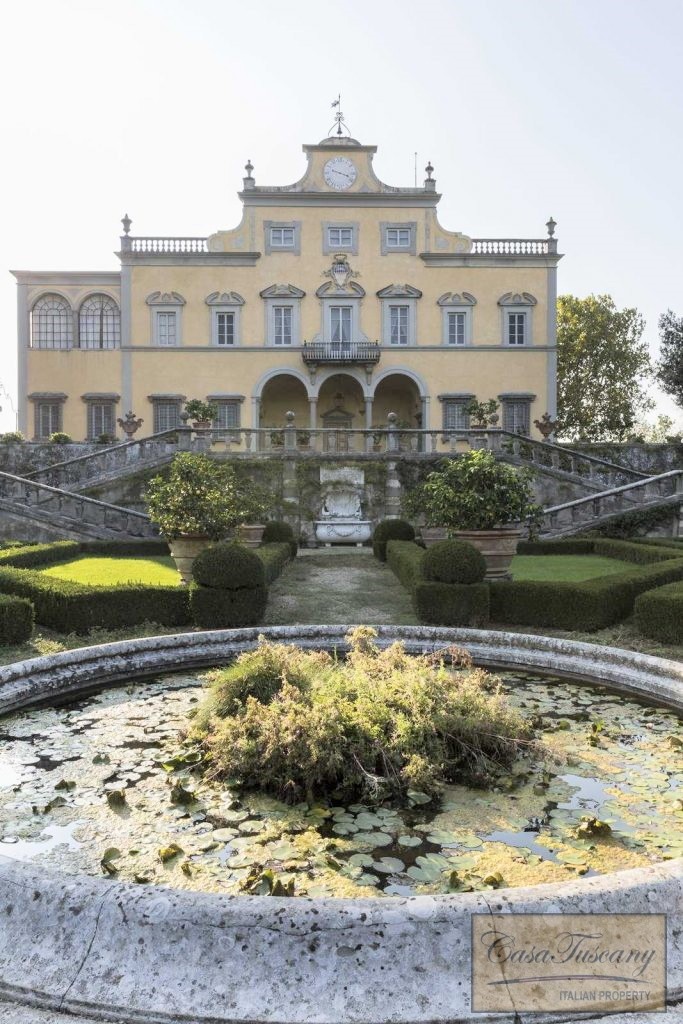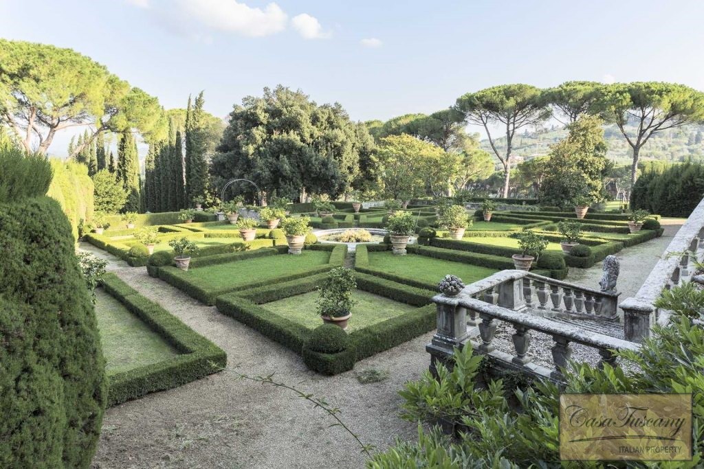 This spectacular 15th century building complex covers an area of approximately 27 hectares, and comprises the main villa as well as various other annexes and outbuildings including, a caretaker’s house, a chapel, a lemon-house, cellars , an olive house, garage and several agricultural buildings. Recently and beautifully renovated the estate offers 4,000 square meters of space in total, with 56 rooms, 13 bedrooms and 13 bathrooms. Accessed via an impressive wrought iron gate and a Cypress lined avenue, the villa is protected from the outside world by forest and surrounded by a delightful Italianate garden of roses, tall trees and symmetrical flower beds, designed by a famous British architect Cecil Pinsent. The property also features a tennis court with its own clubhouse and a pool.
