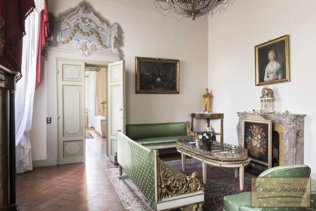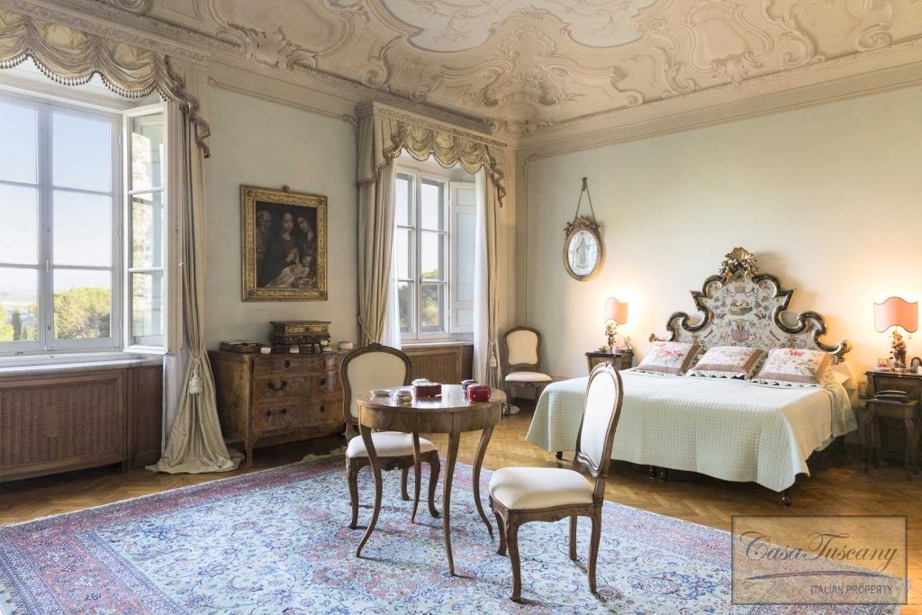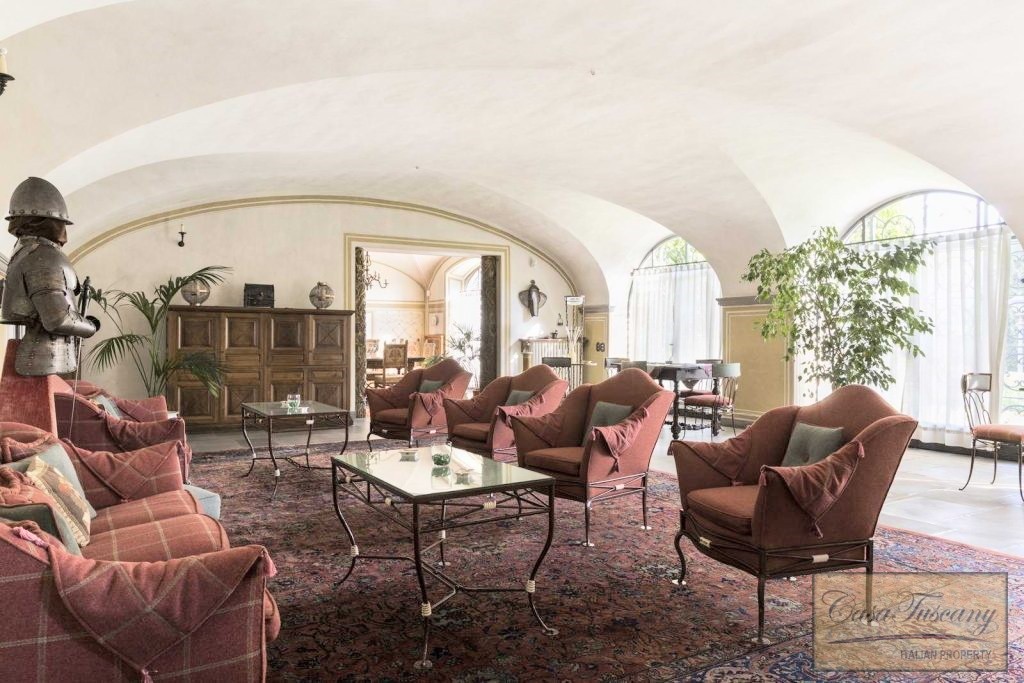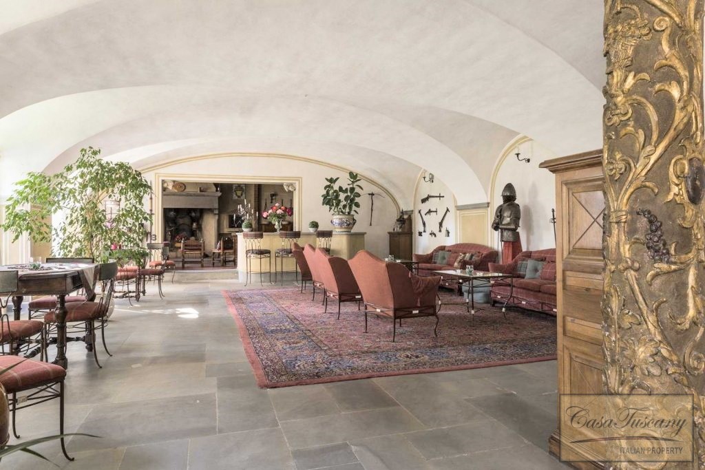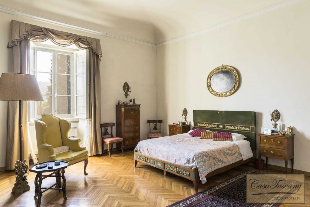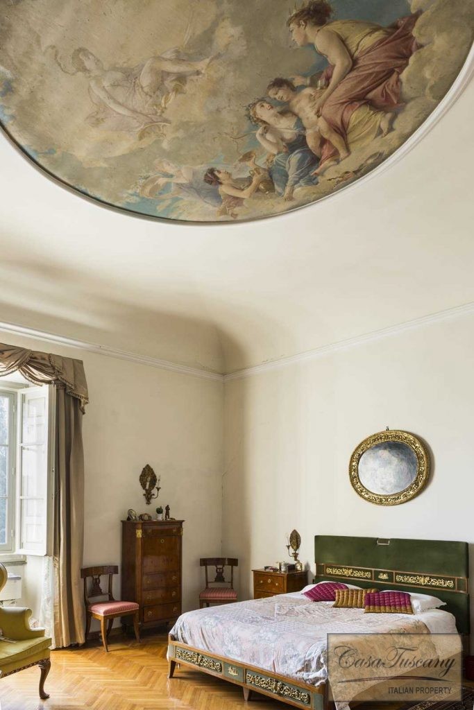 This spectacular 15th century building complex covers an area of approximately 27 hectares, and comprises the main villa as well as various other annexes and outbuildings including, a caretaker’s house, a chapel, a lemon-house, cellars , an olive house, garage and several agricultural buildings. Recently and beautifully renovated the estate offers 4,000 square meters of space in total, with 56 rooms, 13 bedrooms and 13 bathrooms. Accessed via an impressive wrought iron gate and a Cypress lined avenue, the villa is protected from the outside world by forest and surrounded by a delightful Italianate garden of roses, tall trees and symmetrical flower beds, designed by a famous British architect Cecil Pinsent. The property also features a tennis court with its own clubhouse and a pool.