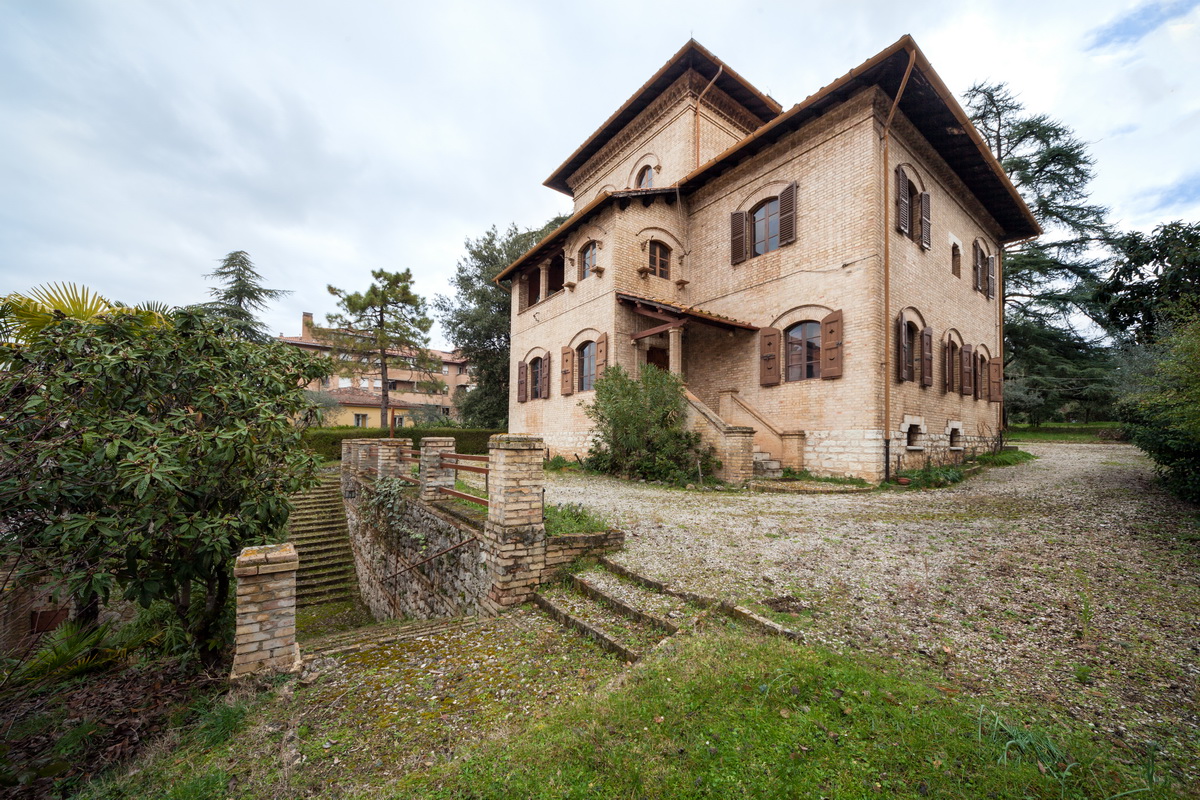 Historic Villa for Sale in Spoleto. This 20th-century villa is in the heart of the beautiful town and cultural centre of Spoleto, two minutes away from Piazza Garibaldi and all the main services and shops. Escalators and moving walkways give access to the higher part of town, which is 5 minutes away on foot. Todi, Assisi and Perugia with its airport are a 45 minute drive, whilst Orvieto, Rome and the coast can be reached in 1.5 hours.