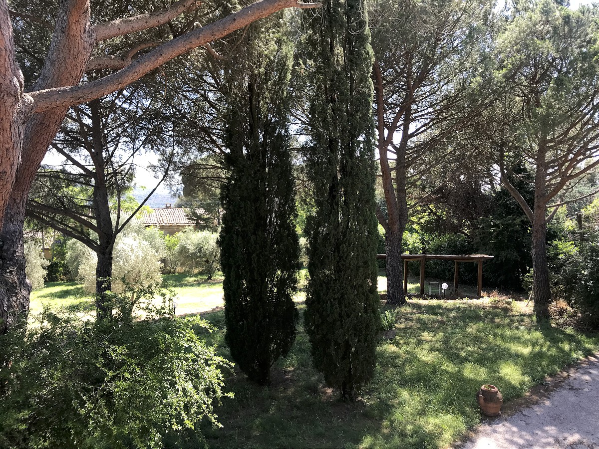 The property includes a charming enclosed garden with panoramic terrace, pine forest and an olive grove.