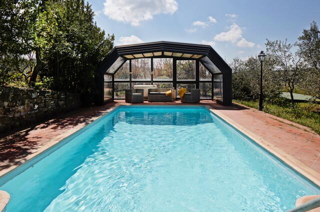 In the Tuscan countryside, 1.9 miles from Gaiole In Chianti, lies this hamlet with several buildings and a total of 25 bedrooms furnished in the typical Tuscan style.