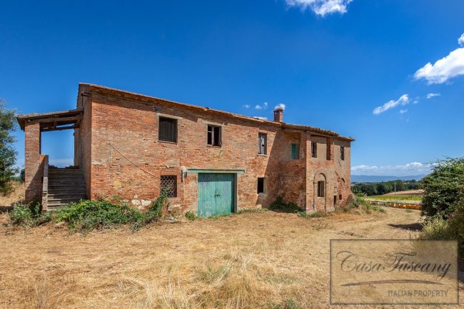 The farmhouse is accessed via a white road and is already connected to mains electricity and water but requires full restoration.