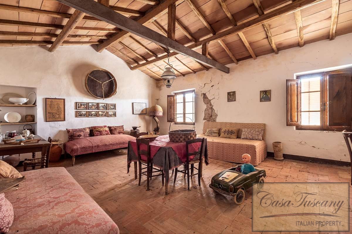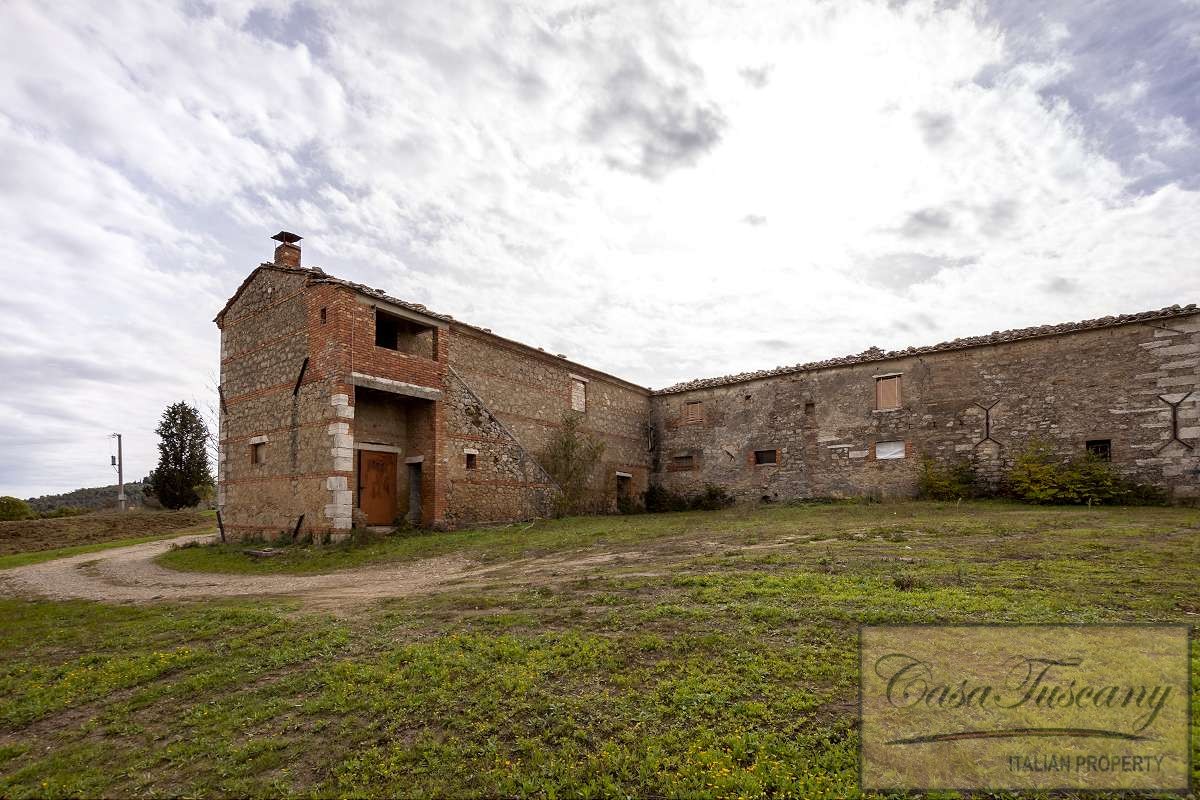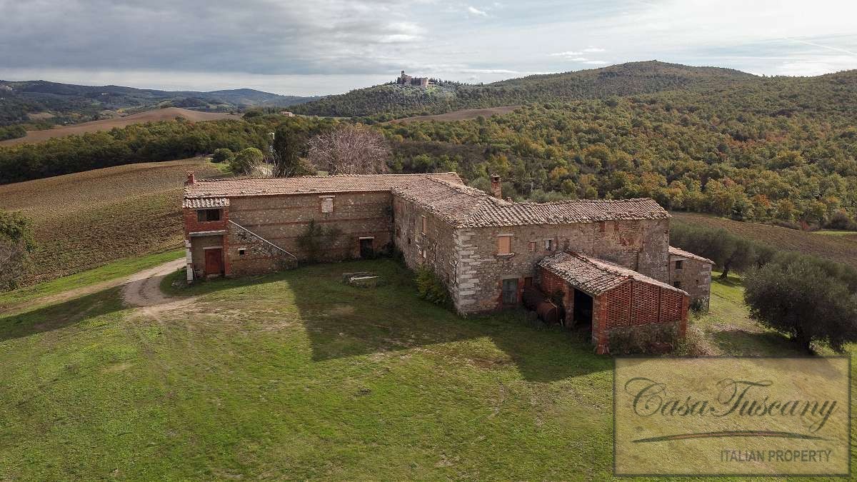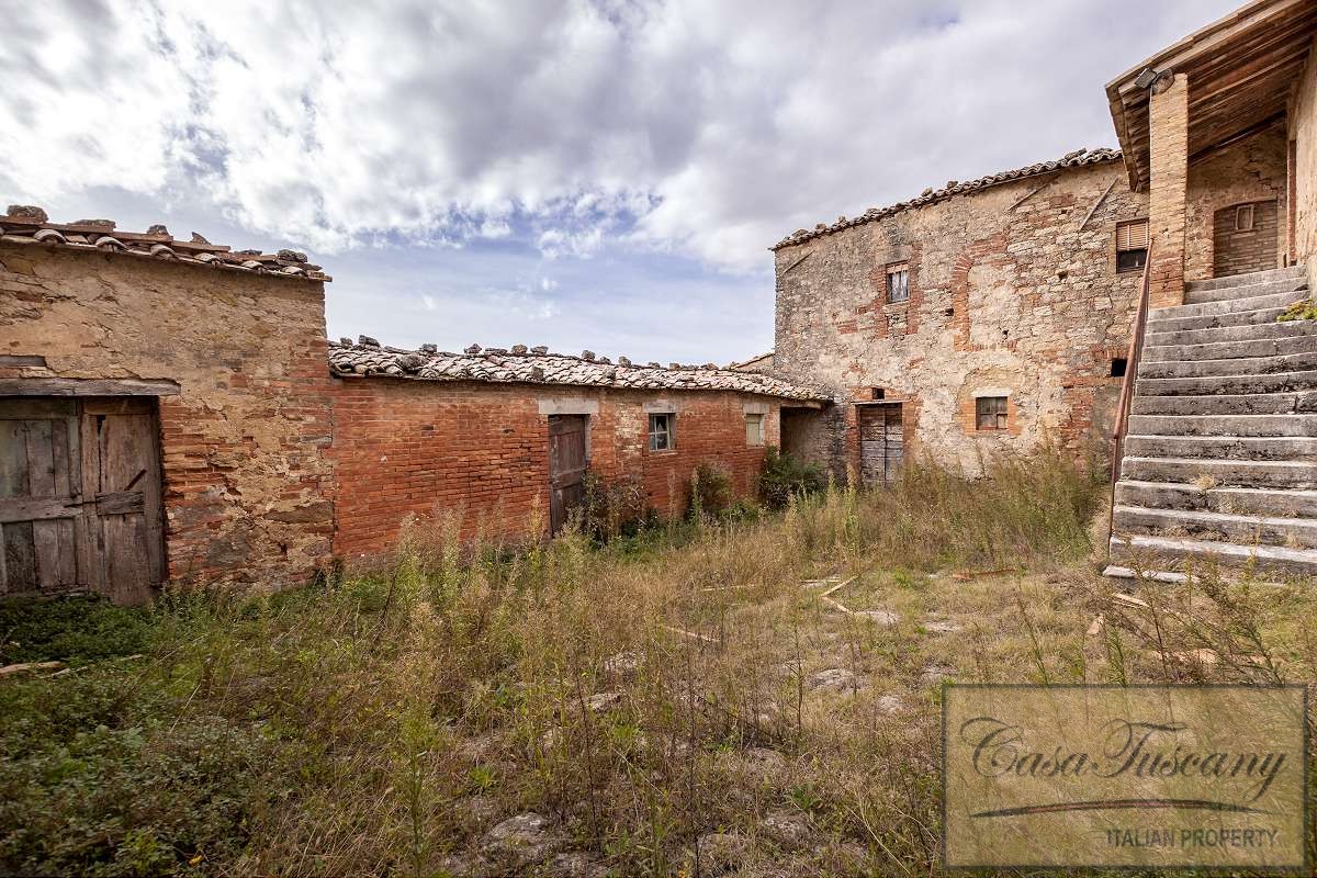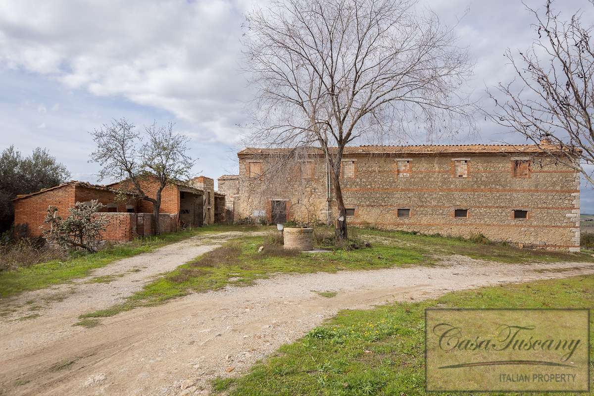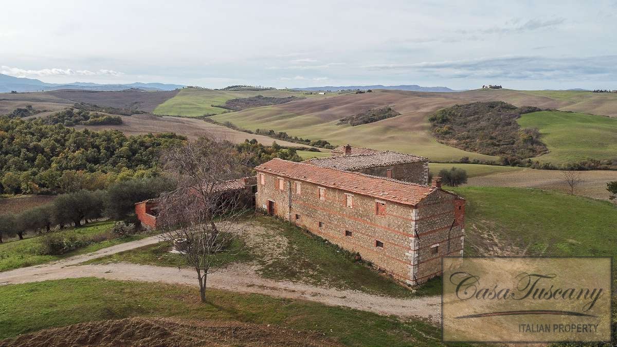 Large Val d’Orcia Property to Restore. Beautiful farmhouse in need of total restoration nestled in the rolling hills of the Val d’Orcia, just a few kilometres from Pienza.