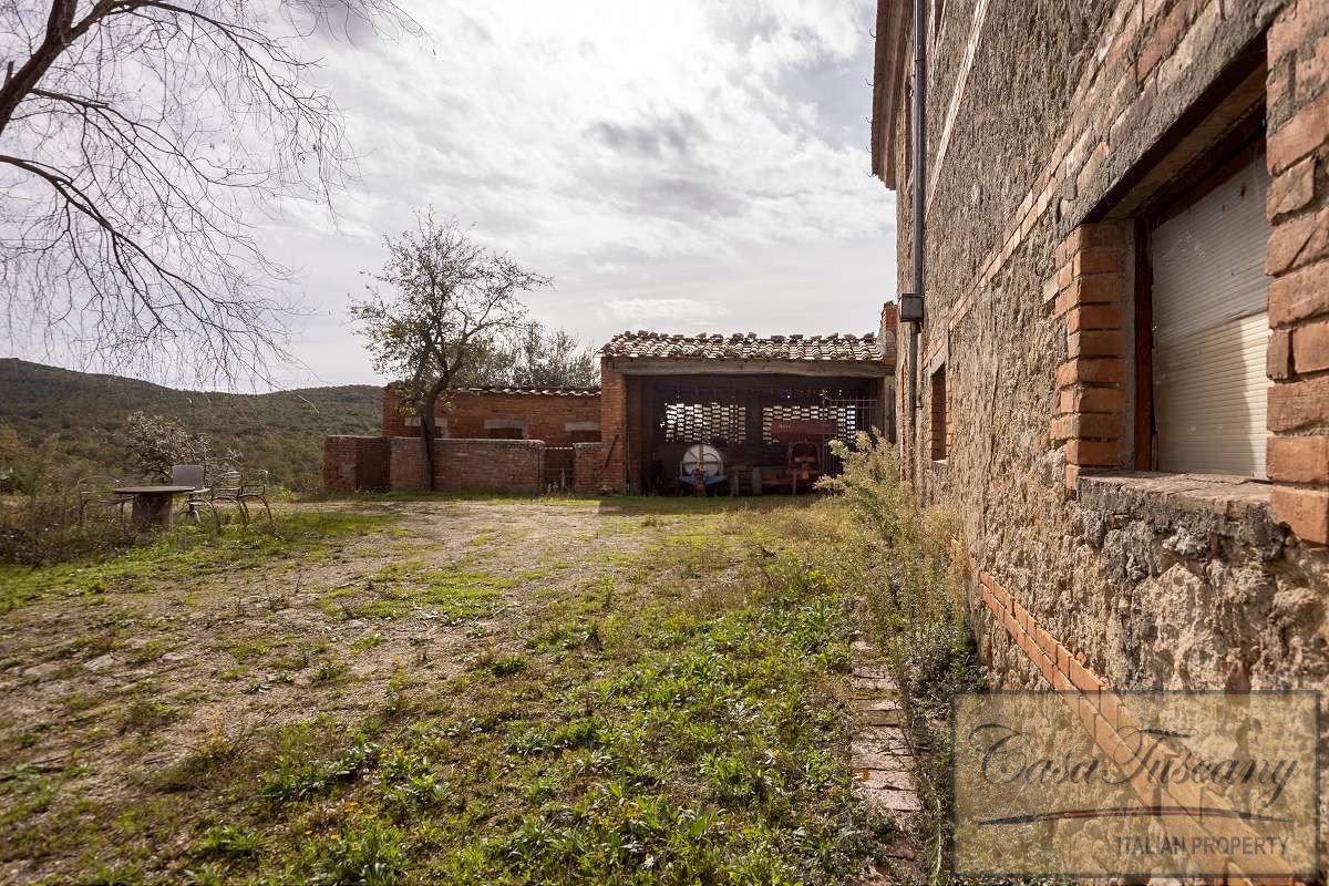 The large farmhouse is surrounded by 73 hectares of land consisting of part arable land, olive groves and woods.