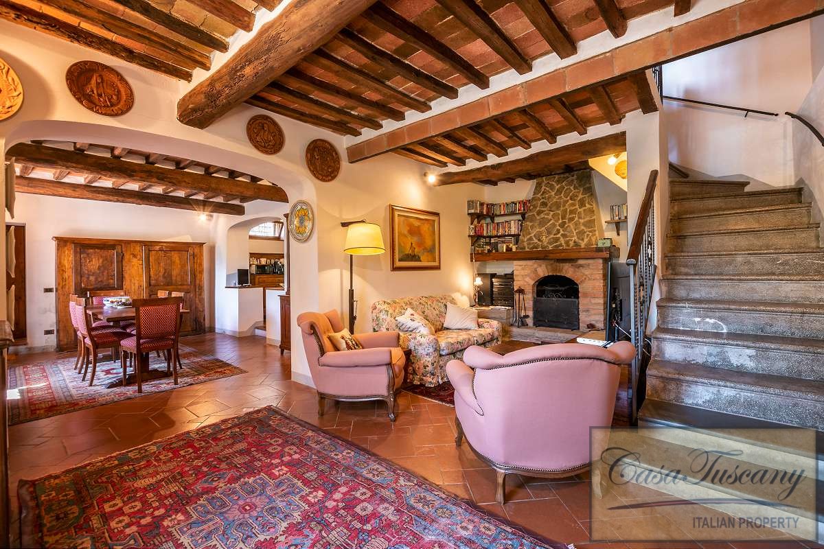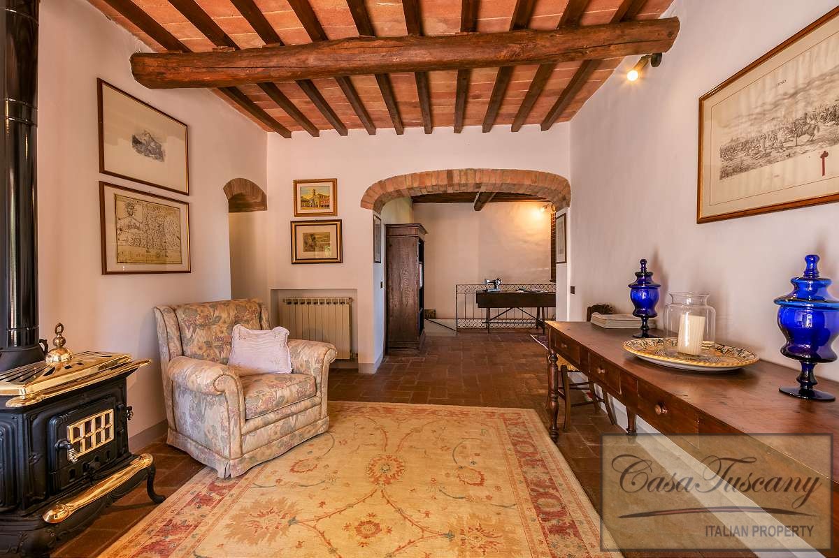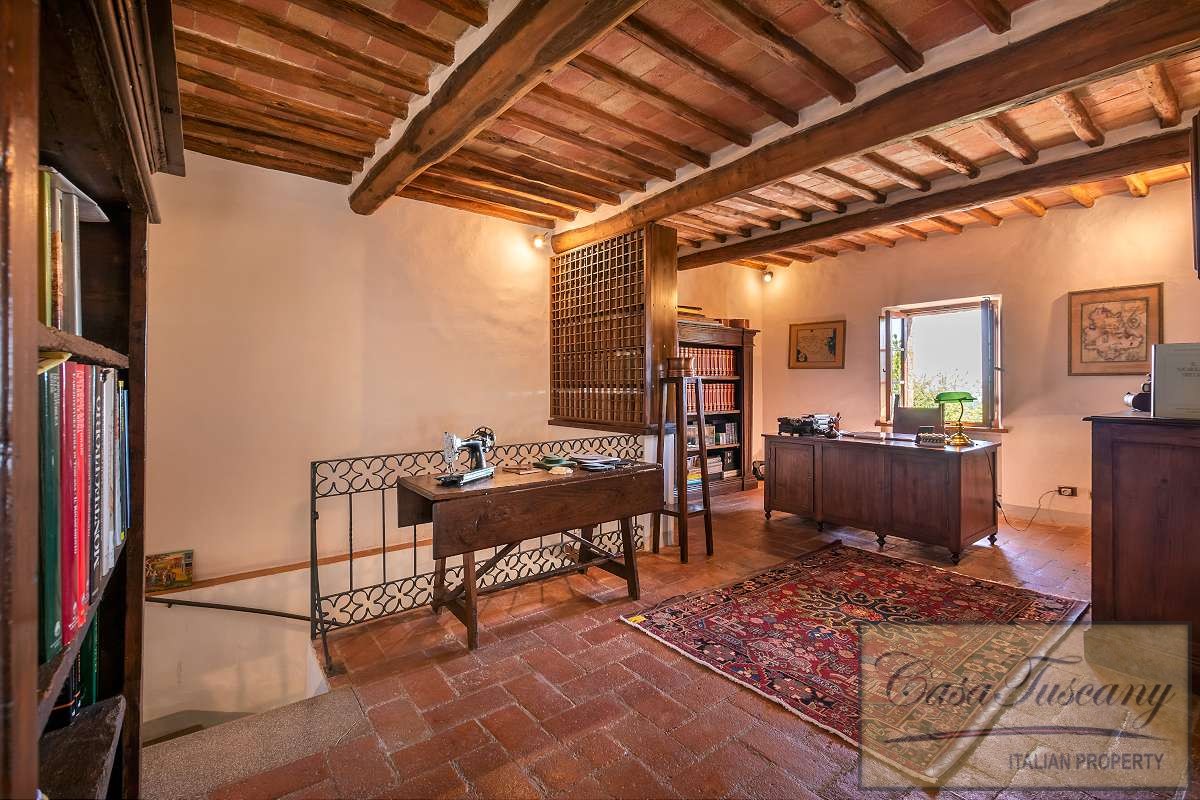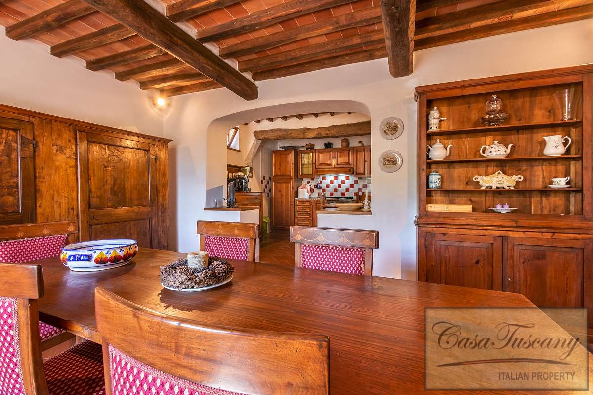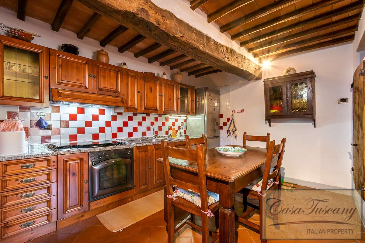 Renovated in the 90s, the 3 storey property is in good condition and features the typical characteristics of the Tuscan style, with terracotta floors, exposed wooden beams and a stone façade.
