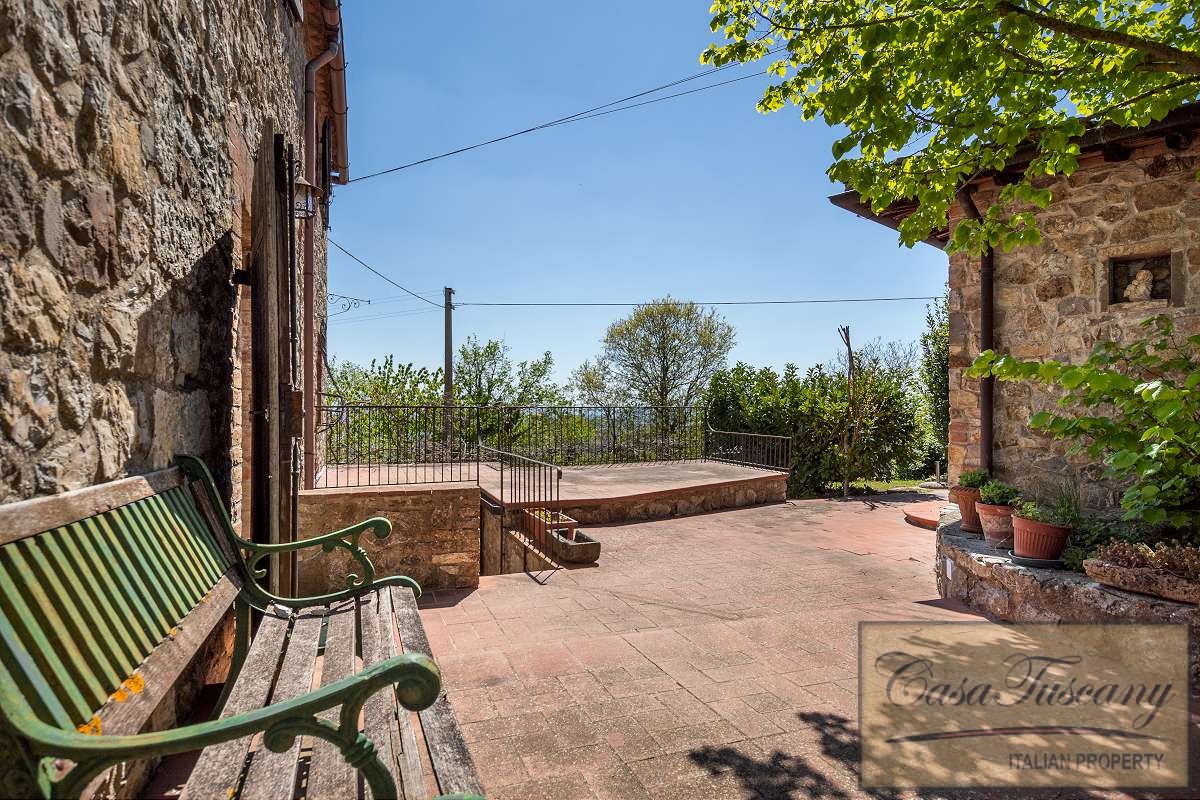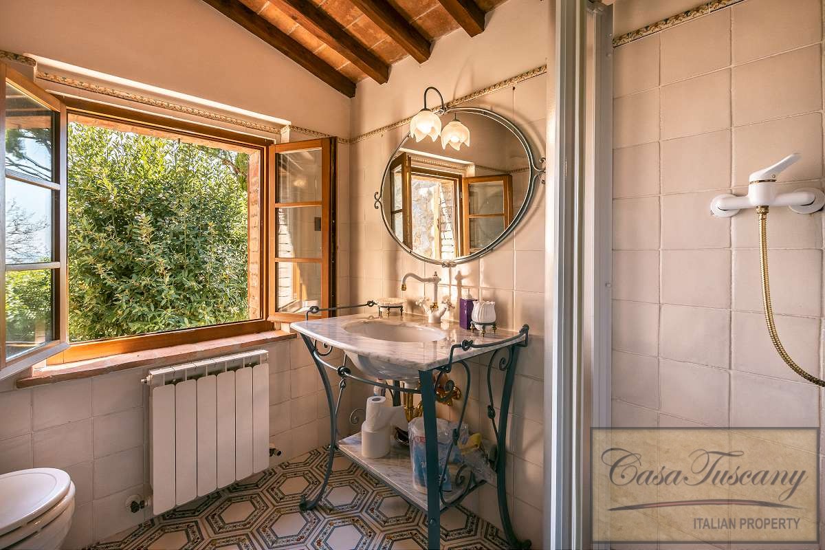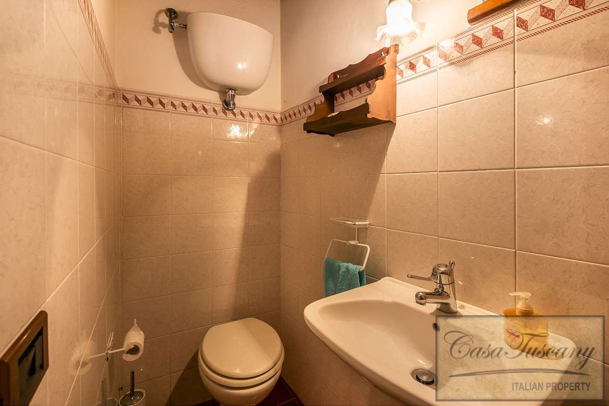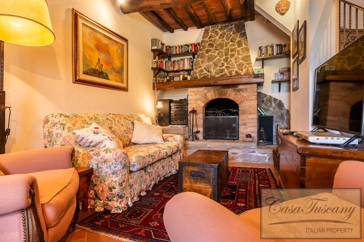 Renovated in the 90s, the 3 storey property is in good condition and features the typical characteristics of the Tuscan style, with terracotta floors, exposed wooden beams and a stone façade.