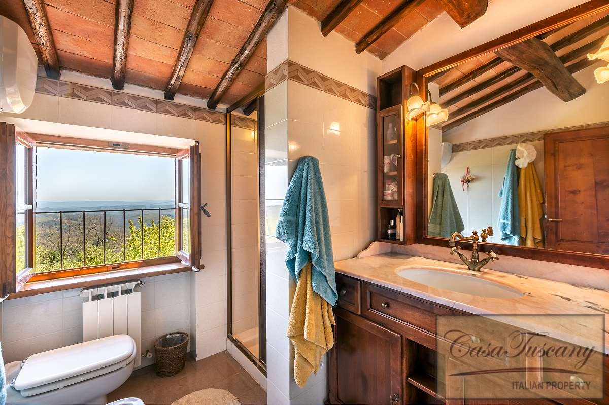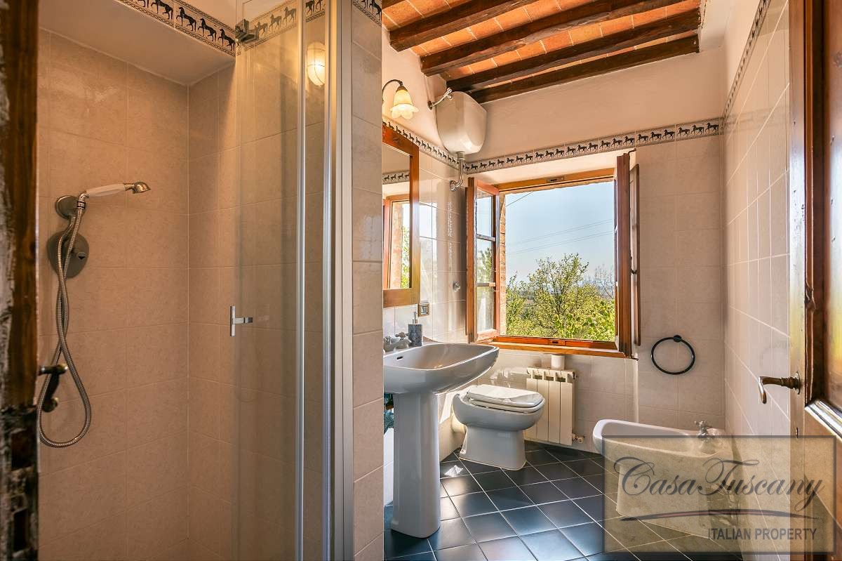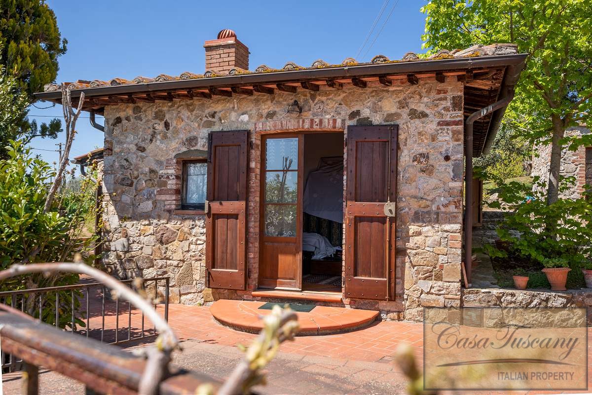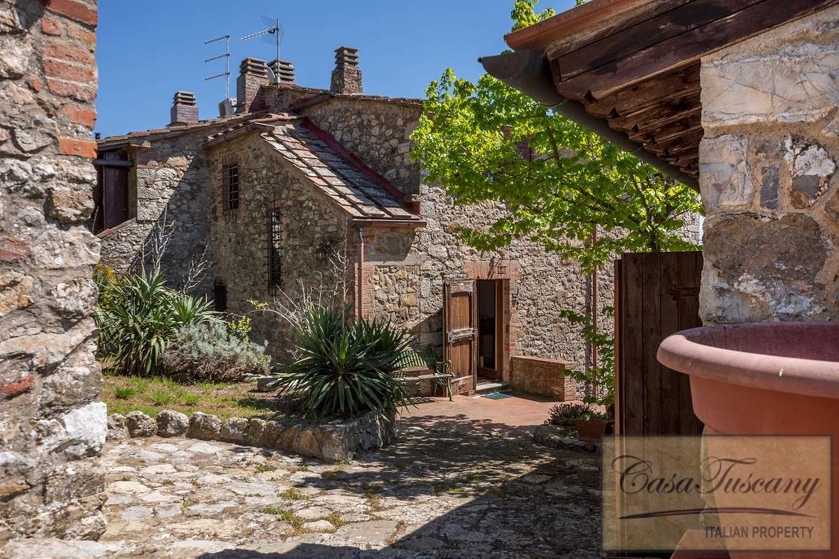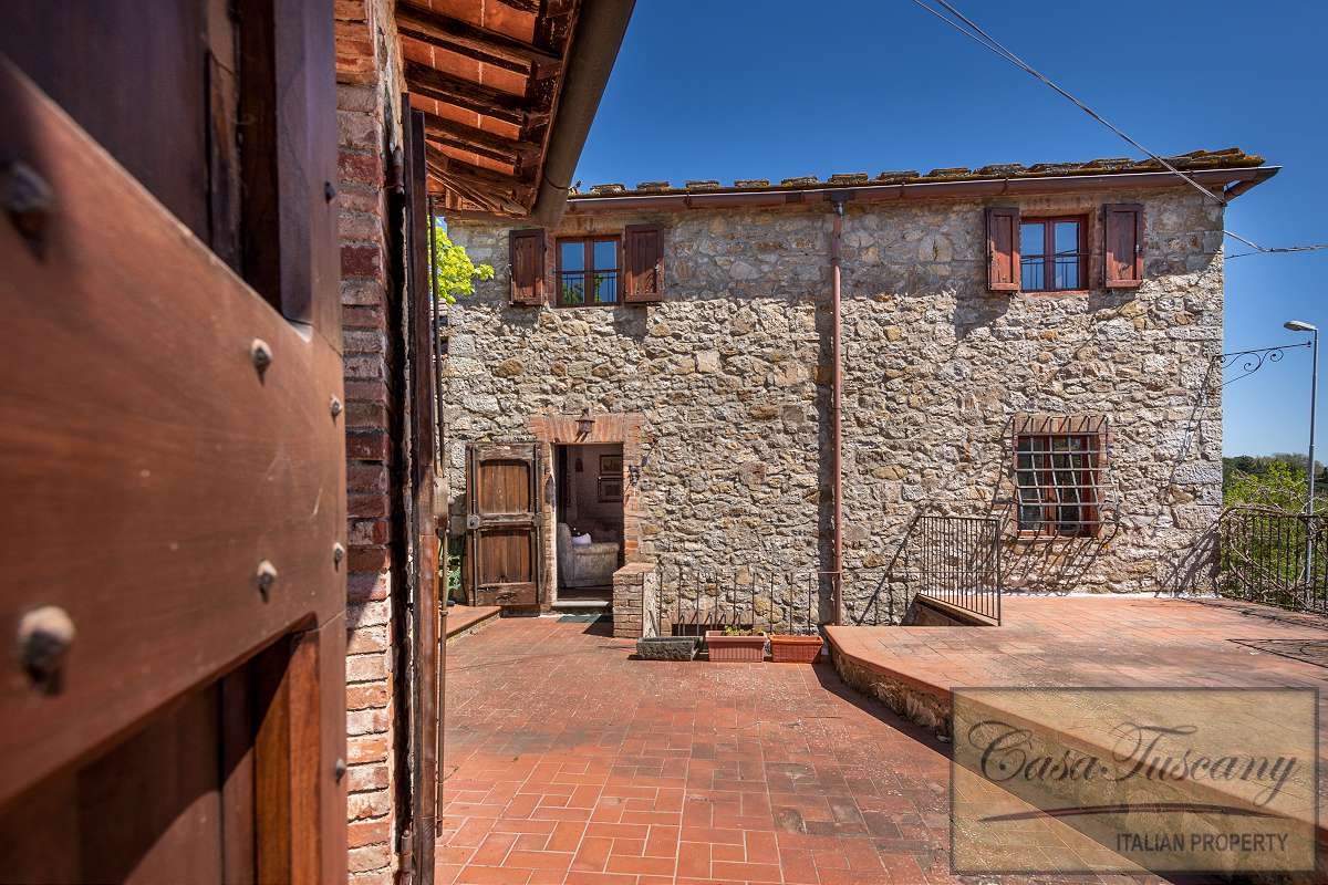 Renovated in the 90s, the 3 storey property is in good condition and features the typical characteristics of the Tuscan style, with terracotta floors, exposed wooden beams and a stone façade.