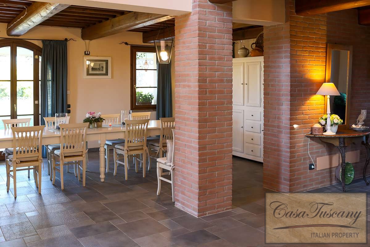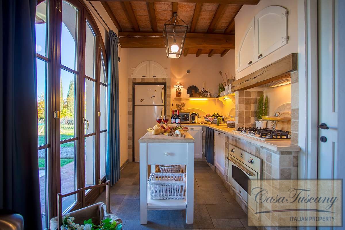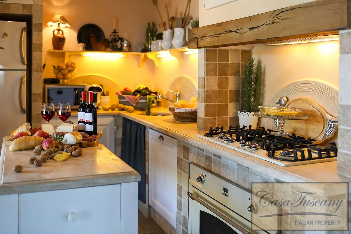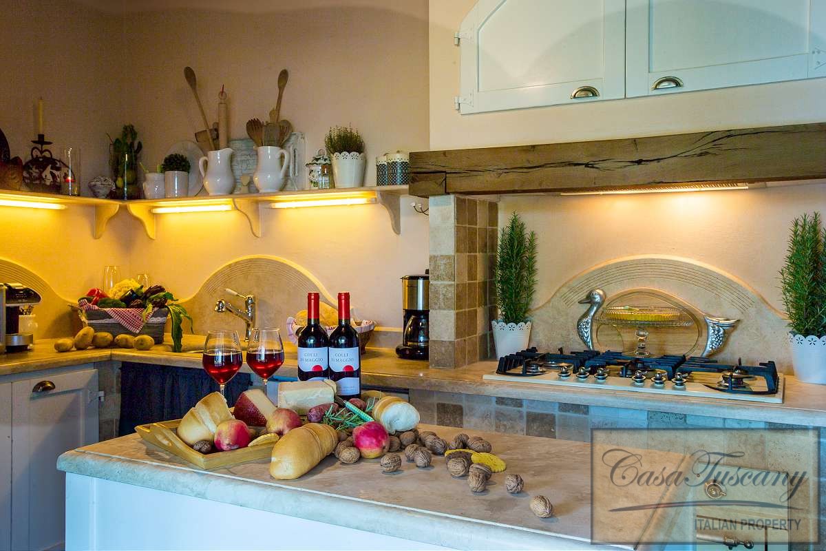 The villa dates back to the 1800s and has been renovated in typical Tuscan style with features such as cotto floors, chestnut beams and stone walls.