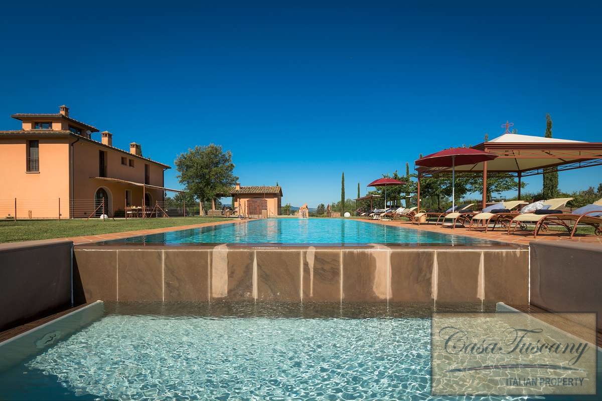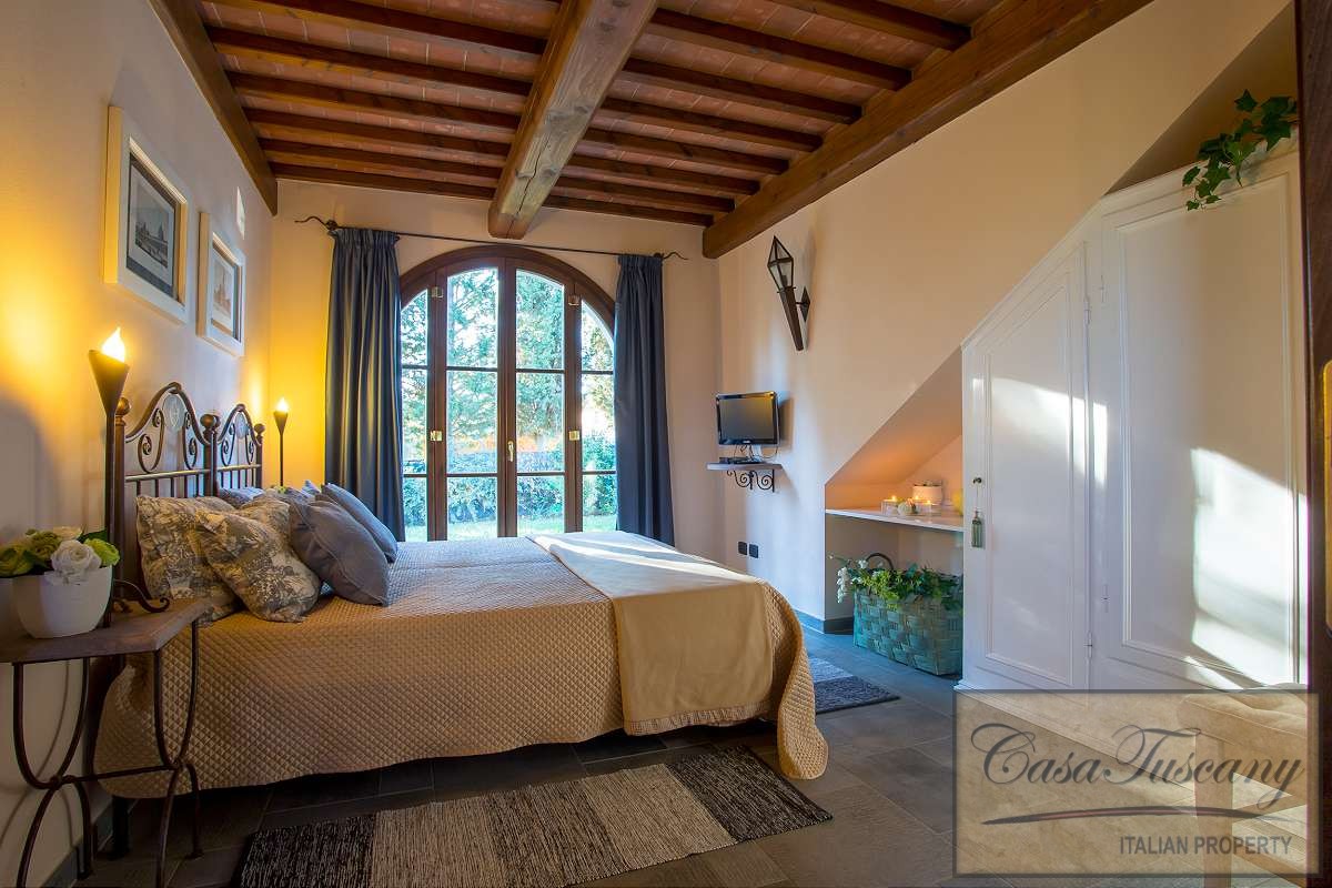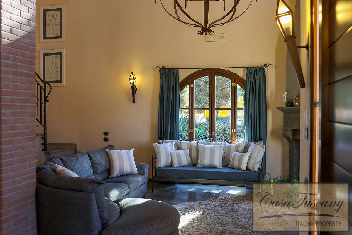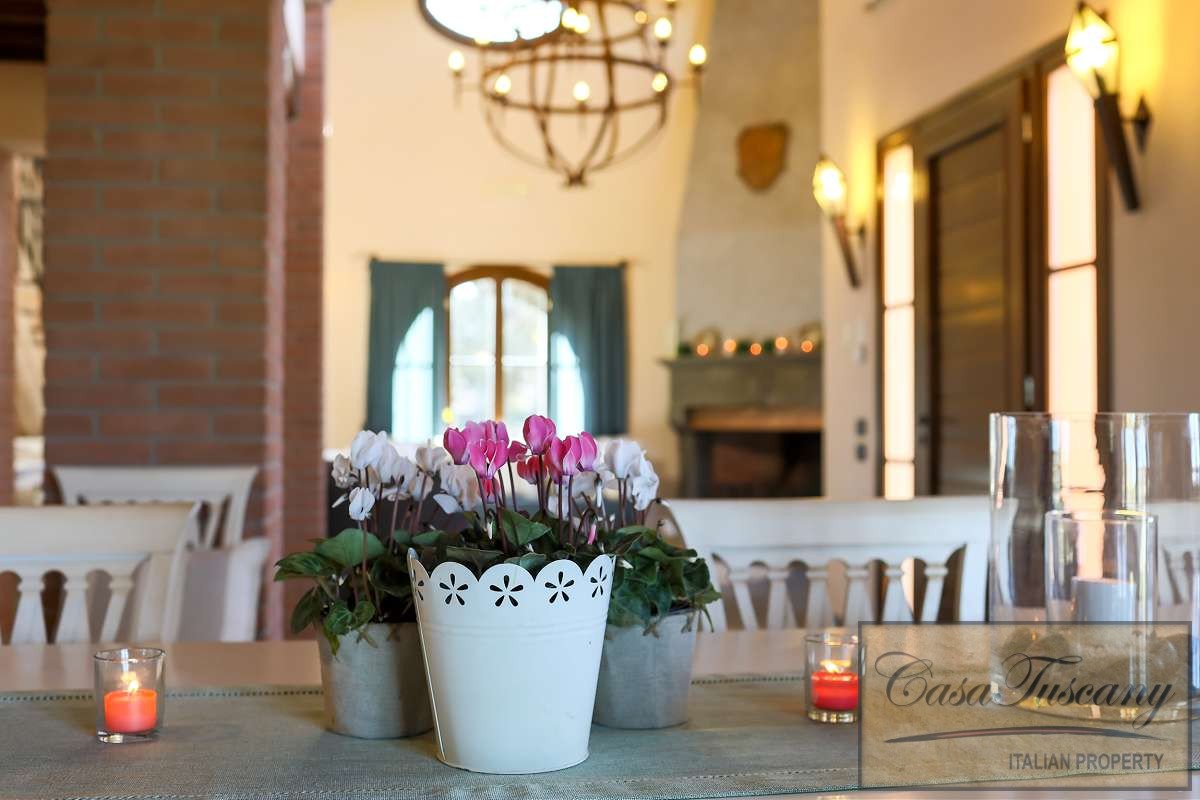 The villa dates back to the 1800s and has been renovated in typical Tuscan style with features such as cotto floors, chestnut beams and stone walls.