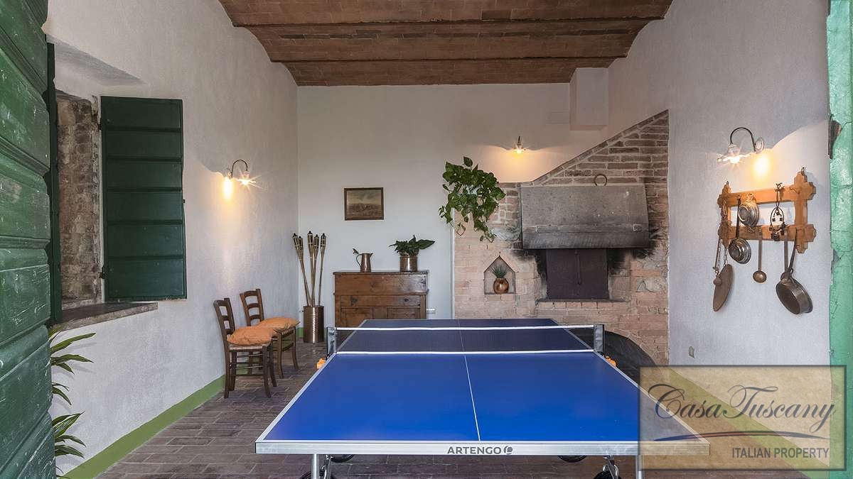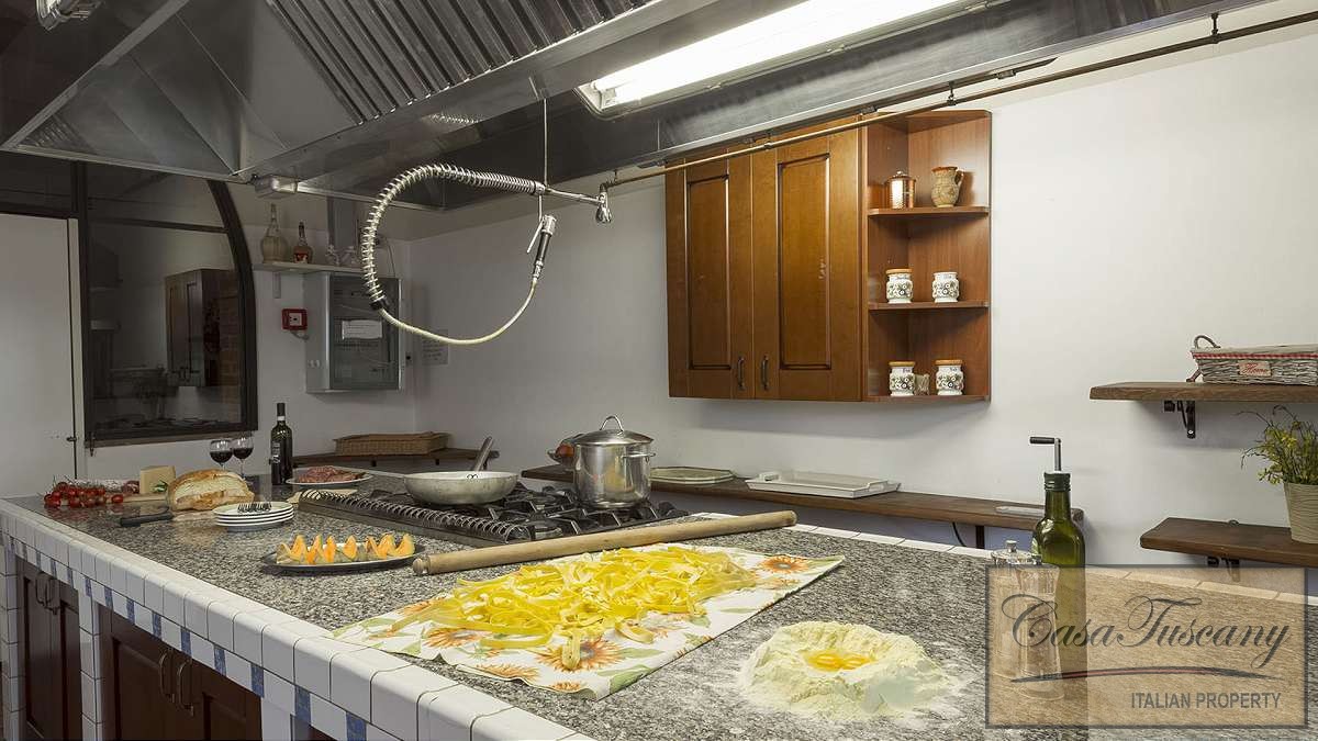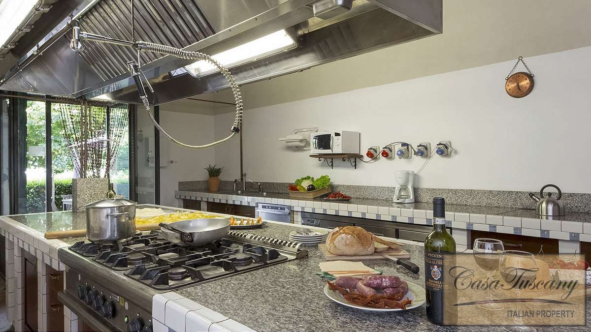 The main villa is spread over three levels and has handmade terracotta floors, marble, travertine, and exposed beams. It also has large and comfortable rooms on the ground floor with a large professional kitchen, cellars, games area and a room with an old wood-burning oven, the first and second floors are used as a sleeping area with comfortable bedrooms each with its own bathroom.