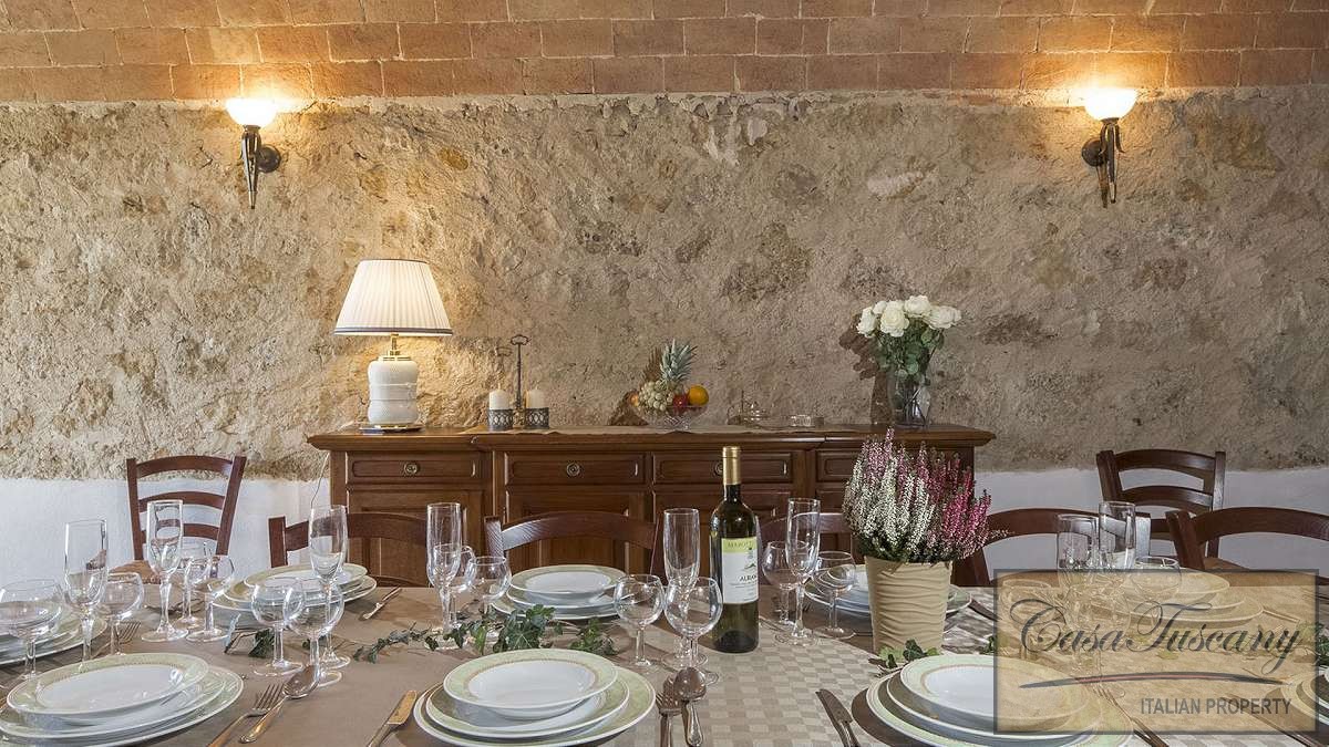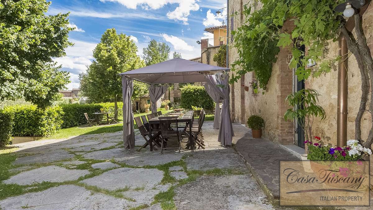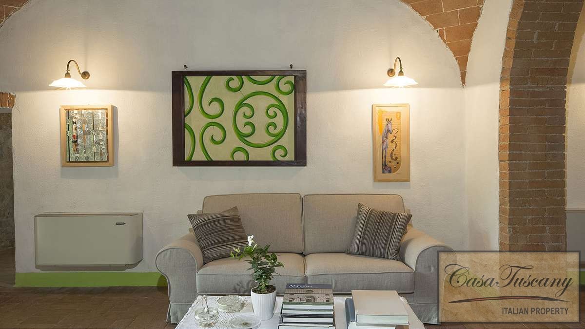 The property, despite being located close to the historic and medieval core of the village enjoys all the tranquillity and privacy of typical country houses as it overlooks the splendid Tuscan countryside with a privileged view of the beautiful panorama of Val d’Orcia, Montalcino and the best that the Tuscan countryside can offer.