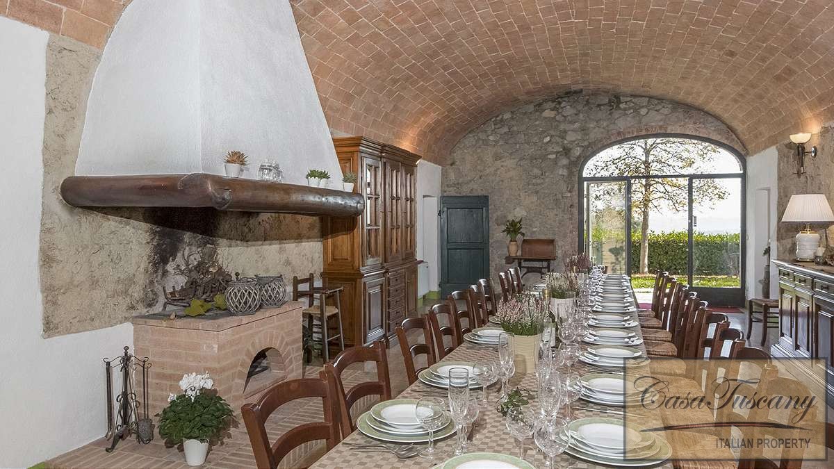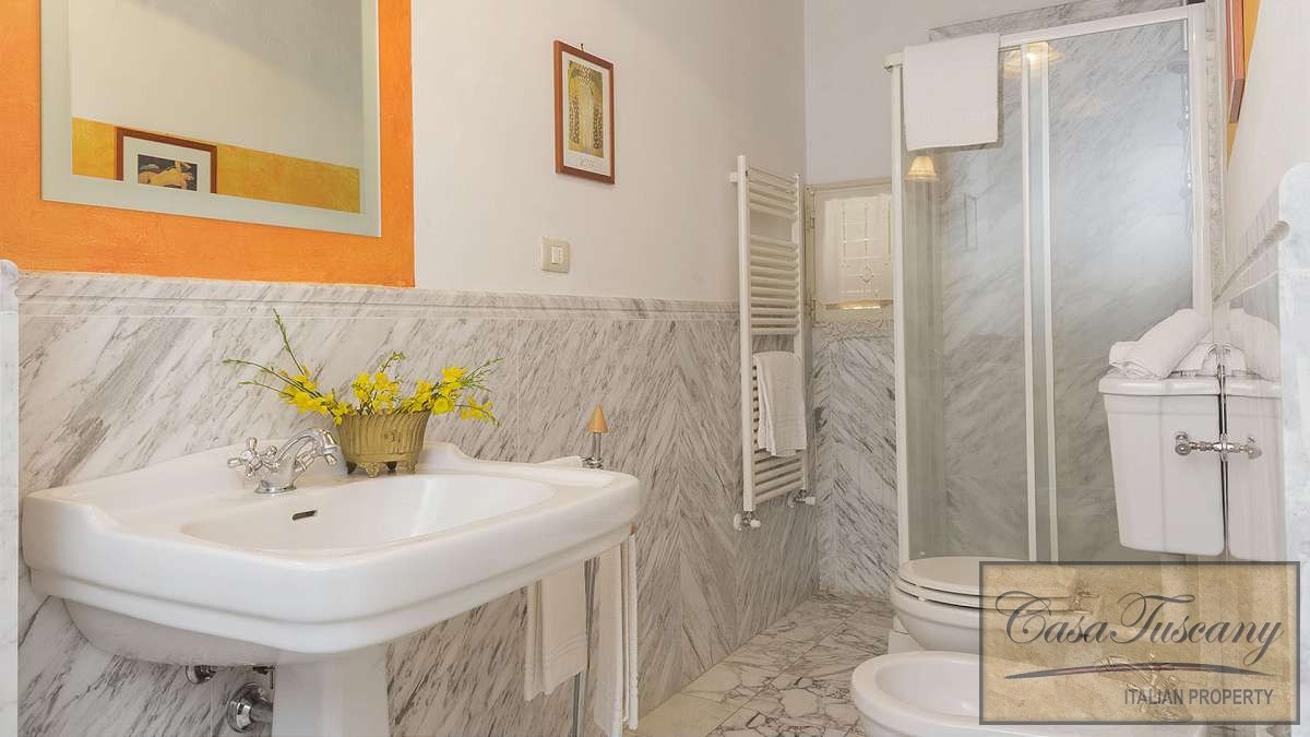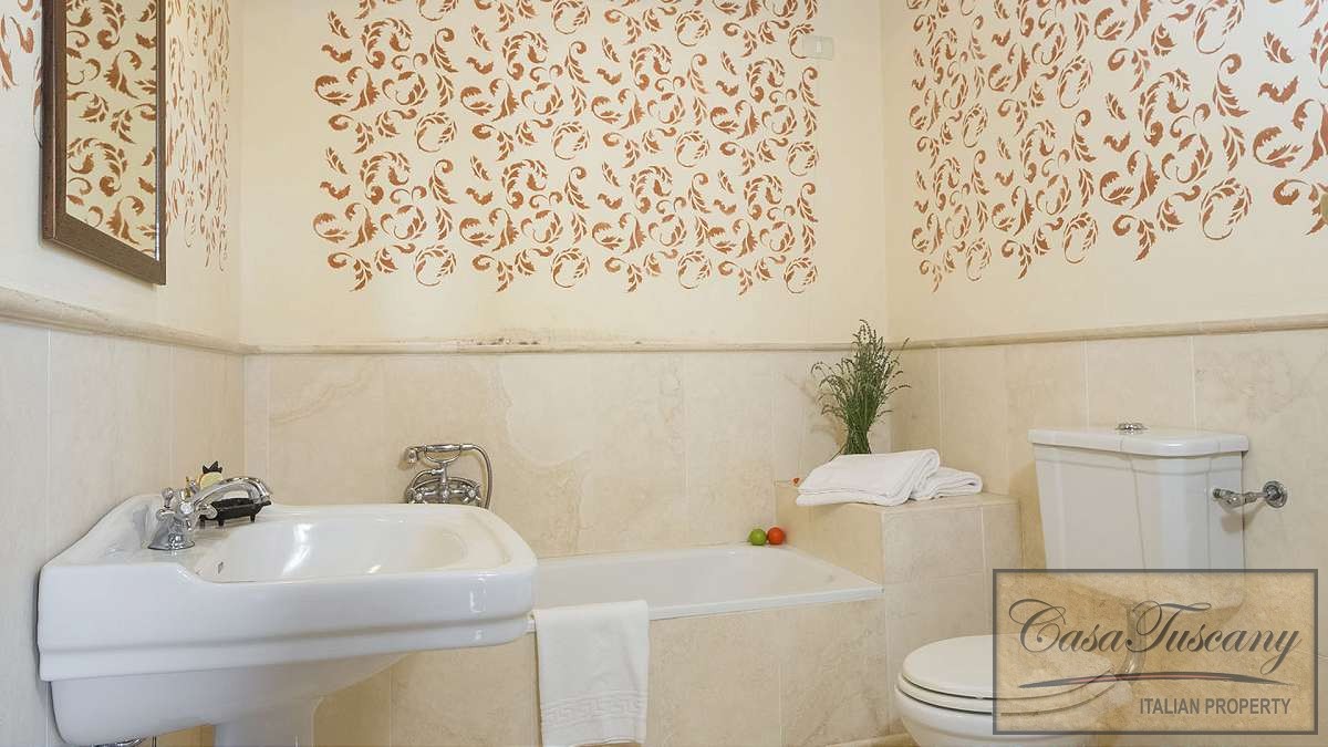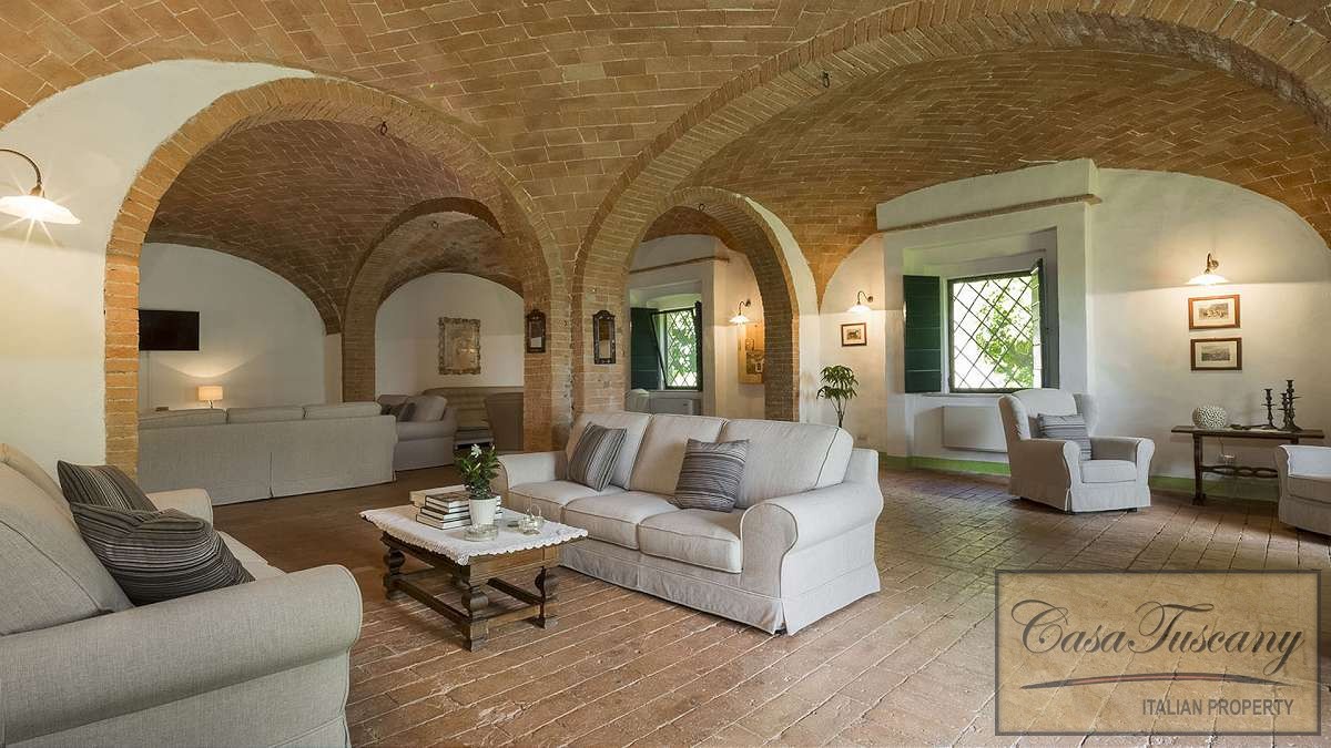 The annex of the villa of about 100 sqm is used as the home of the current owners, also perfectly restored in Tuscan style with solid wood floors, handmade terracotta, beams, and marble details.