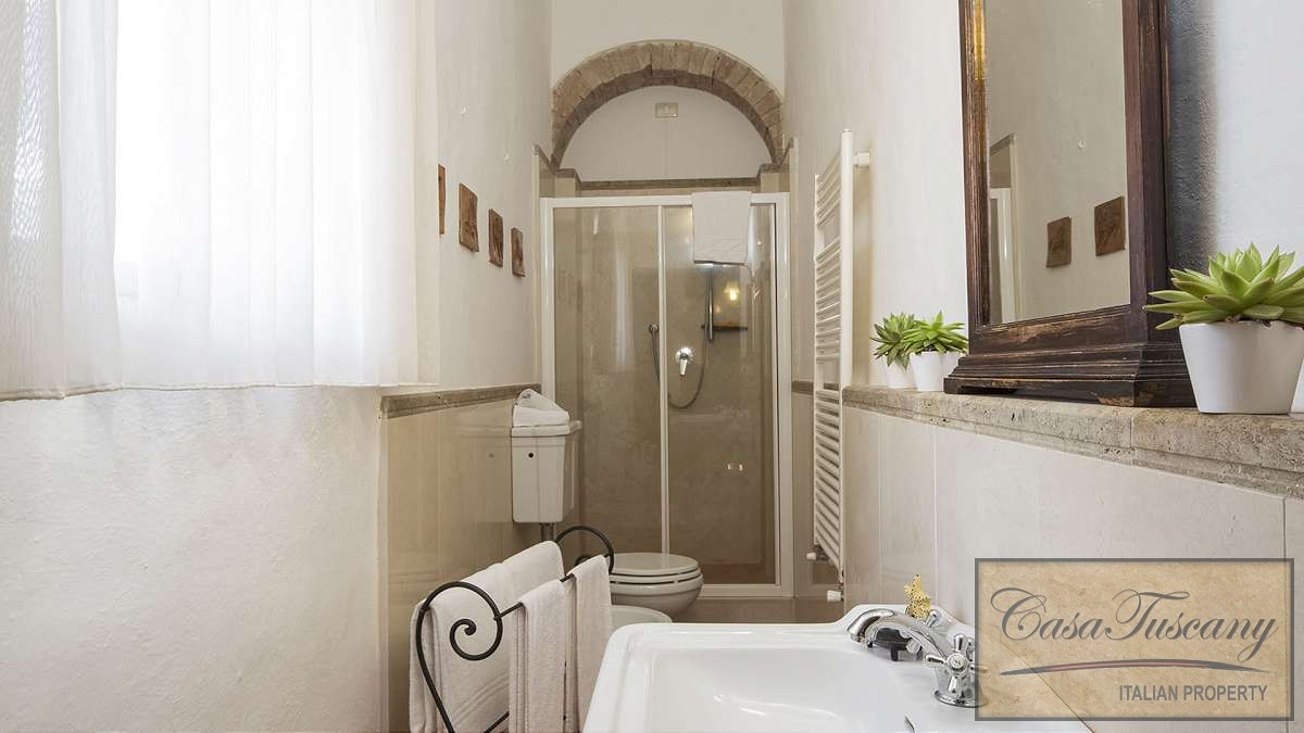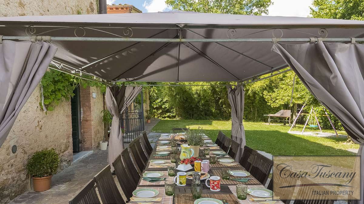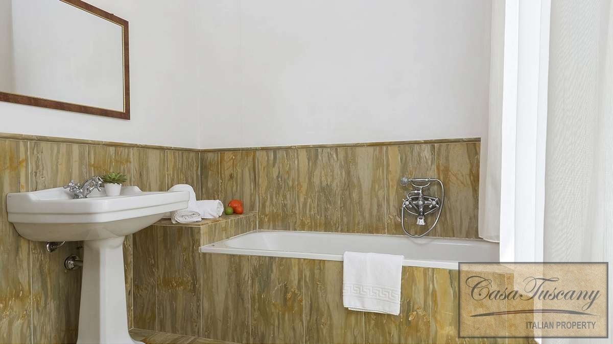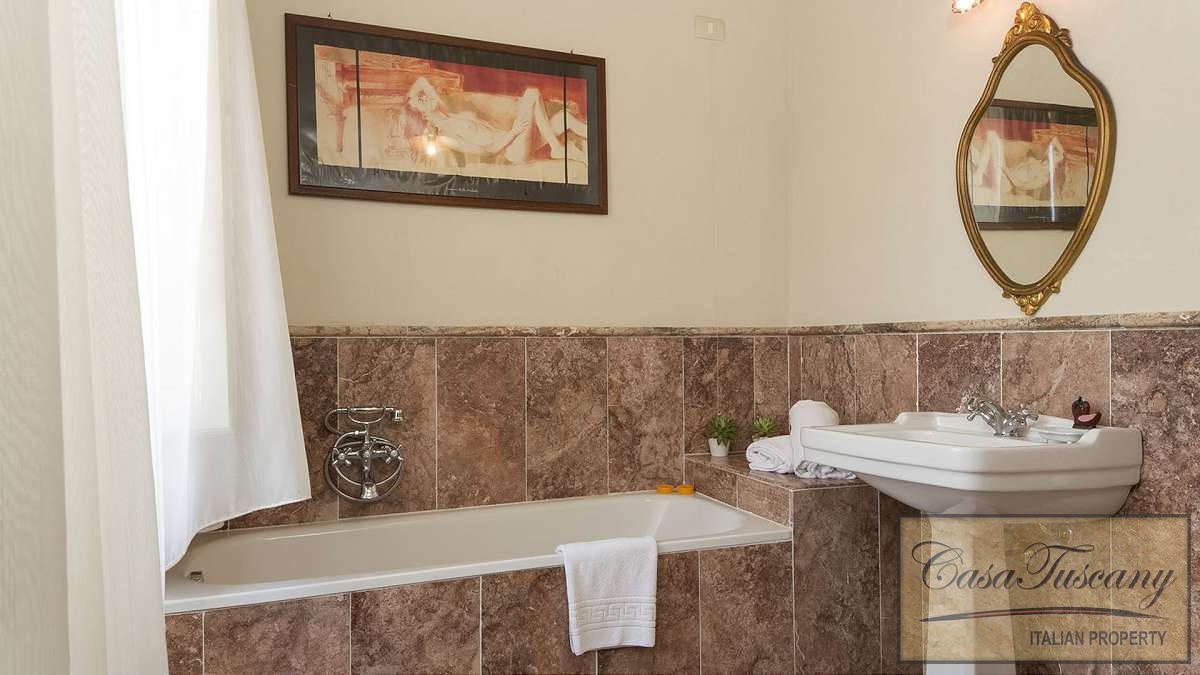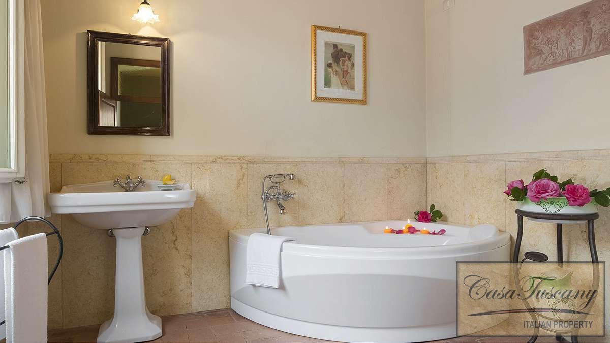 The annex of the villa of about 100 sqm is used as the home of the current owners, also perfectly restored in Tuscan style with solid wood floors, handmade terracotta, beams, and marble details.