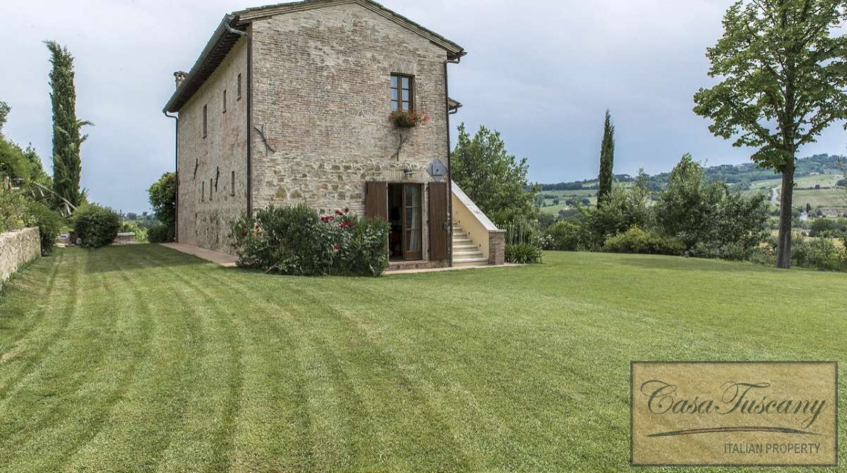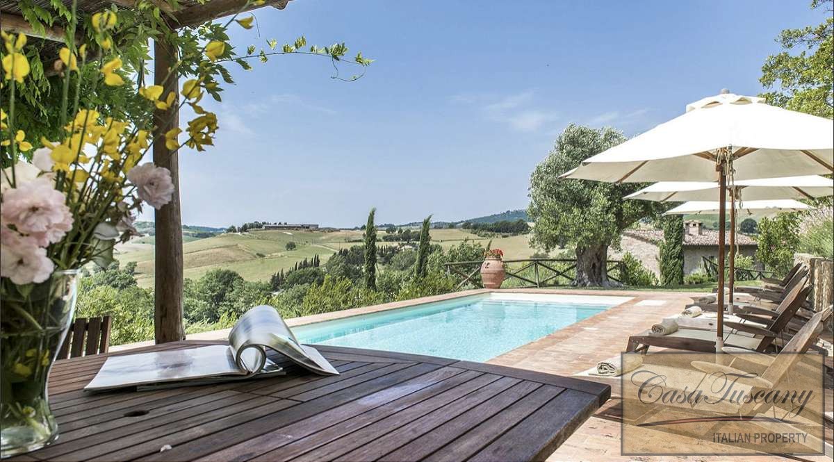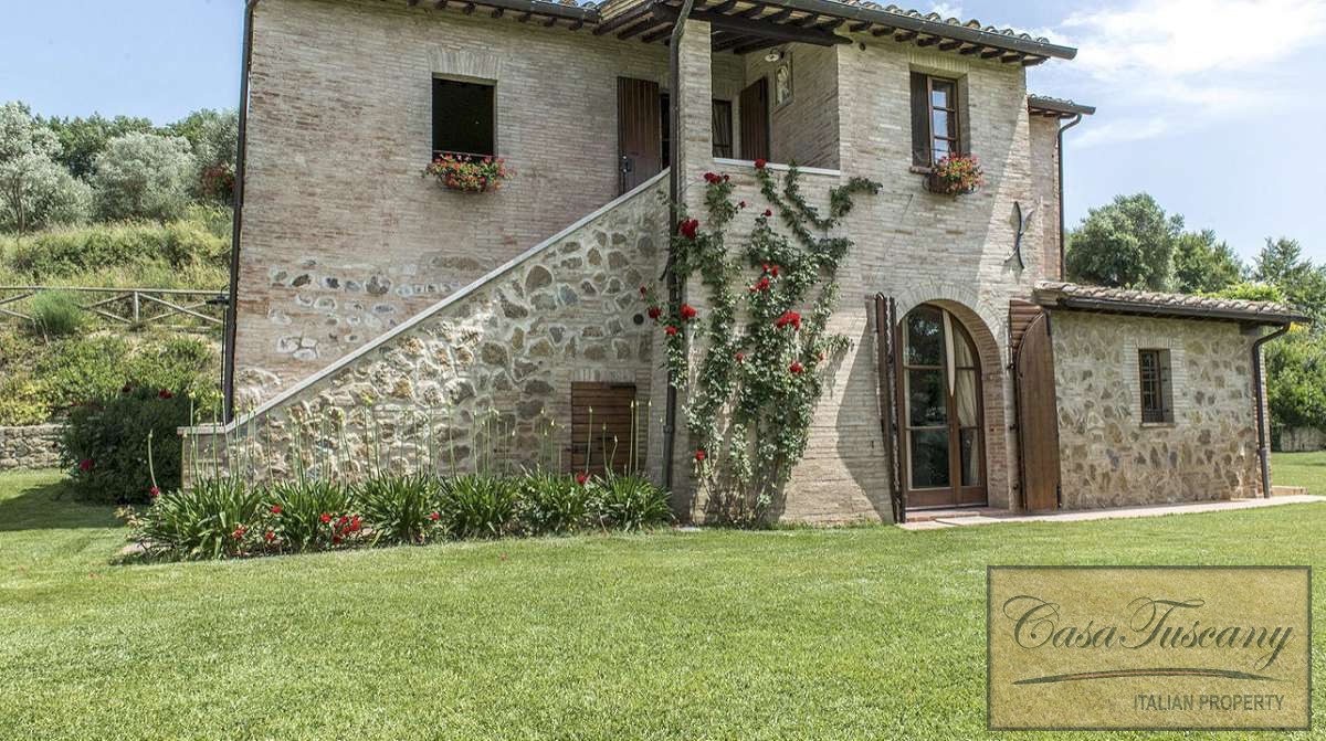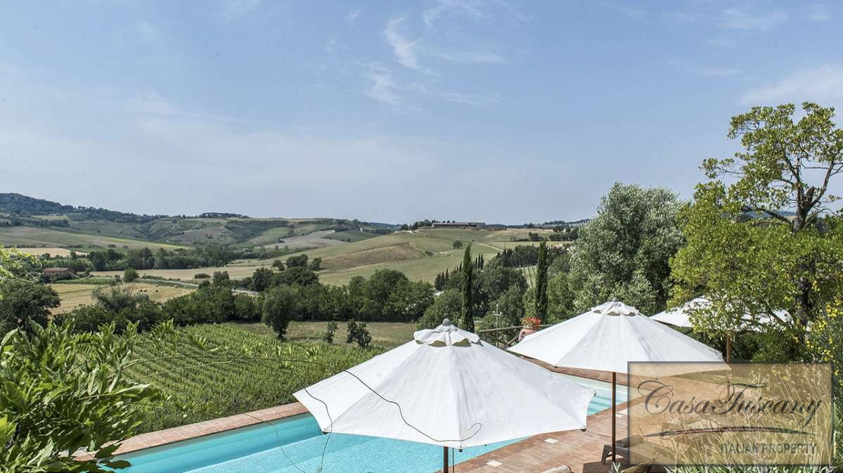 In a panoramic position with wonderful views over the hills of Montepulciano and Montefollonico is this 2 storey Tuscan farmhouse with pool and land for sale.