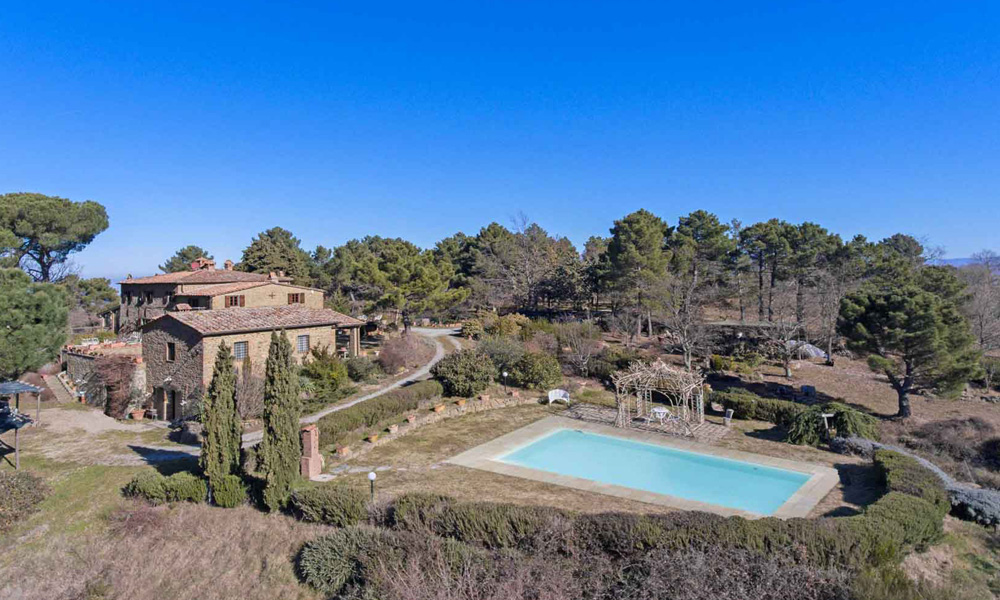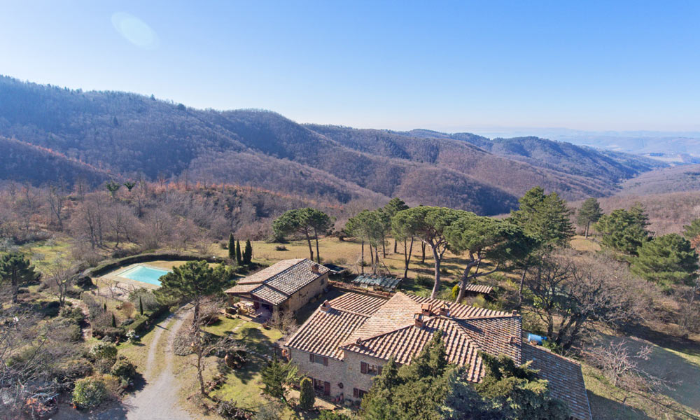 The property enjoys views of the Chianti hills, with the Sienese territory on one side and Valdarno’s on the other. The surrounding land is rich with vineyards, olive trees and fir trees.