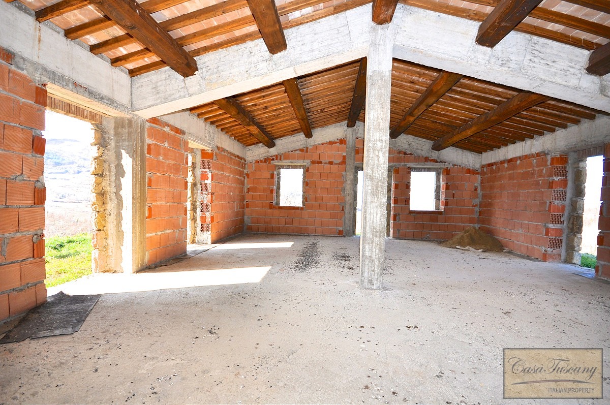 The house measures 140 sqm and has been completely rebuilt on the same site as the original farmhouse. Currently the building is in the finishing stages that will allow the buyer to finish it to individual taste.