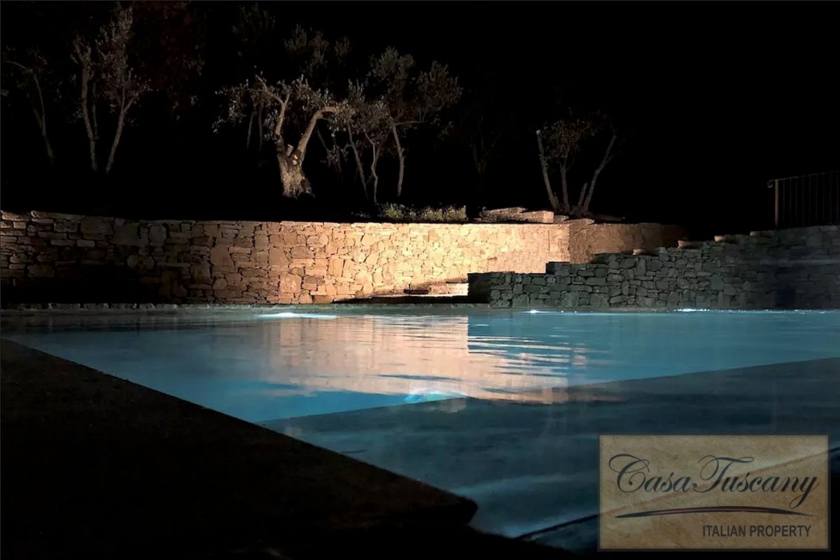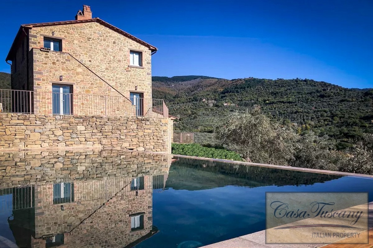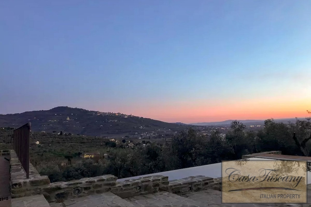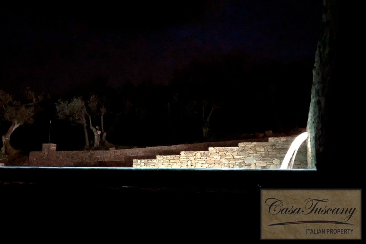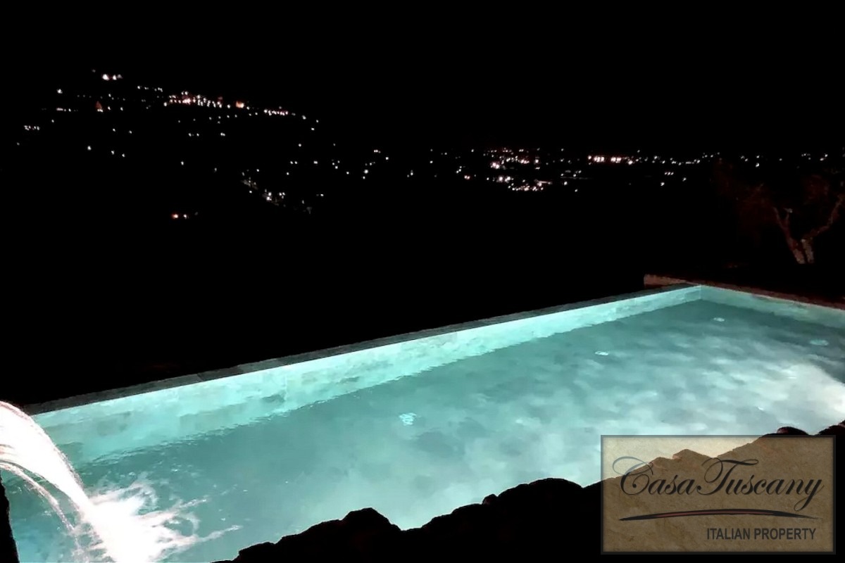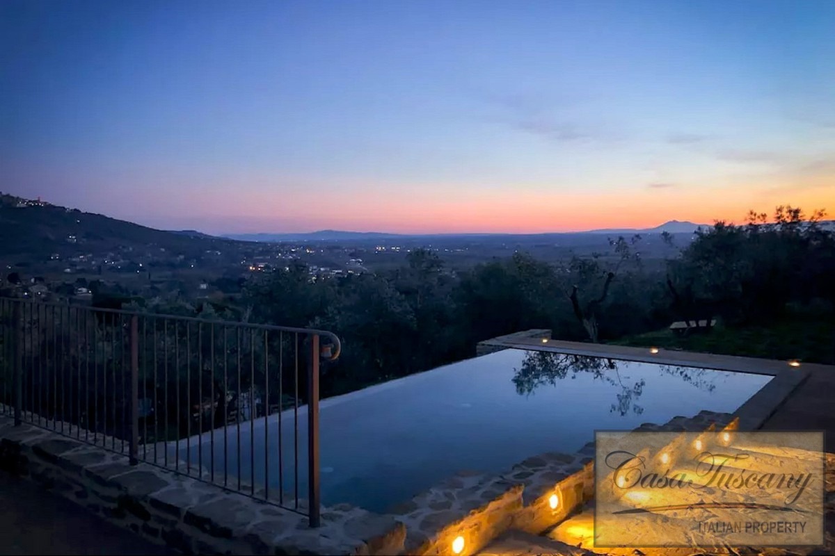 Contemporary four-storey stone villa with olive grove and panoramic swimming pool, for sale near Cortona.