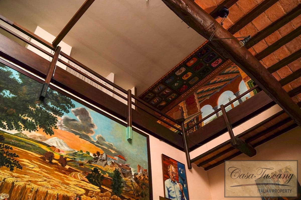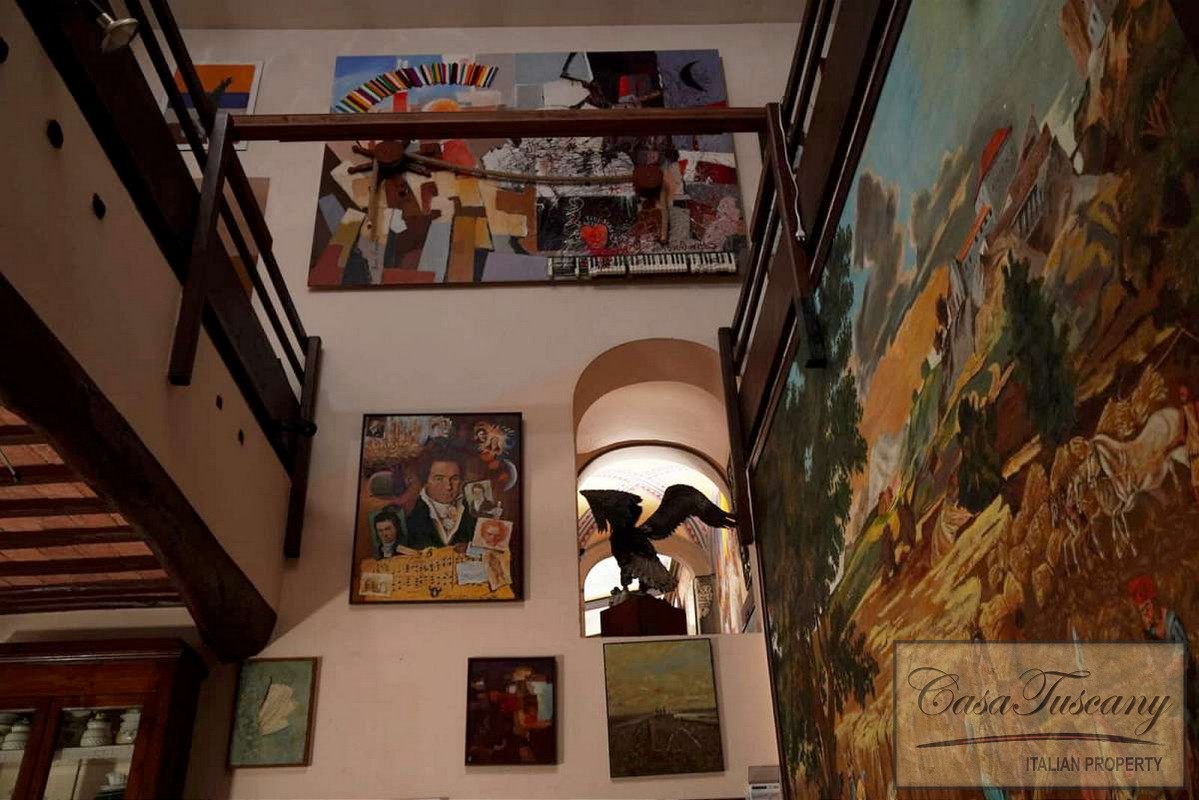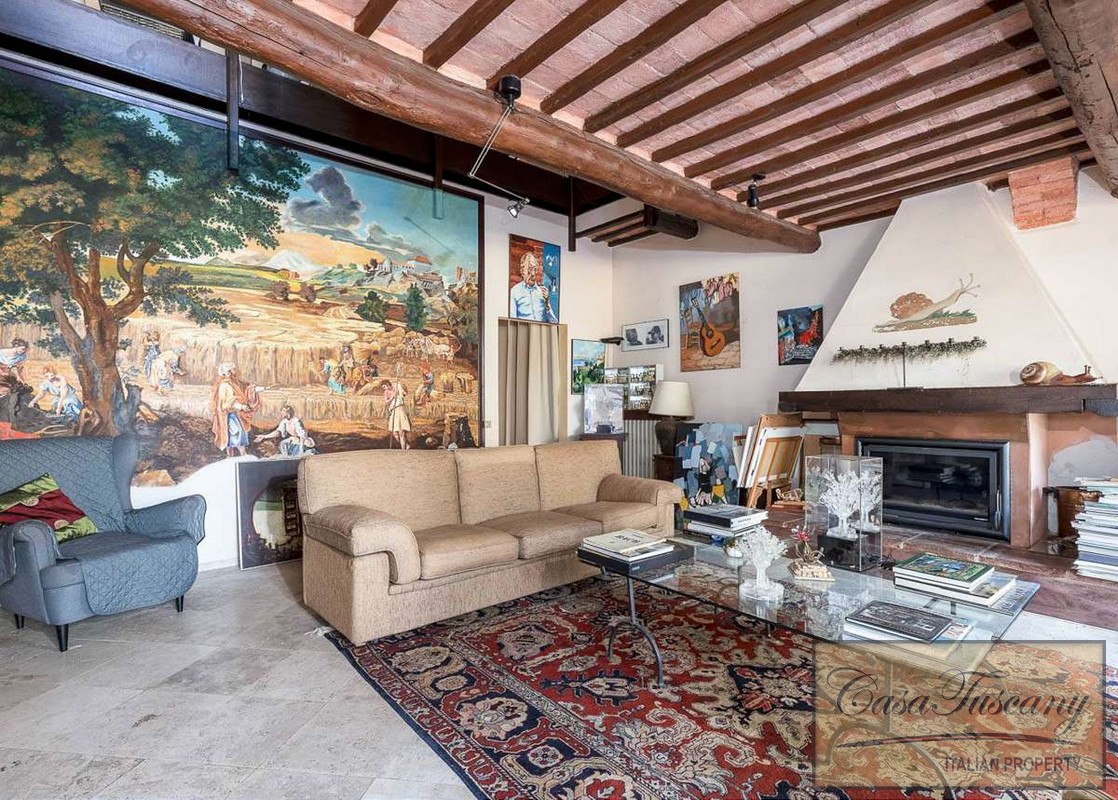 Set in the most private and exclusive part of the hamlet, it was once the residence and art studio of a French charismatic illustrious painter – sculptor and multilingual poet, former informatic engineer, who chose this corner of Tuscany in the 1970s, and transformed an old farmhouse into a charming home boasting unique features.