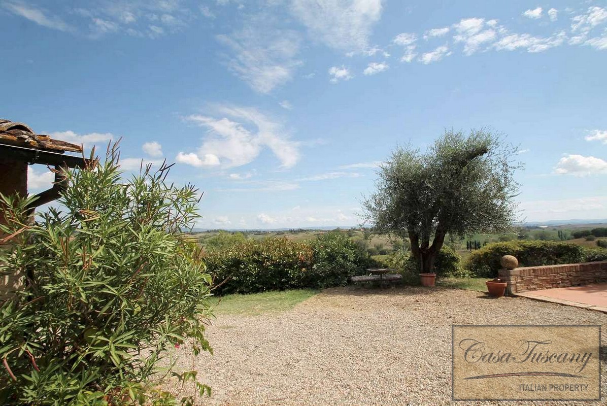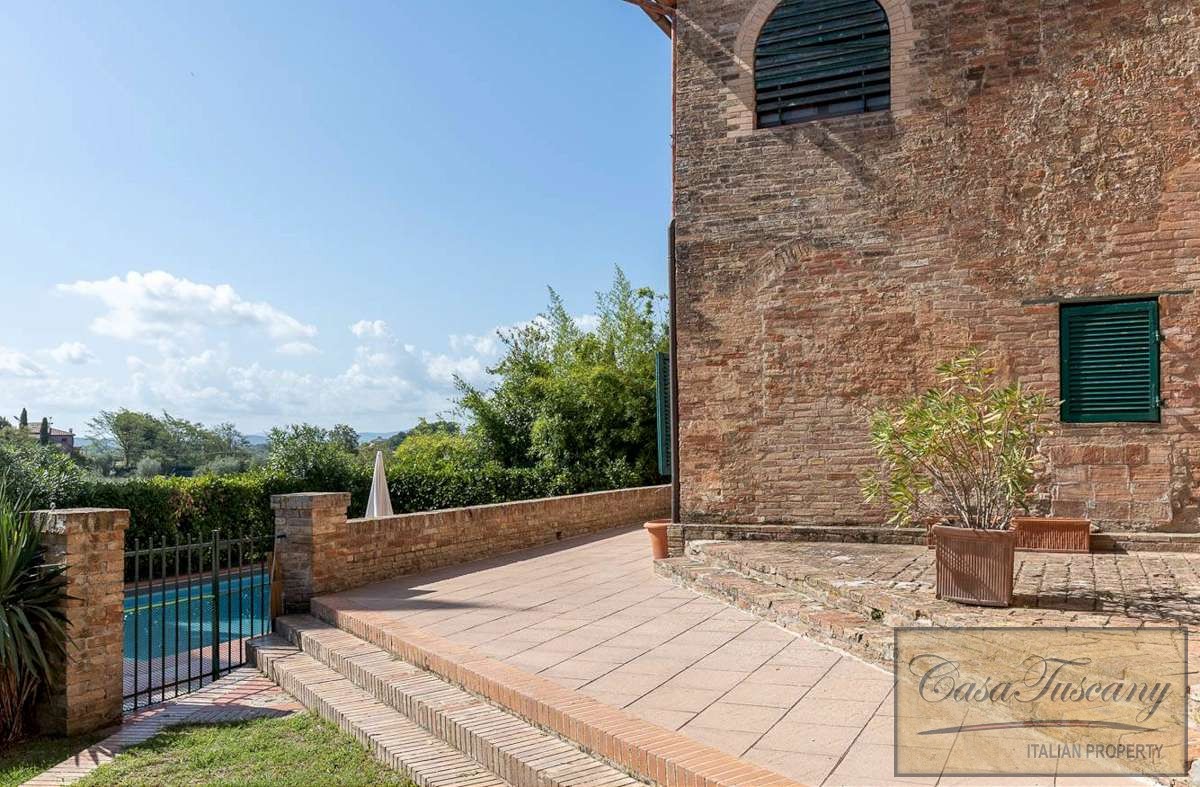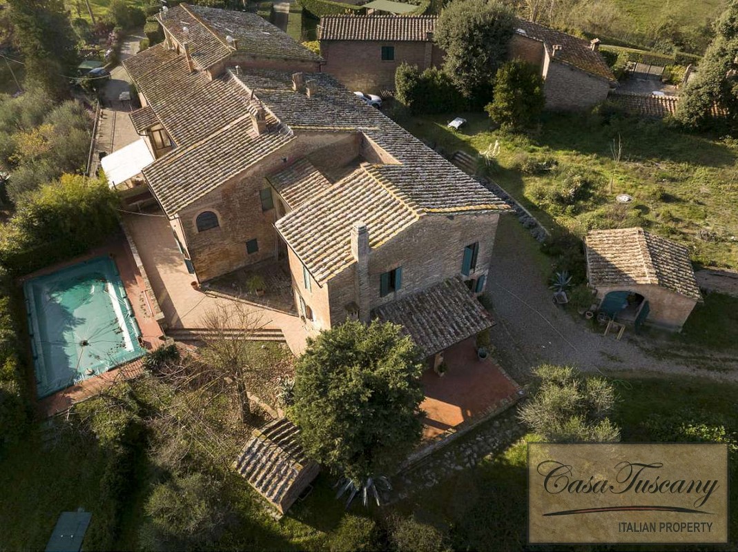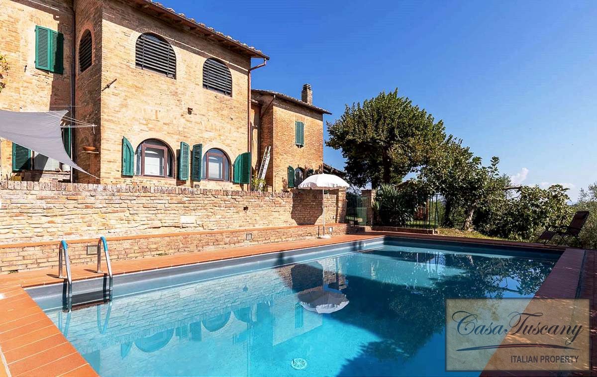 Charming semi-detached (attached to another property to one side) country house with 6 bedrooms, garden, private pool and panoramic views for sale near Siena.