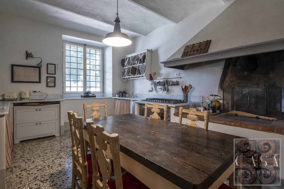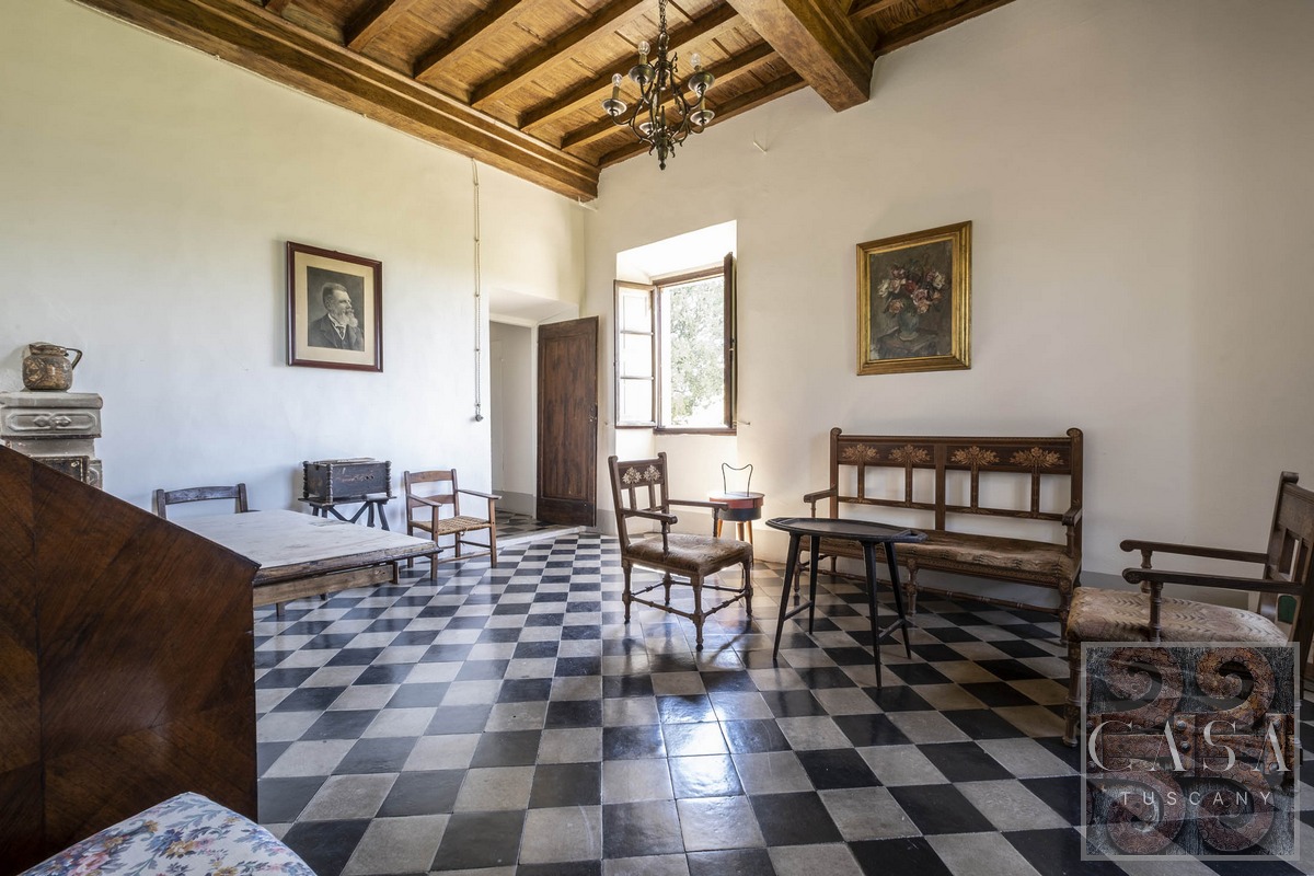 Located in an elevated position and offering views over the Tuscan countryside, the villa, originally part of a hamlet, consists of approximately 800 square meters spread over four floors. The villa, which offers many original architectural features, in its current configuration provides 8 bedrooms and 6 bathrooms however there is scope to increase the accommodation if required.