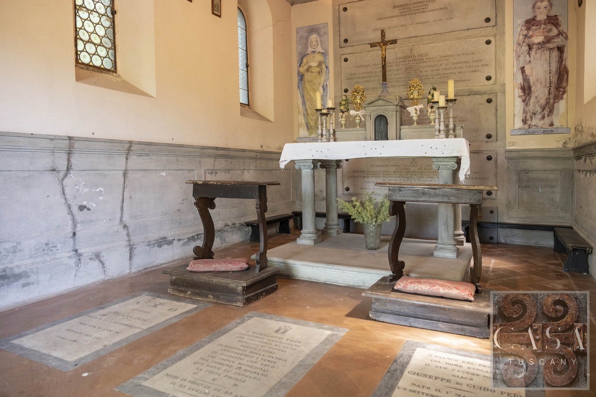 There is a panoramic pool below the villa and several annexes to restore. A consecrated chapel is also included.