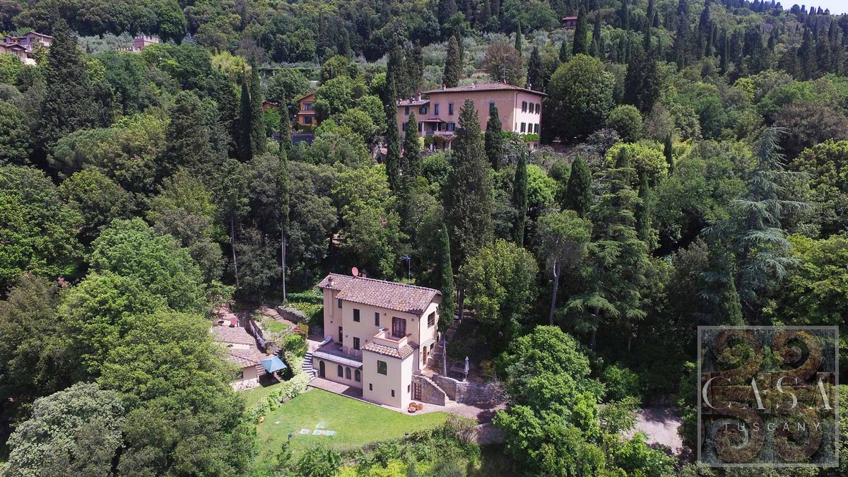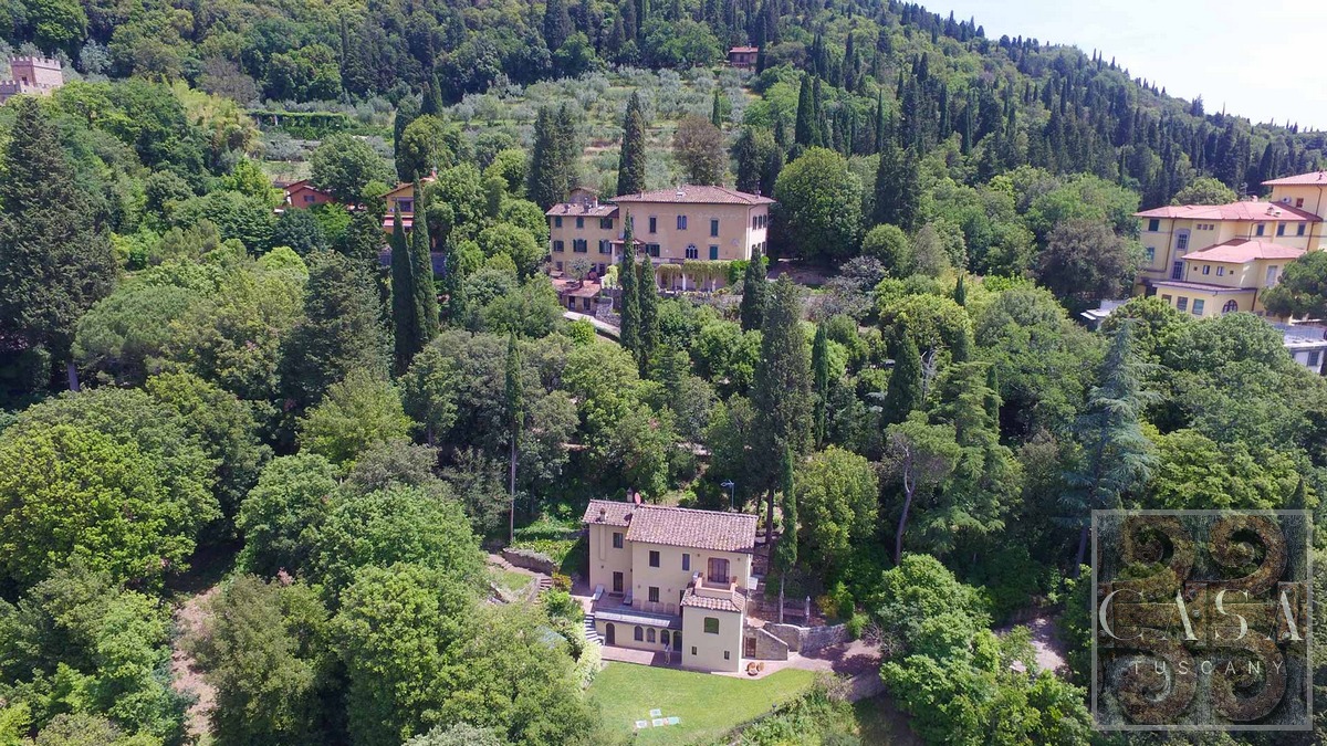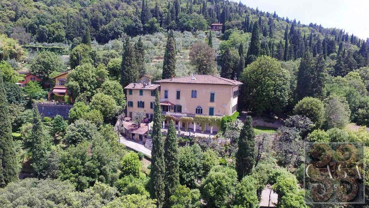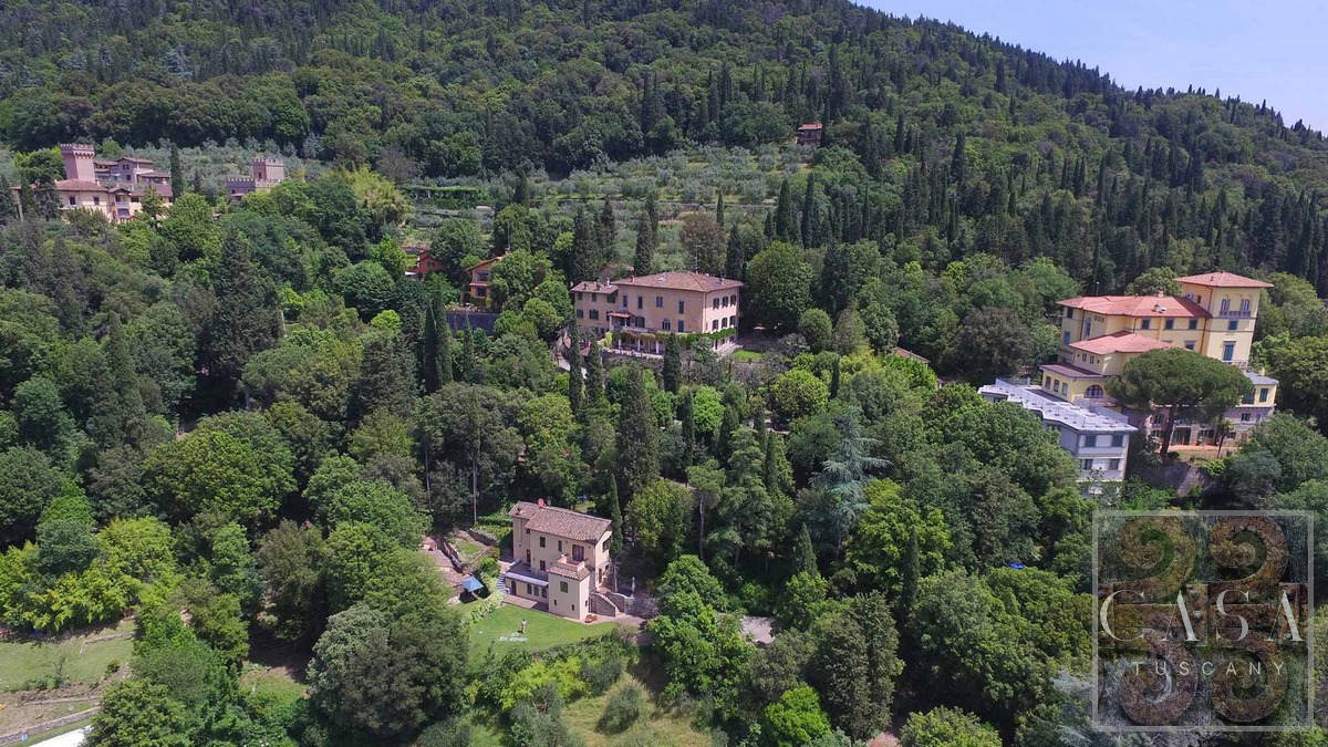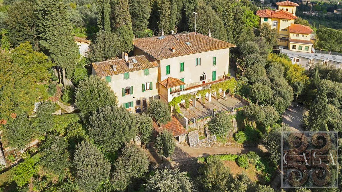 This stunning villa for sale, located near the hilltop town of Fiesole on the hills surrounding Florence, offering breathtaking views of the famous renaissance city.