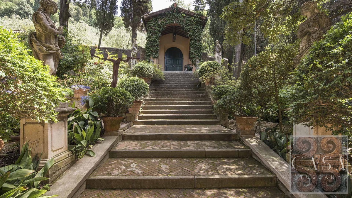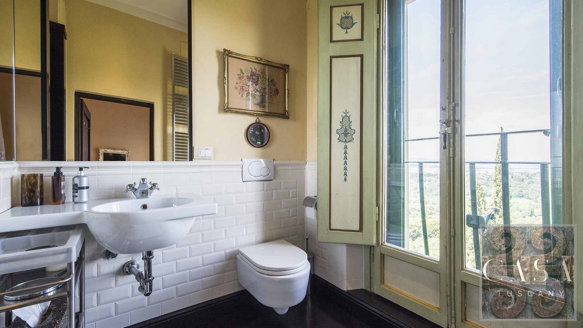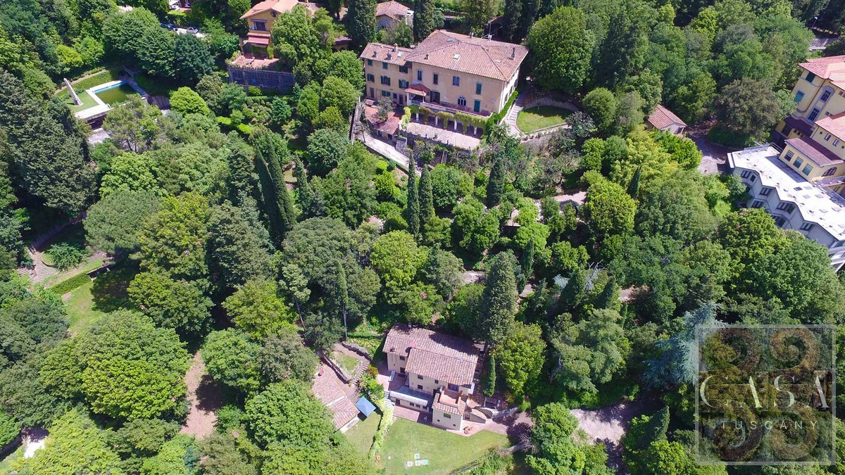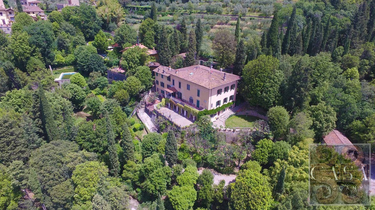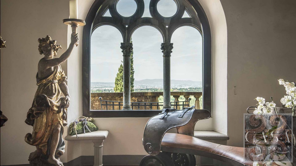 This stunning villa for sale, located near the hilltop town of Fiesole on the hills surrounding Florence, offering breathtaking views of the famous renaissance city.